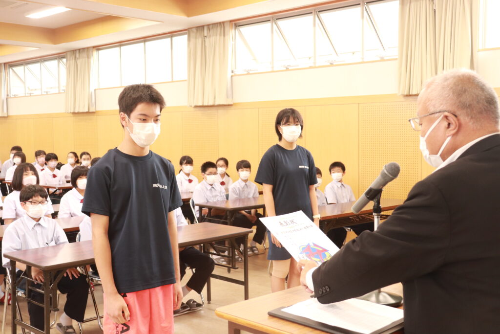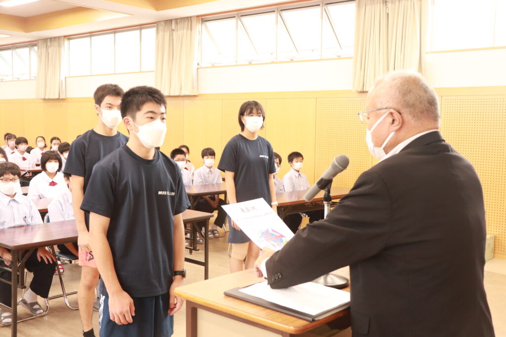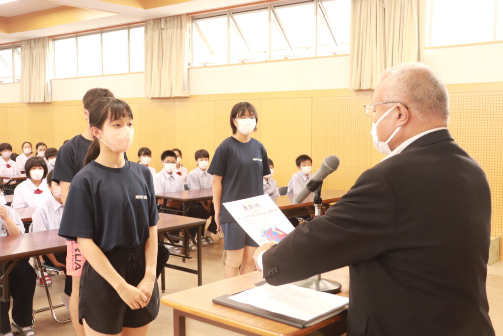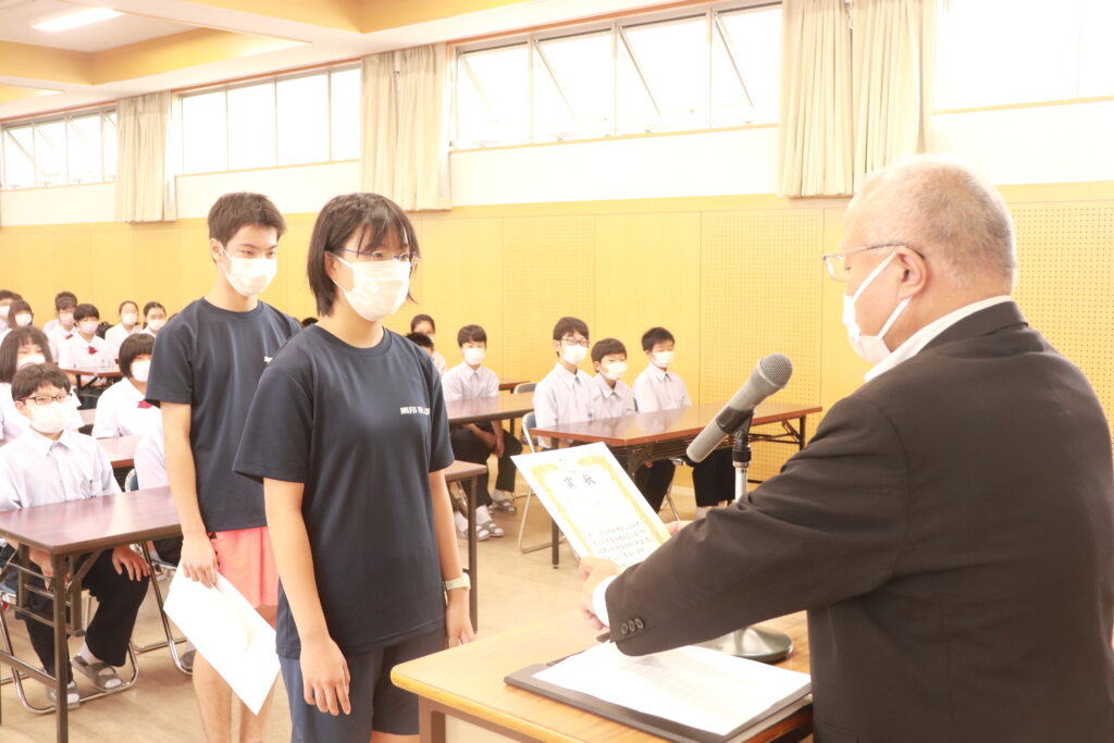 学校長、教務主任、生徒指導部主任の先生方のお話の後、表彰式が行われました。