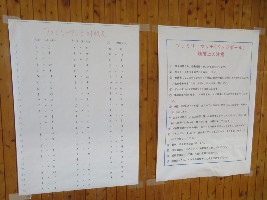 競技はドッジボールです。外野の数で勝敗が決まります。外野の数が同じときは、代表者のじゃんけんで勝敗が決定します!どの試合も白熱していました!