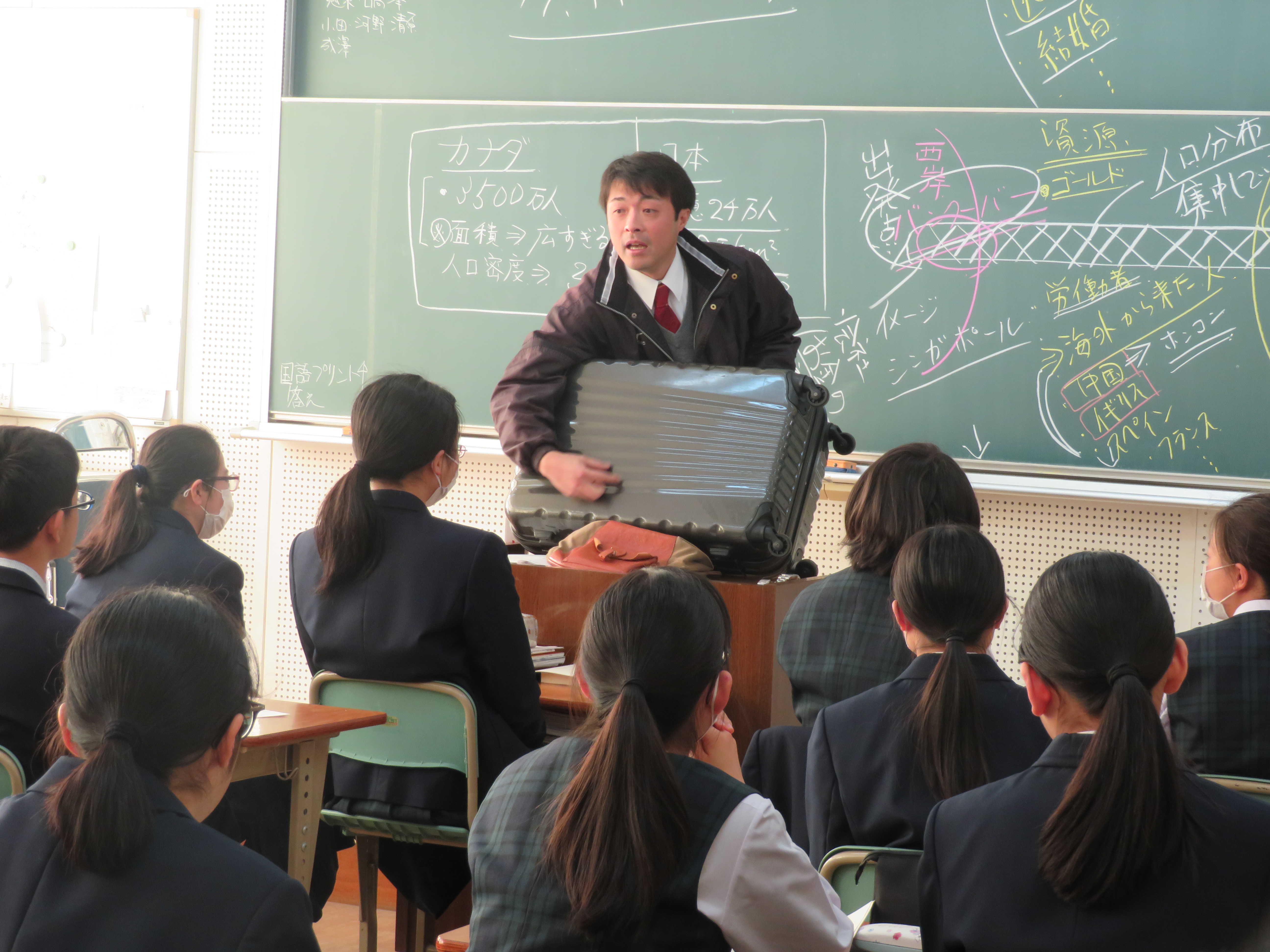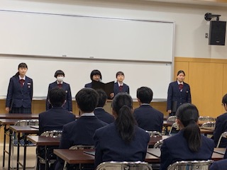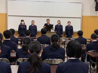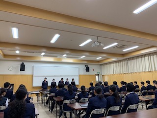 本日J3は、修学旅行事前学習が行われ宮﨑健史先生(社会科・生徒指導部主任)からお話をして頂きました。