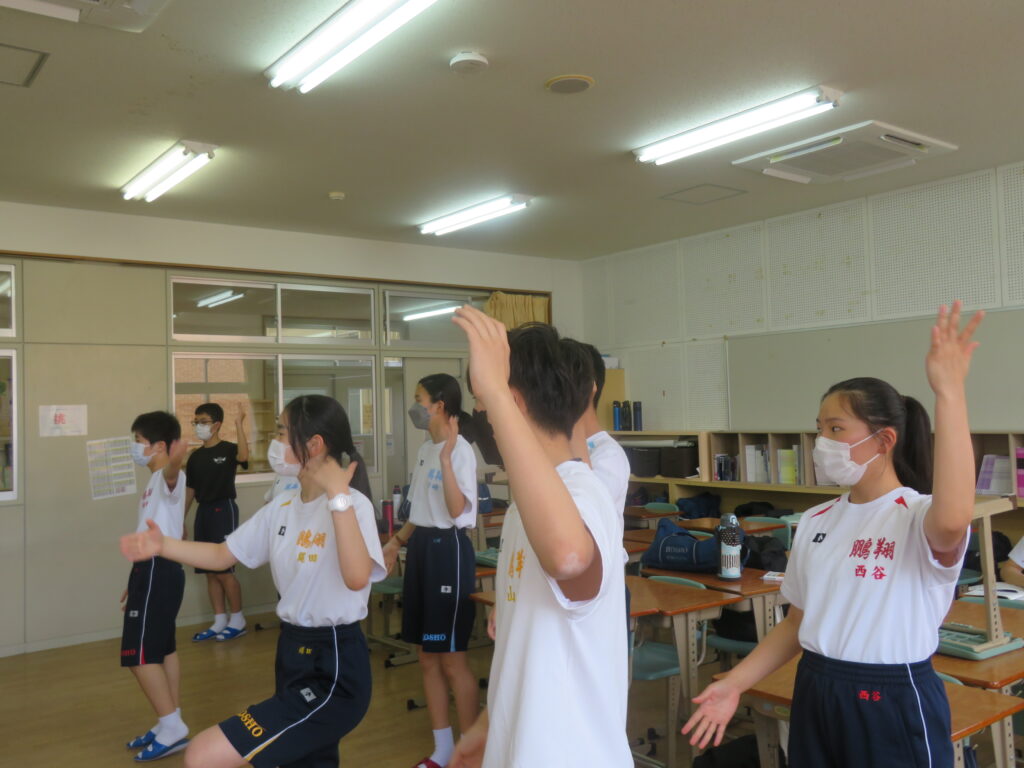 放課後の様子です。 9月に行われる体育大会に向けて、現在各団とも、団長副団長を中心に、応援やダンスの練習を一生懸命頑張っています。今日は、白団の練習風景を紹介します!