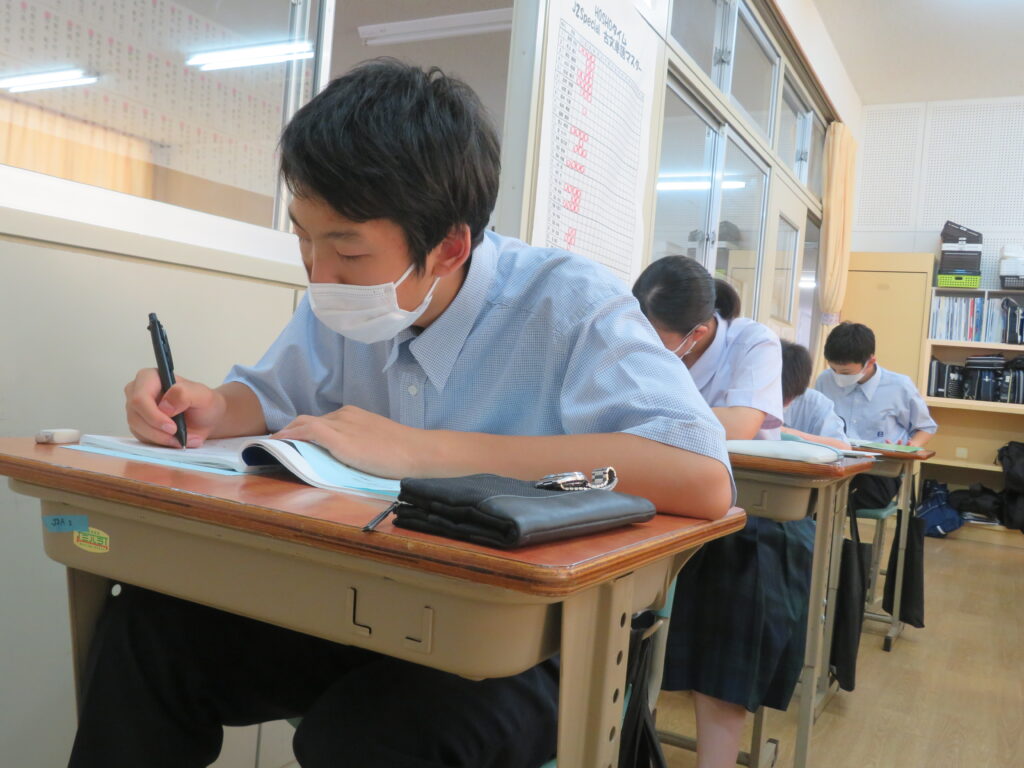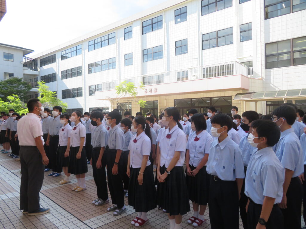 本日8/4(木)~8/6(土)の3日間、チャレンジ3(集中学習会)が行われます。本日、1日目ということで、開講式がありました。吉田教頭先生から激励の言葉をいただき、 注意事項や勉強会の趣旨について、教務主任の安田先生、生徒指導主任の宮﨑先生よりお話がありました。