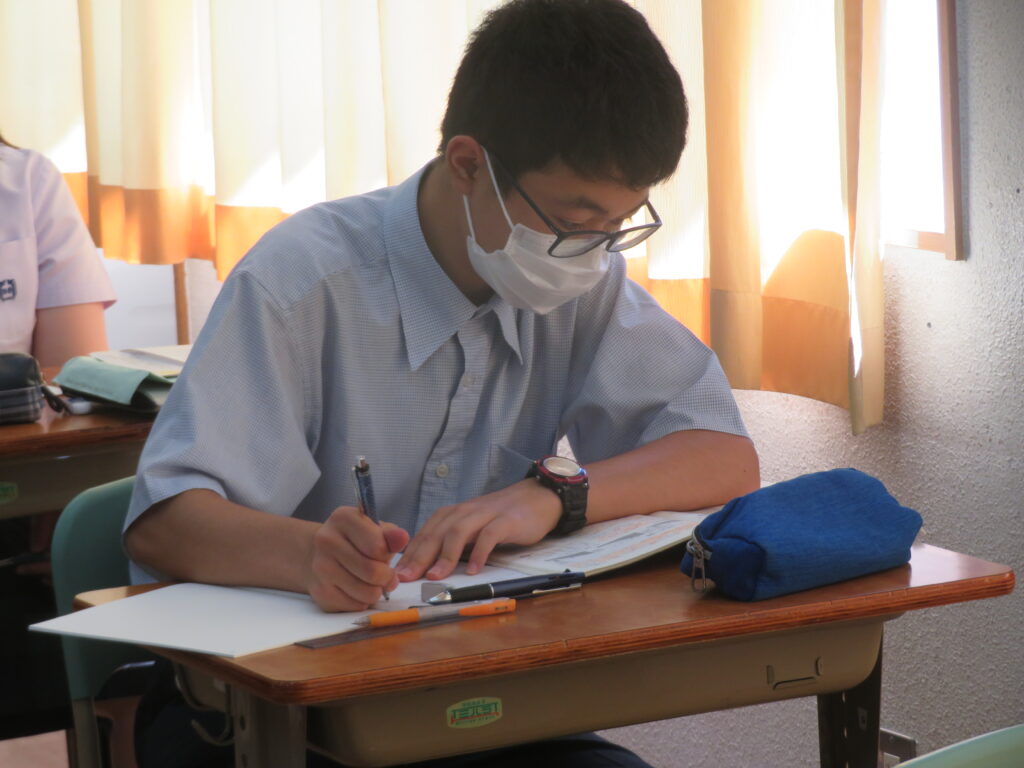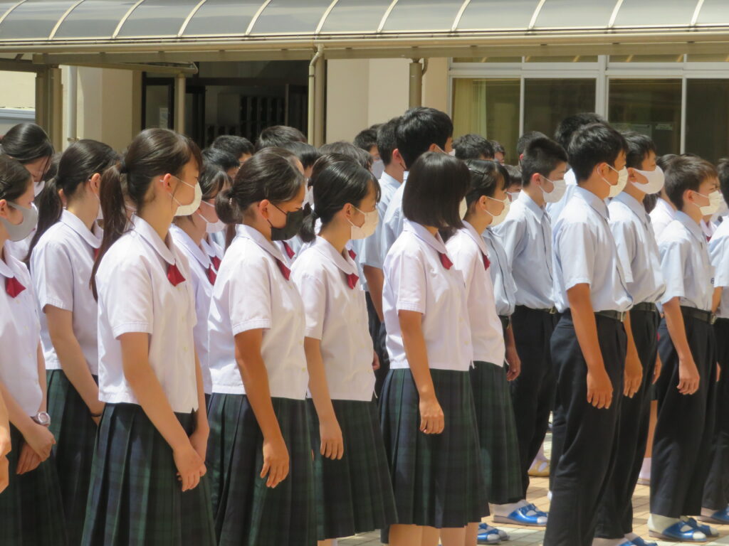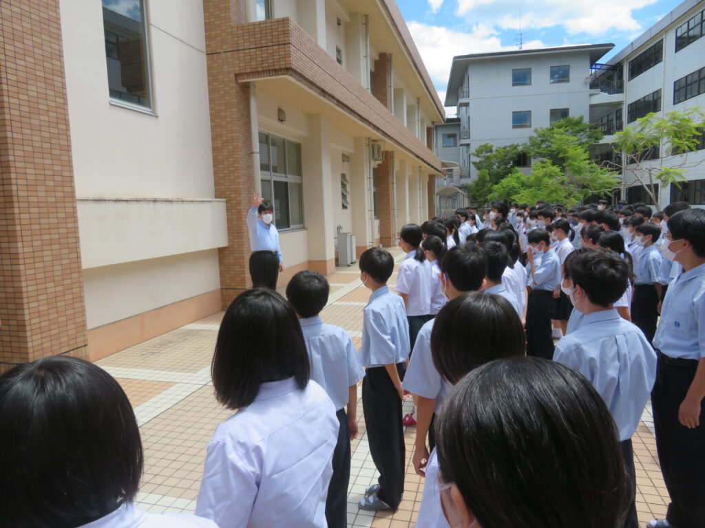 明日から夏期休校期間に入ります。規則正しい生活を心掛け、8月17日(水)に生徒全員が元気に登校してくれることを願っています。吉田教頭先生のお話にもあったように、体調管理にも十分に気をつけてください 。