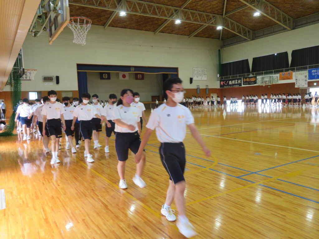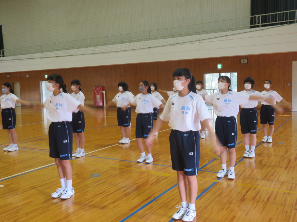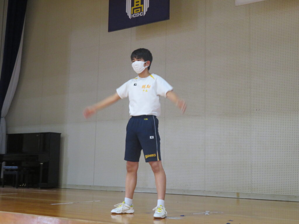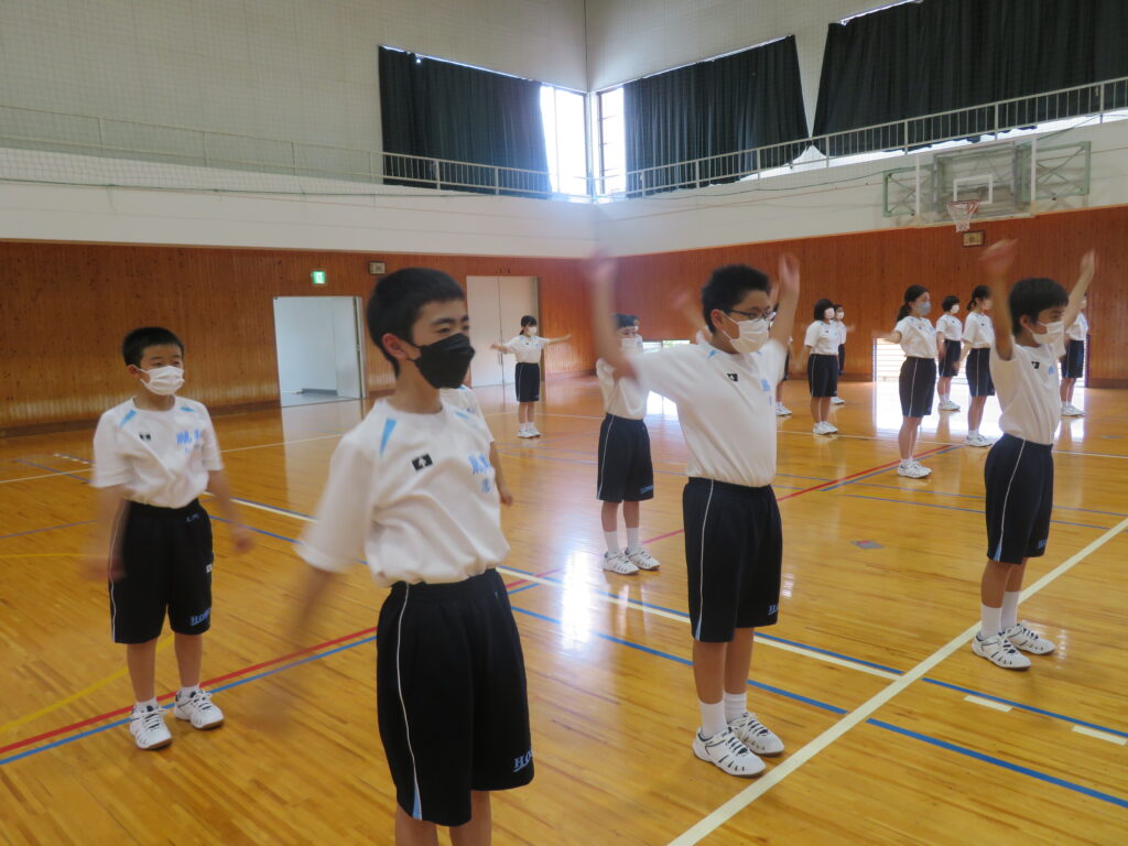 今日は、1・2限目に行った体育大会の練習の様子を紹介します。 準備運動と入場行進を中心とした練習を行いました。