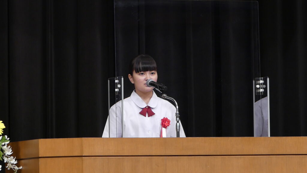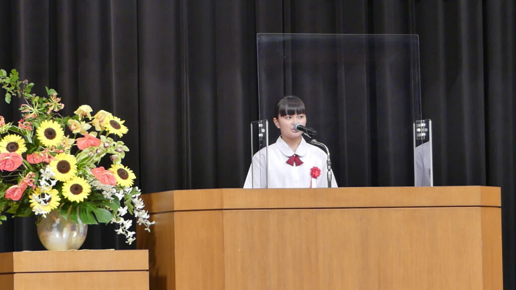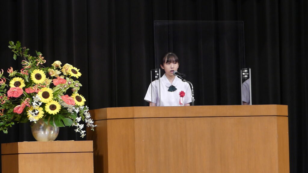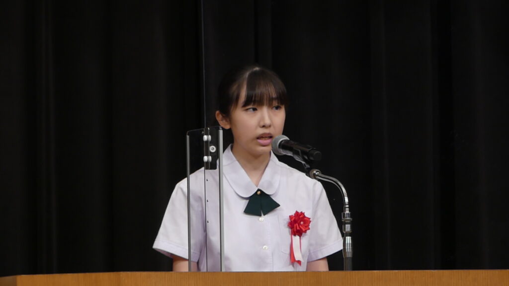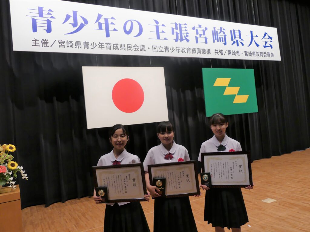 〇令和4年度青少年の主張 宮崎県大会 優秀賞 J3A 三田井愛結さん(住吉小出身)