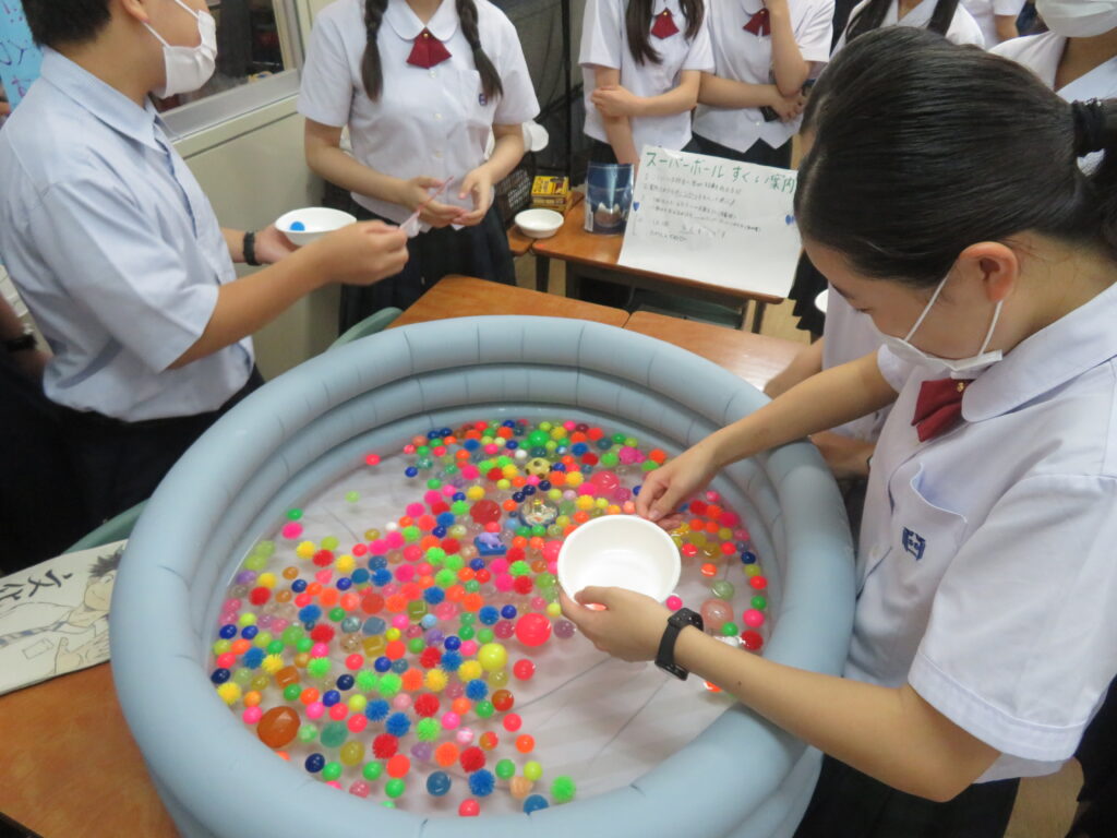 この日は中高一貫の高校生も中学棟に展示物を見に来てくれました。