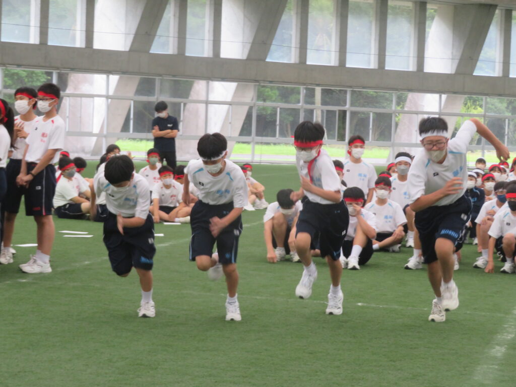 本日、体育大会の予行練習を行いました。本番のプログラム通りに練習を行い立ち位置等の確認を行いました。