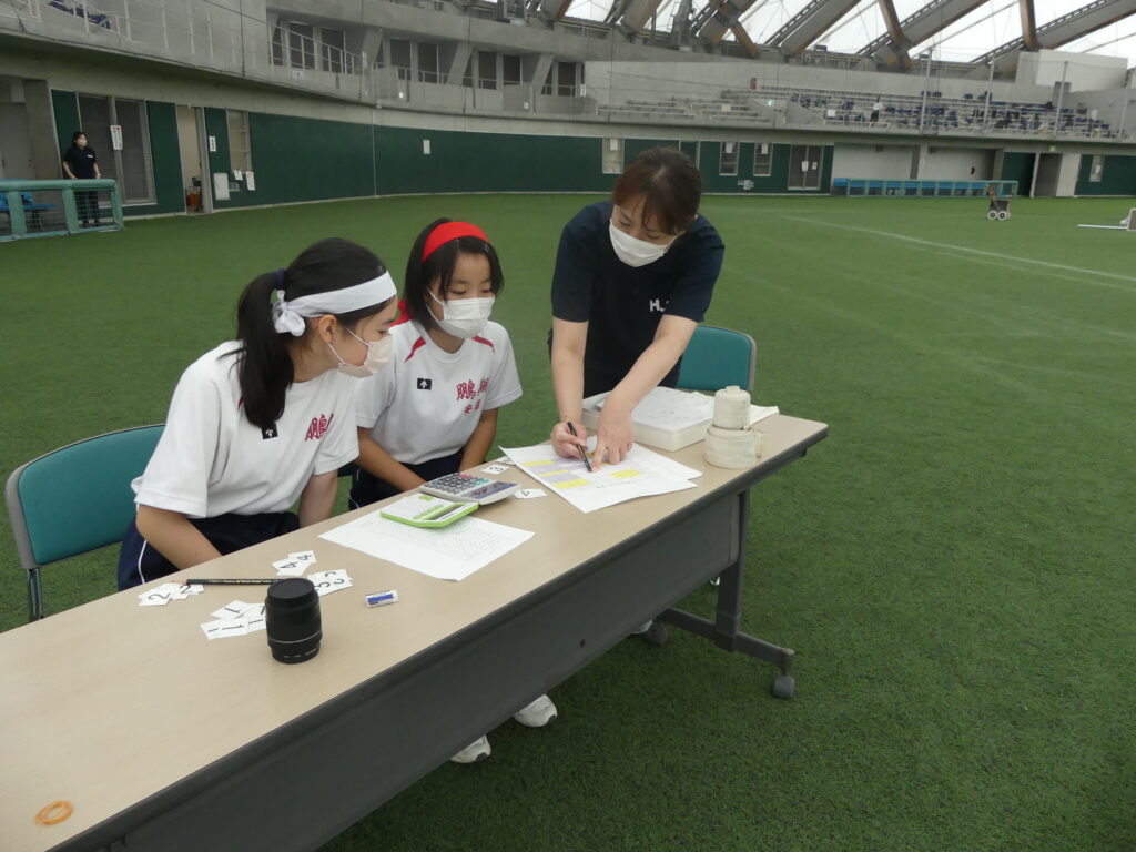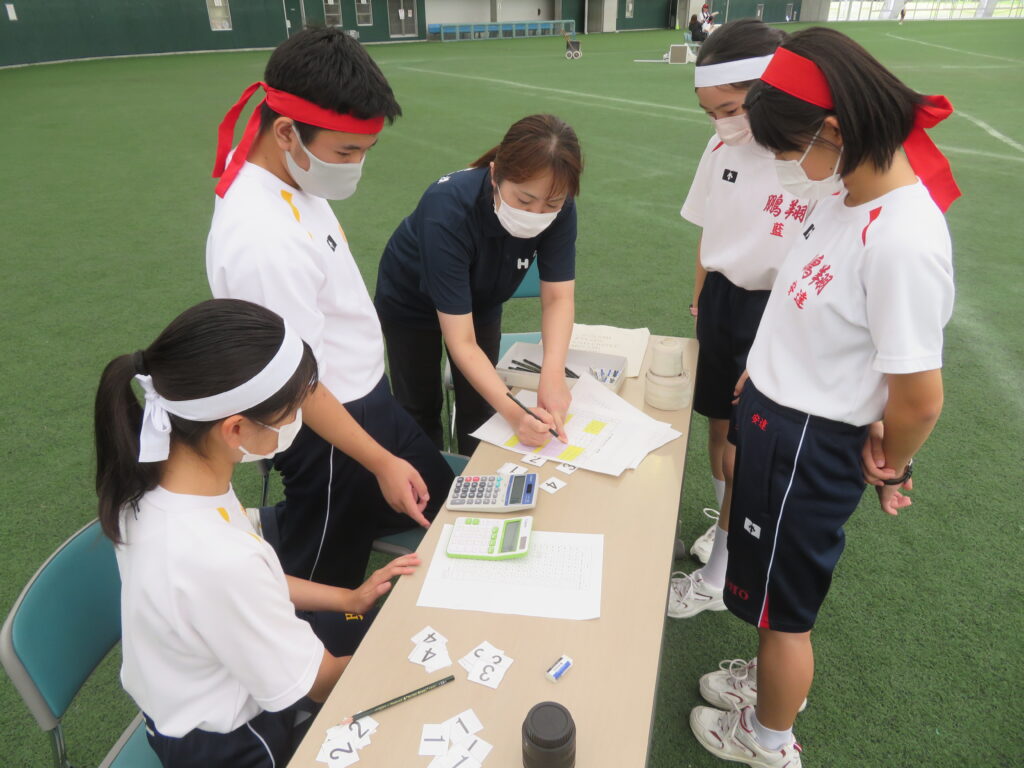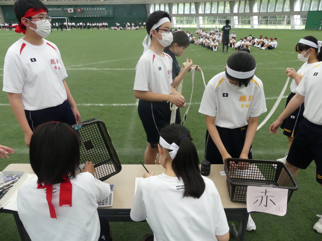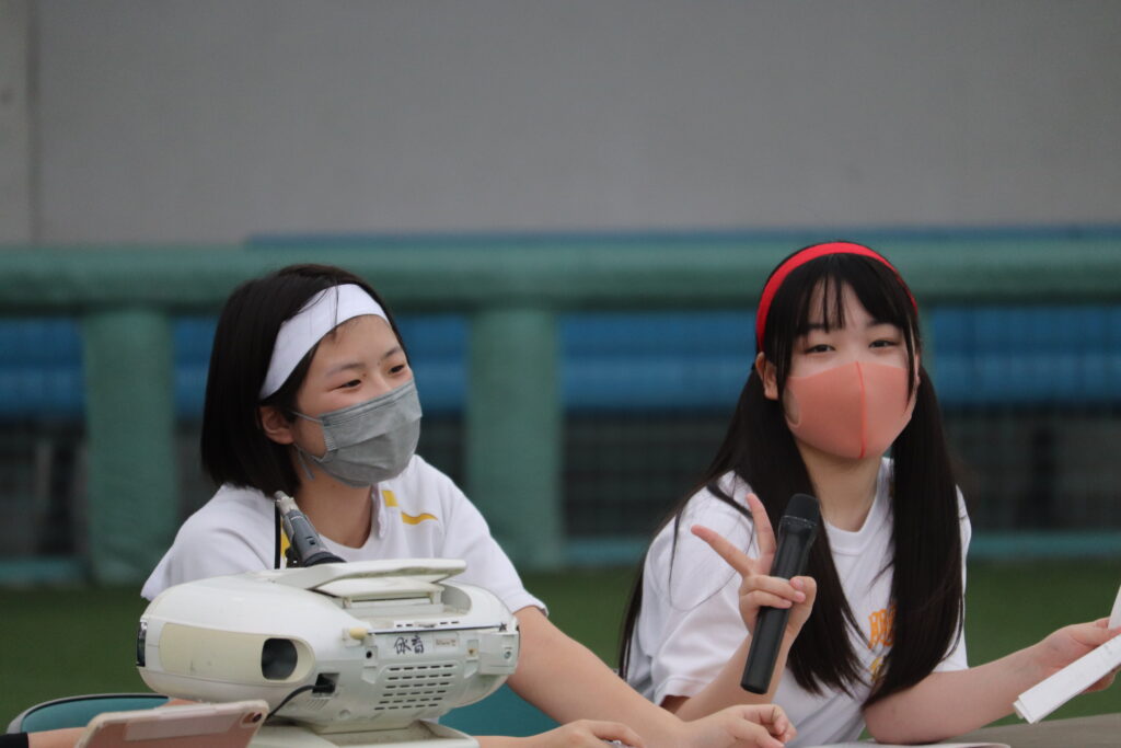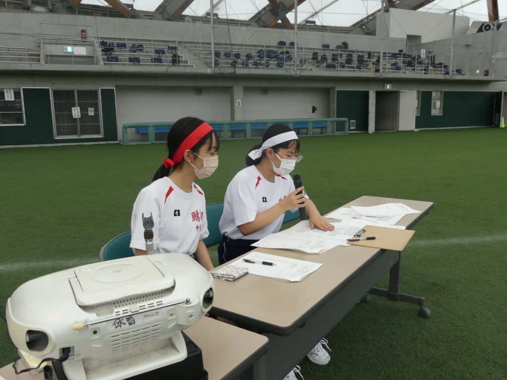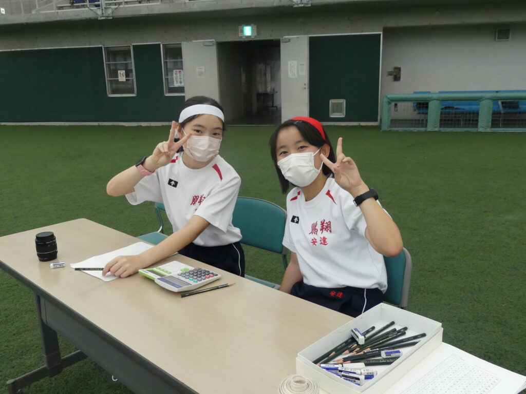 体育大会の役員として頑張ってくれる生徒もいます。放送係や記録係として体育大会を運営します。