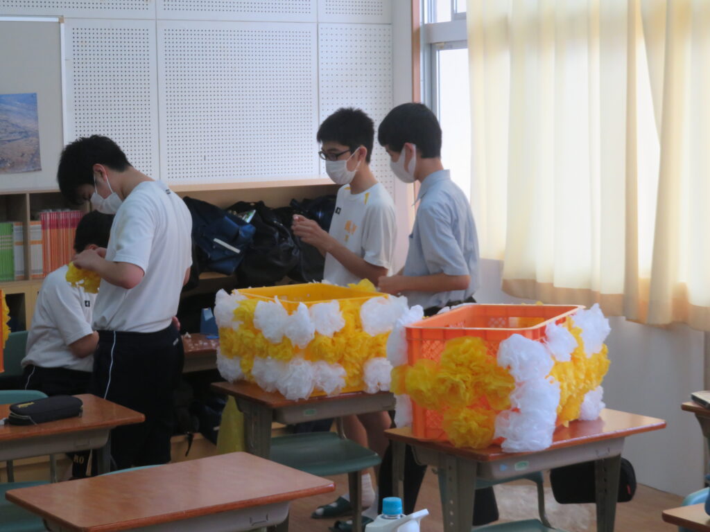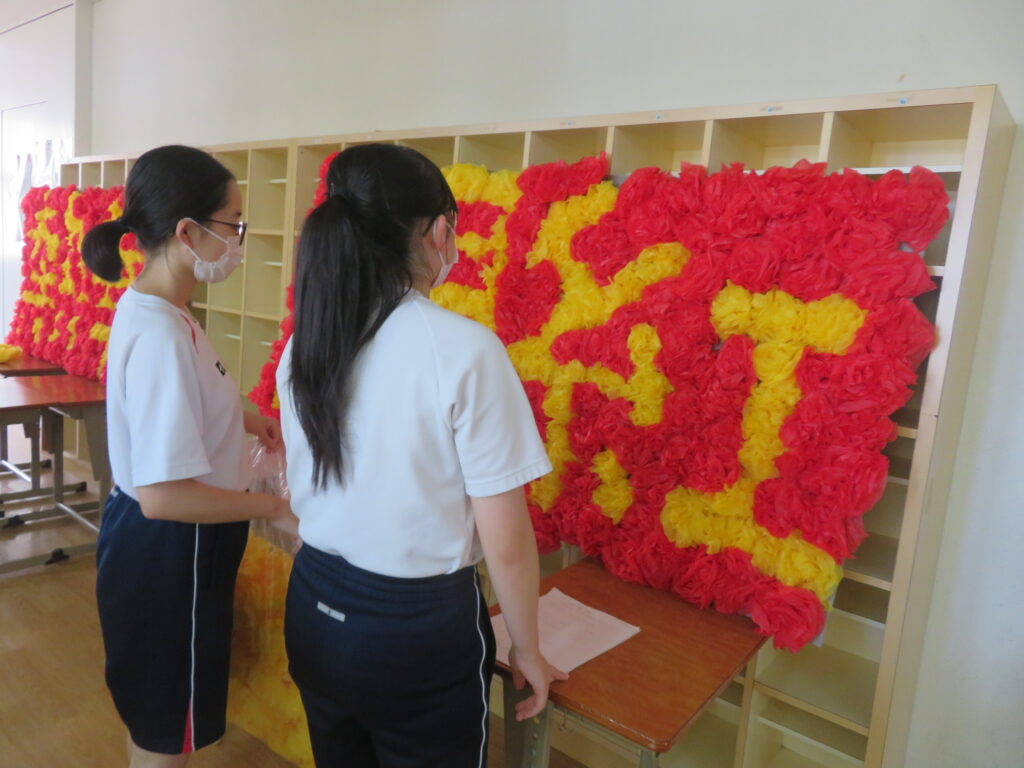 午後は、団の装飾作成と応援に分かれ、全員で協力し一生懸命活動していました。