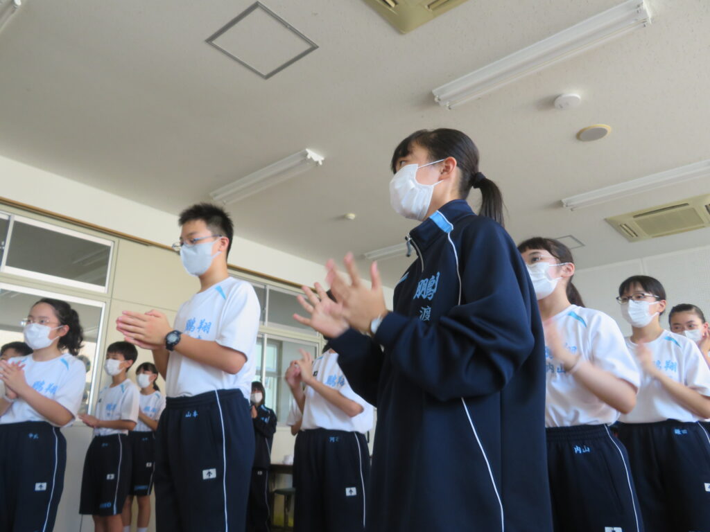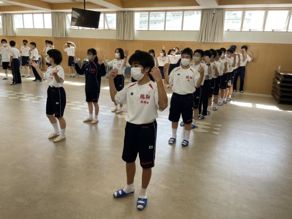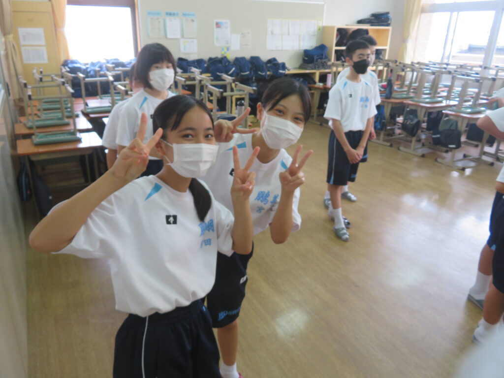 明日は、8時30分にひなた木の花ドーム現地集合になります。9時開始です。はちまきや体育大会用健康観察票、水筒など忘れ物のないように気をつけましょう。しっかりと朝ごはんを食べてきましょう。