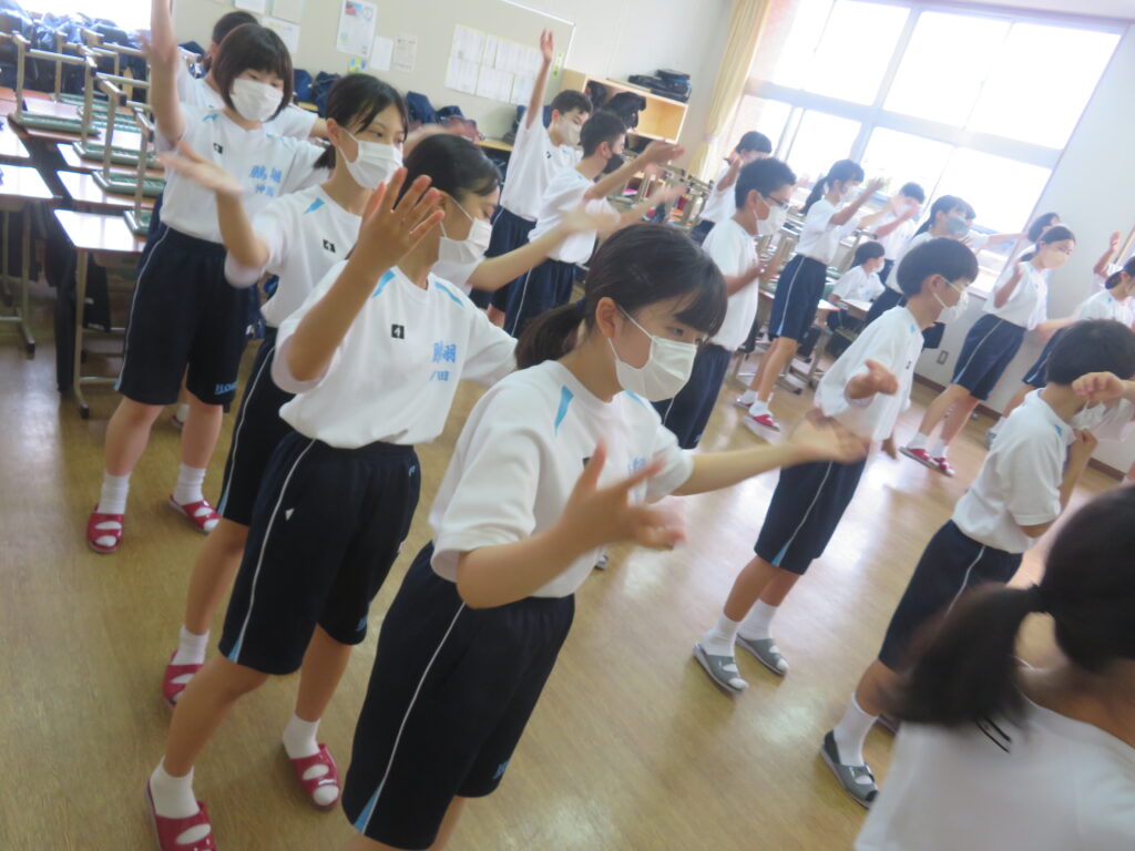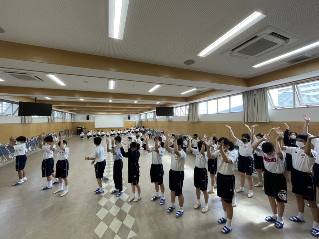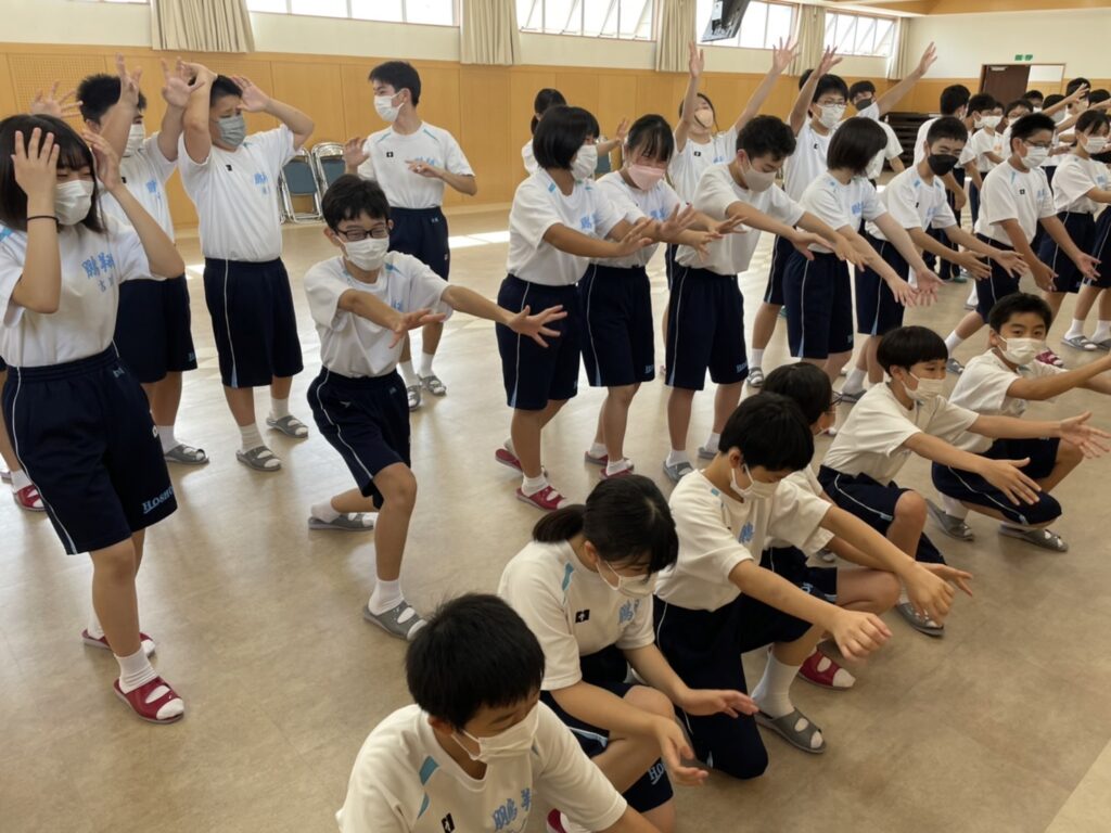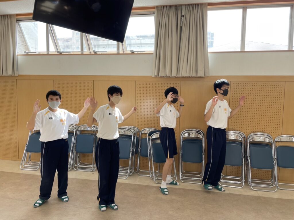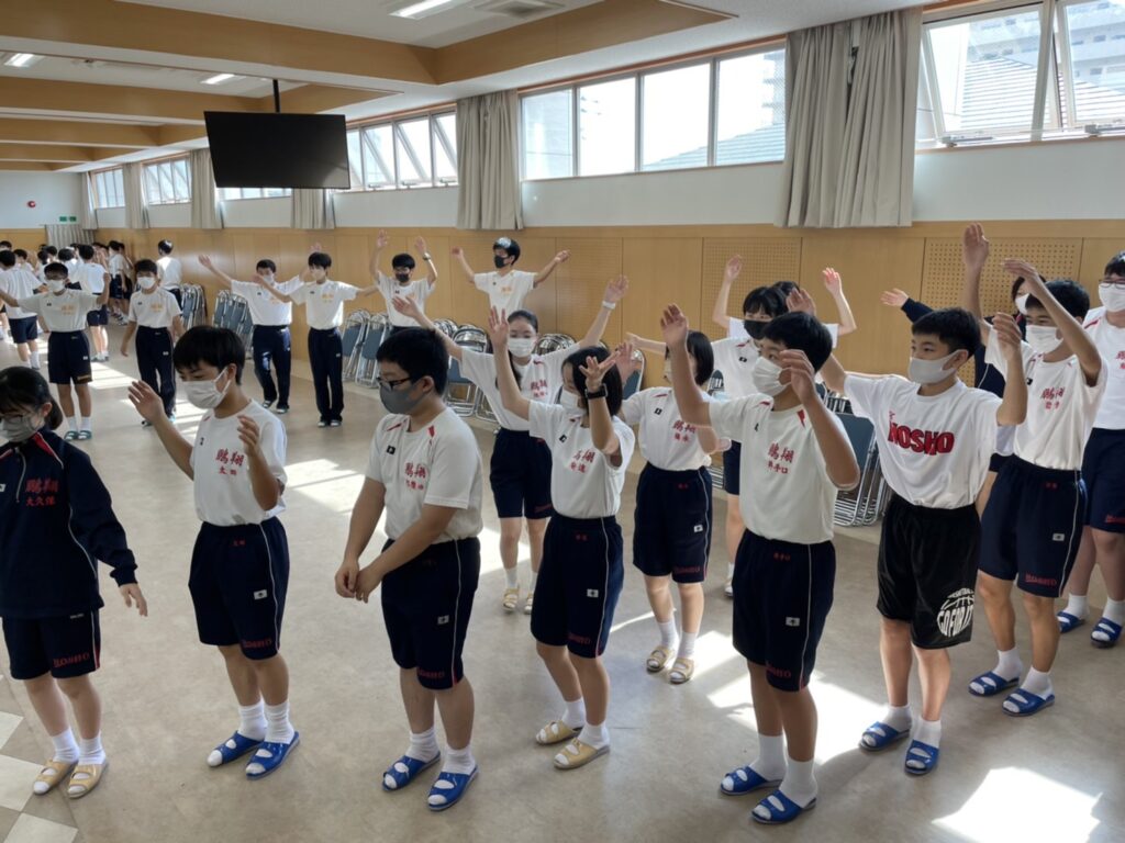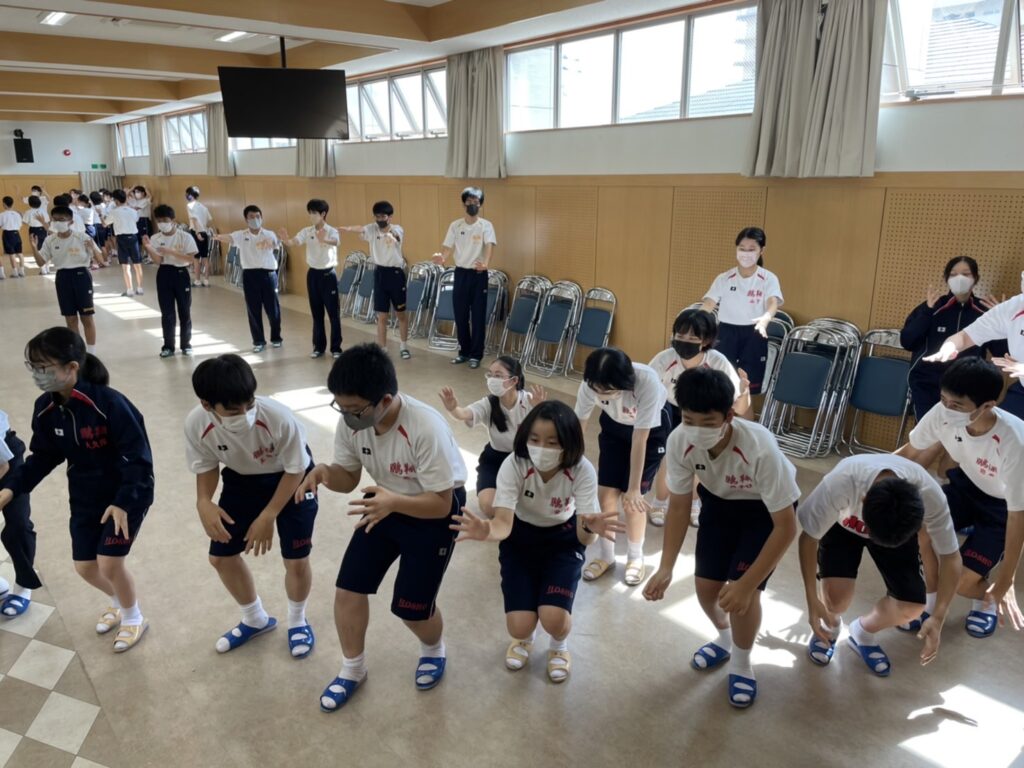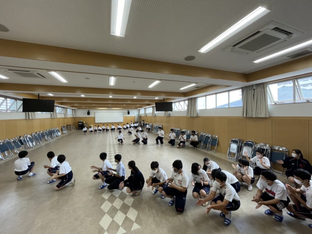 本日は、明日の体育大会に向けて各団とも前日準備を行いました。午前中は、教室や多目的ホールでダンスや応援の練習をしました。
