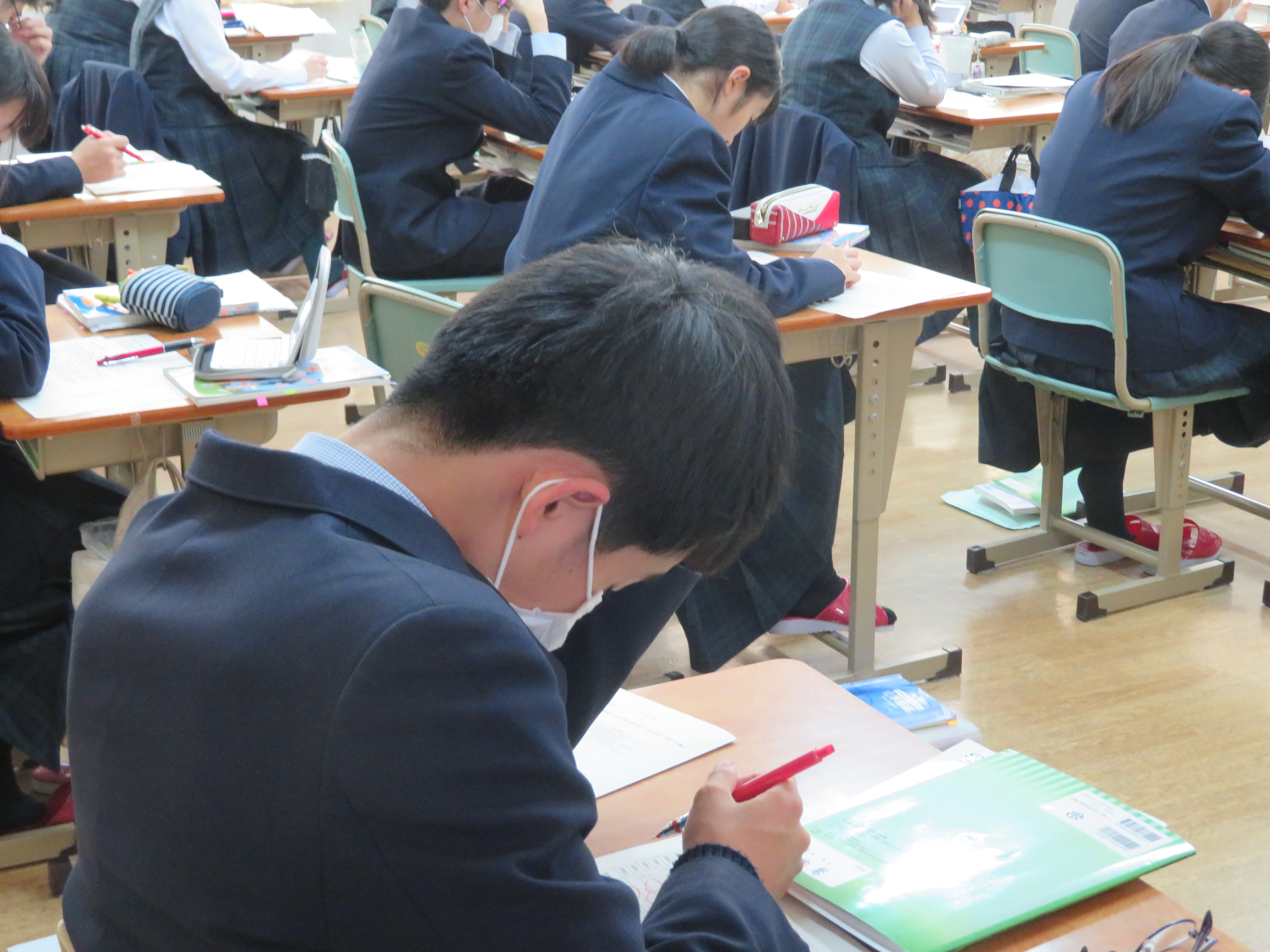 本日は、明日の立志式の準備(J2)・テスト返却(J3)などが行われました。