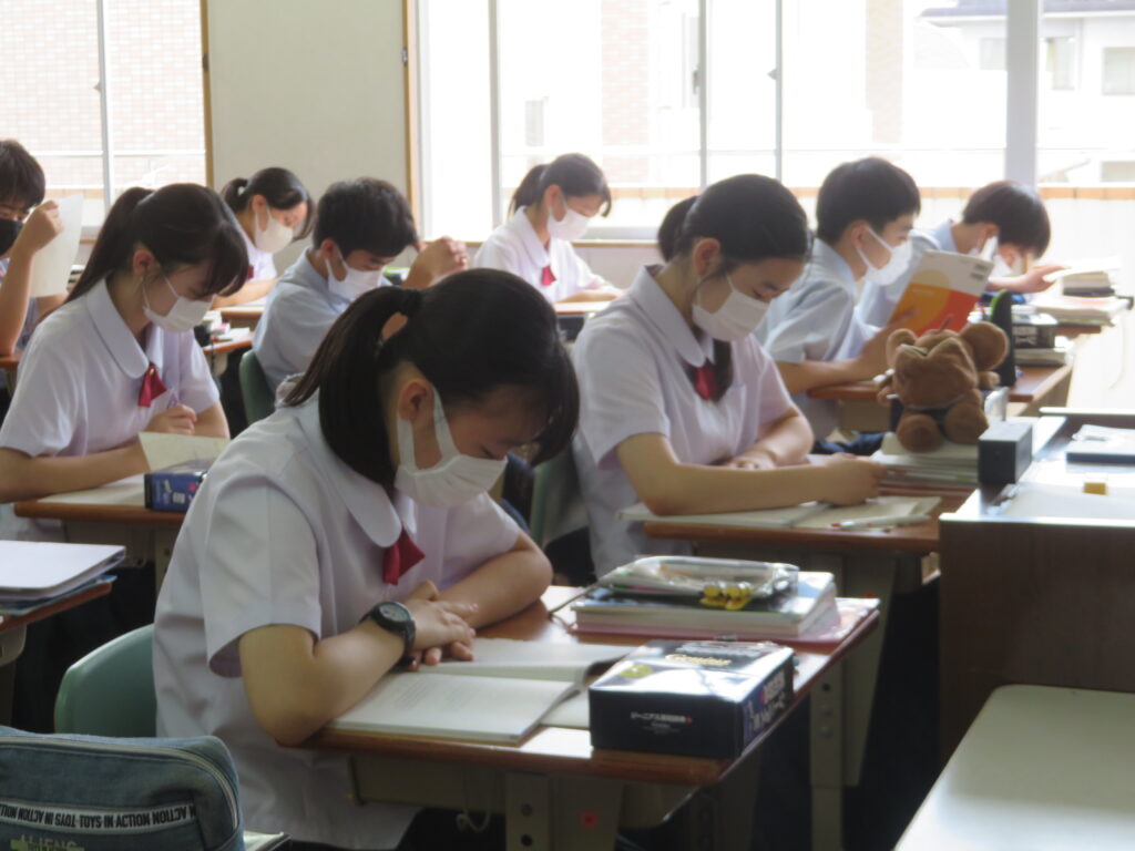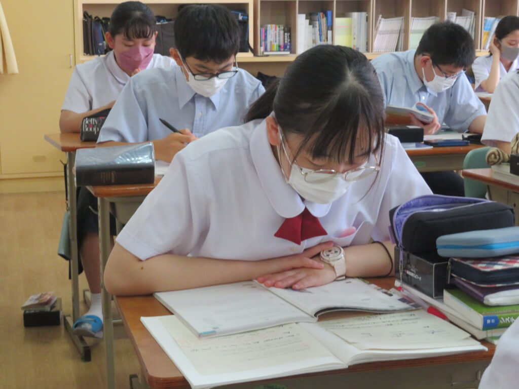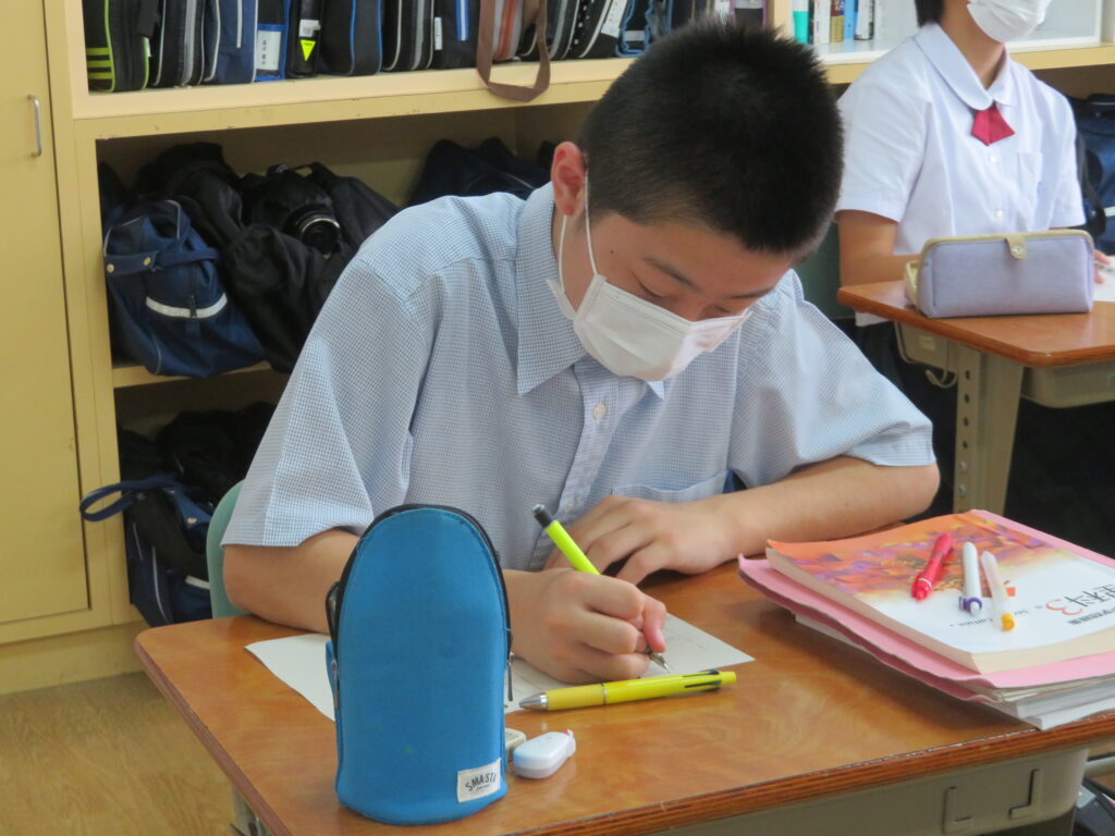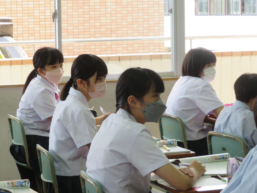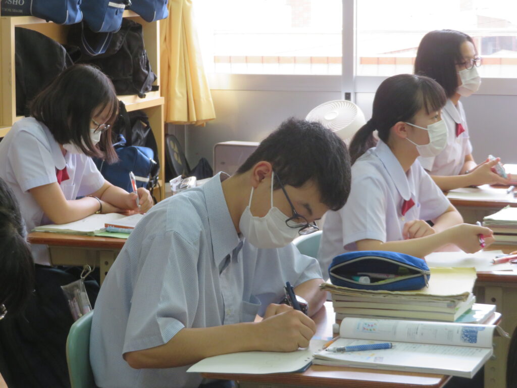 賑やかなJ1の授業から、J2・J3の先輩の教室に目を移すとキリっとした真剣なまなざしで問題に取り組む姿がありました。先輩らしさが見える瞬間でした。