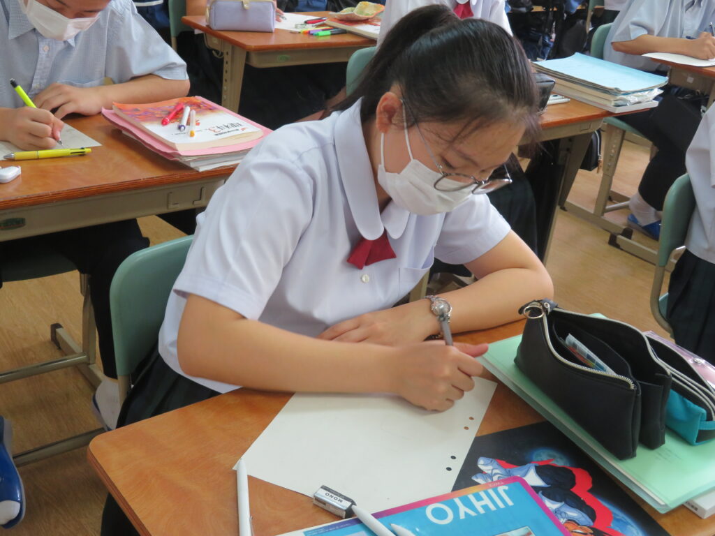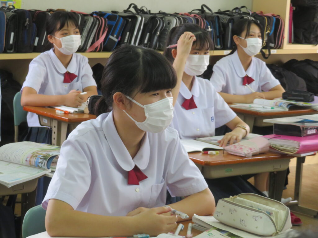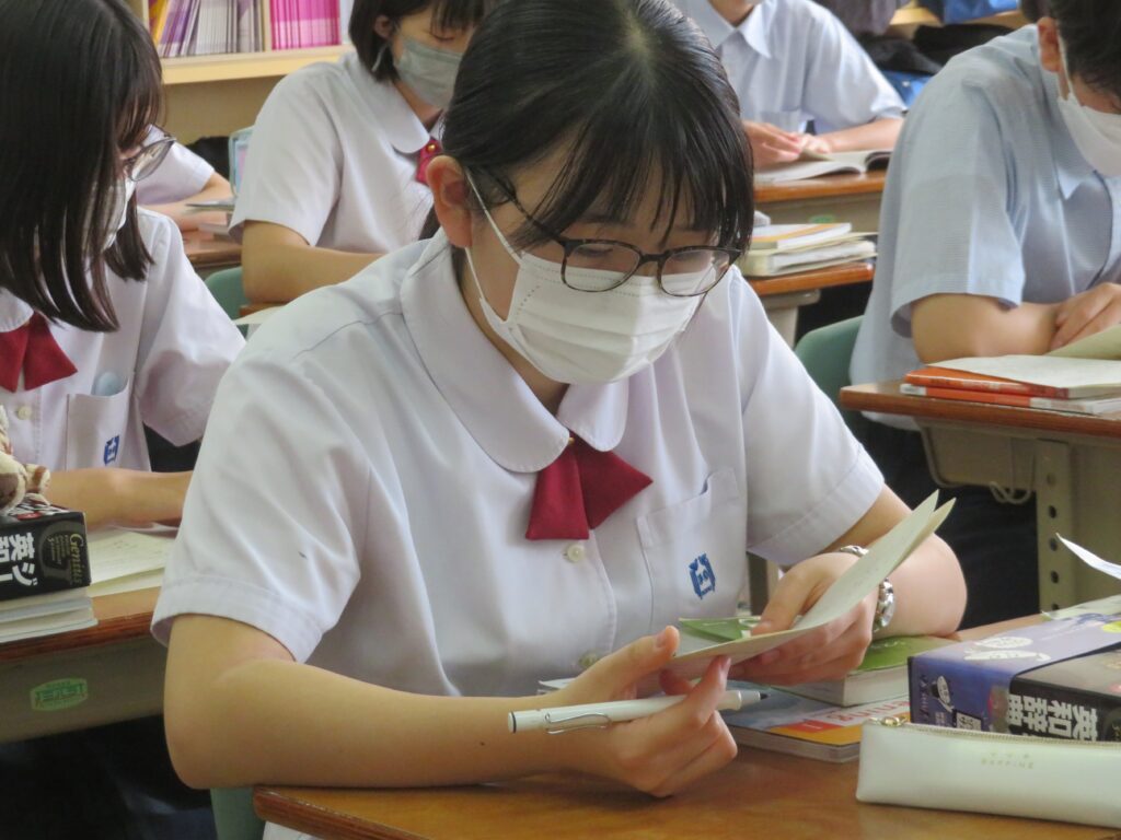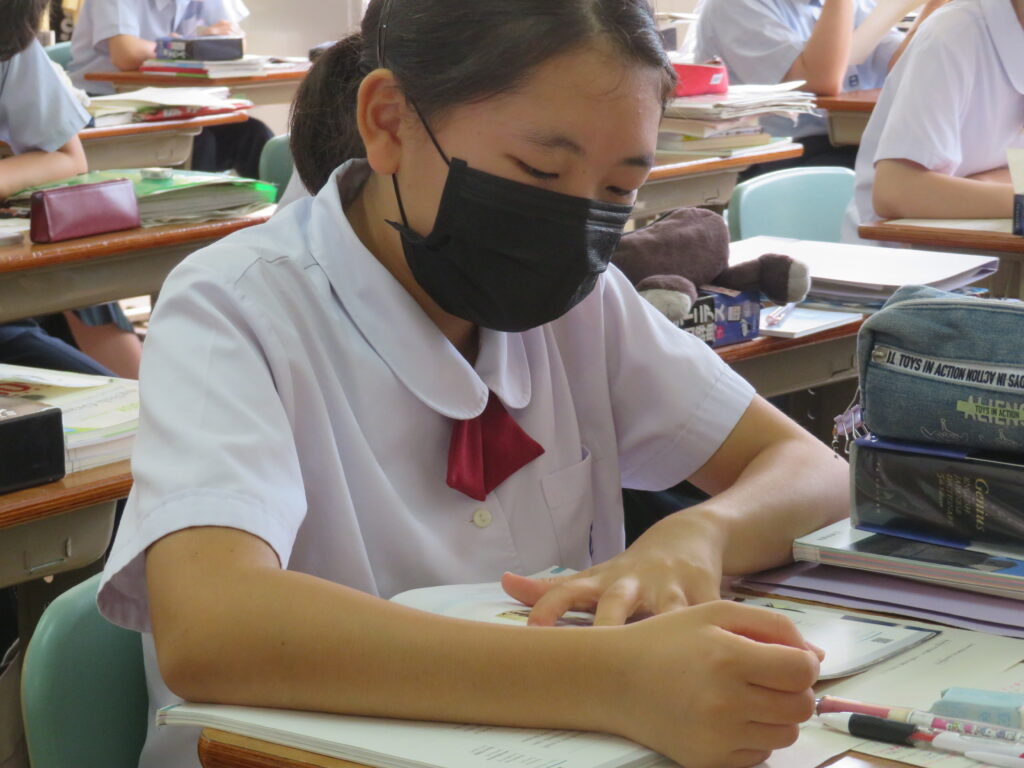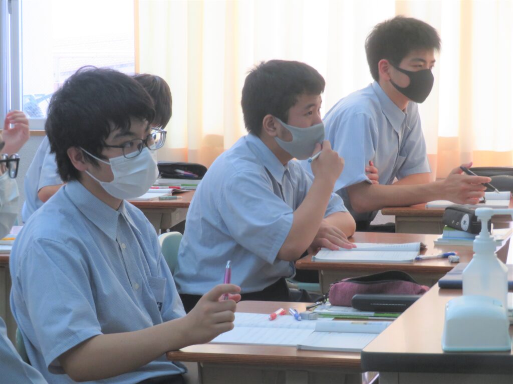 賑やかなJ1の授業から、J2・J3の先輩の教室に目を移すとキリっとした真剣なまなざしで問題に取り組む姿がありました。先輩らしさが見える瞬間でした。