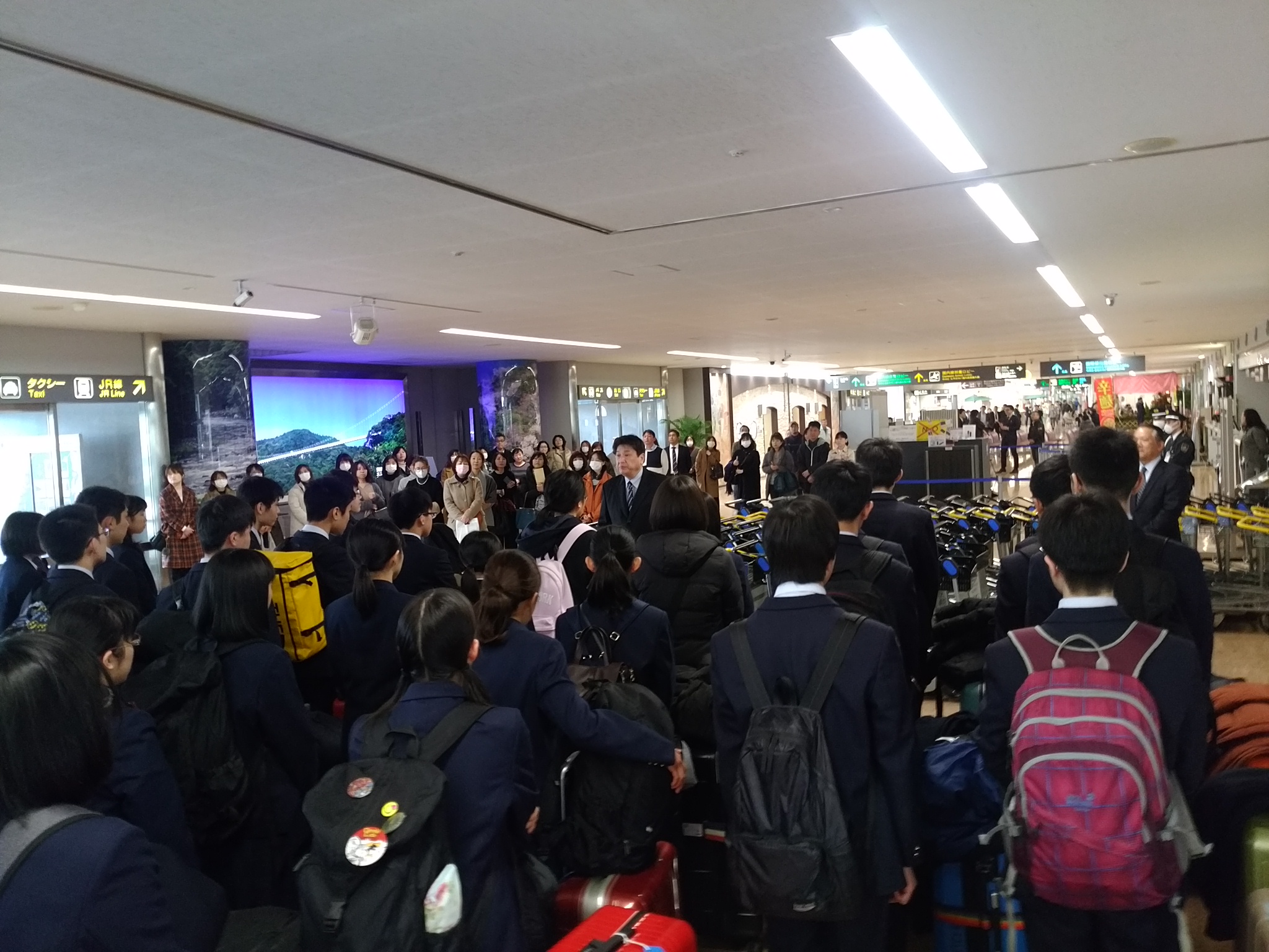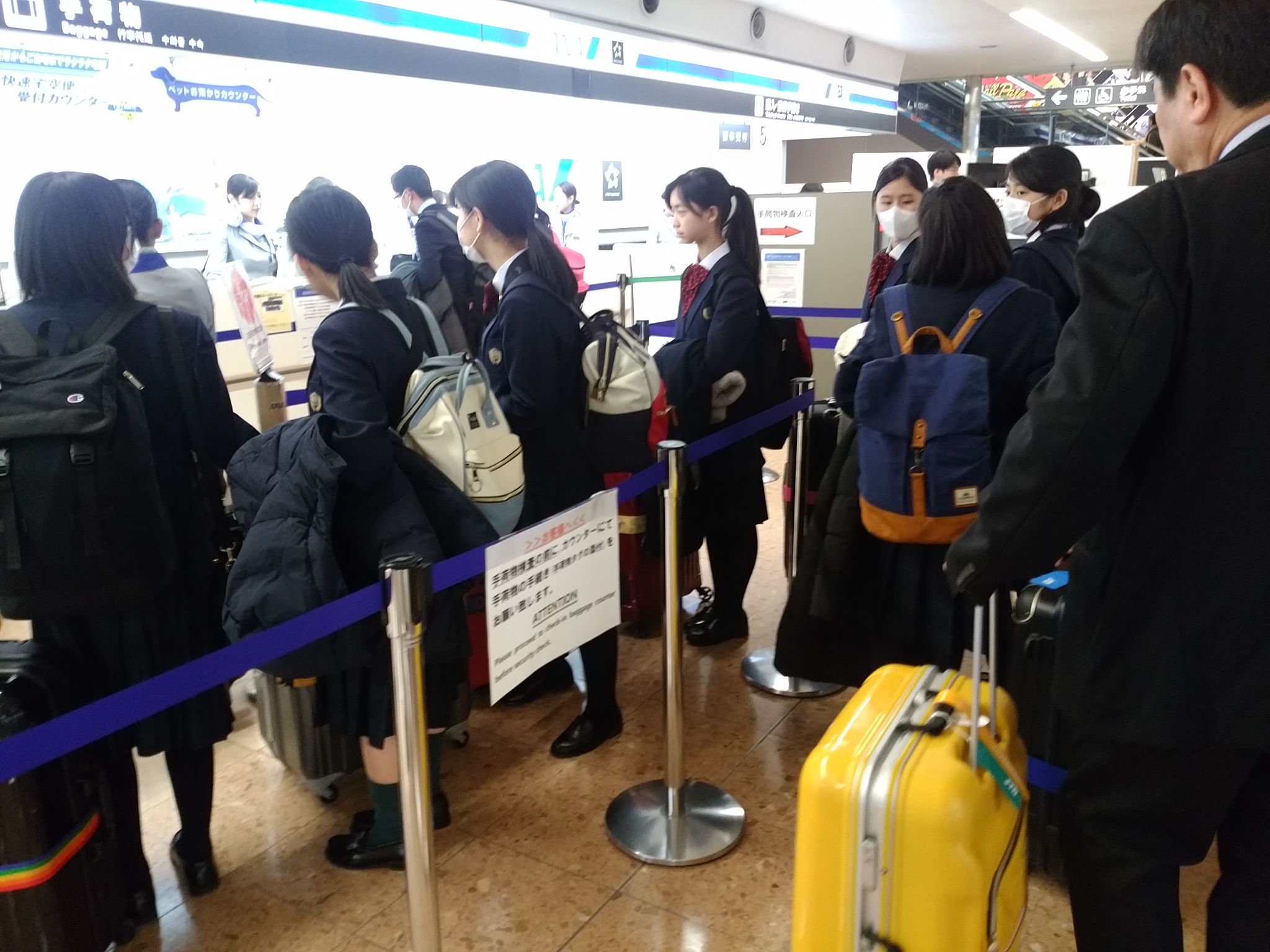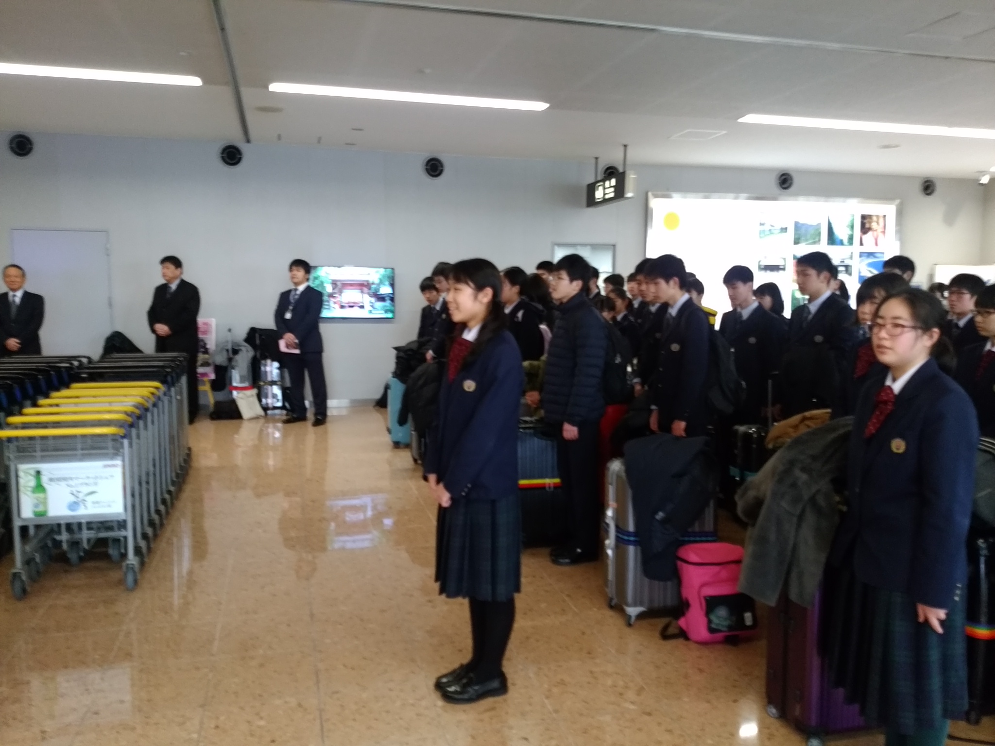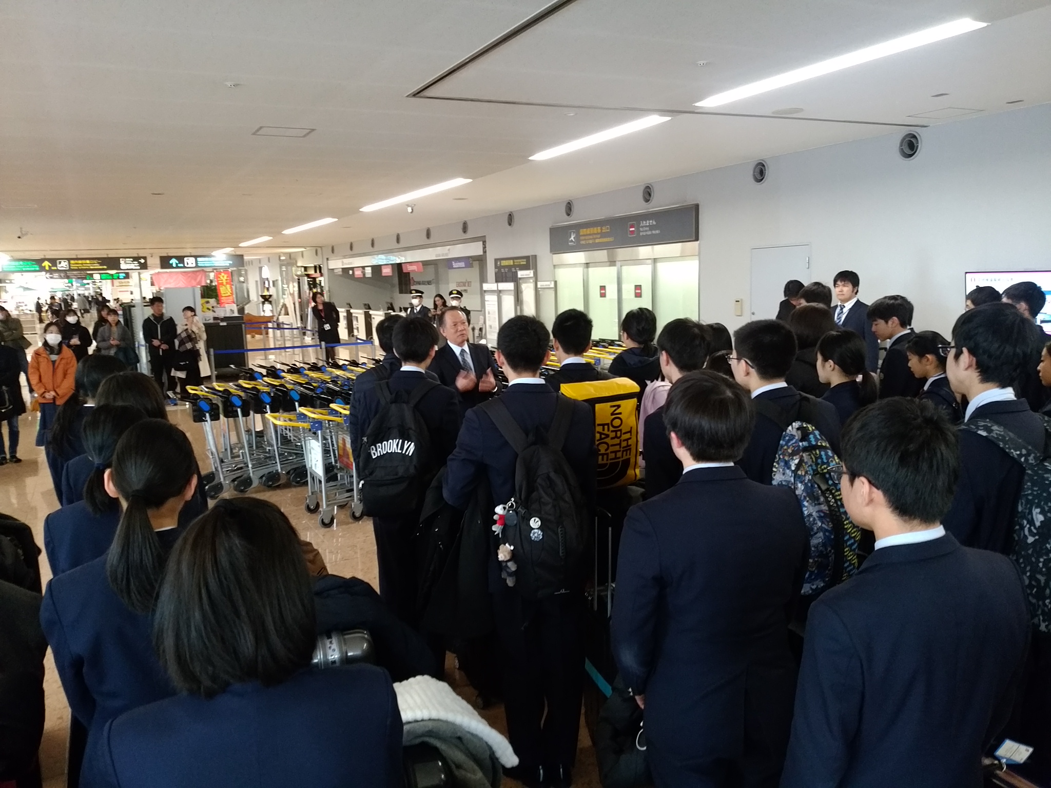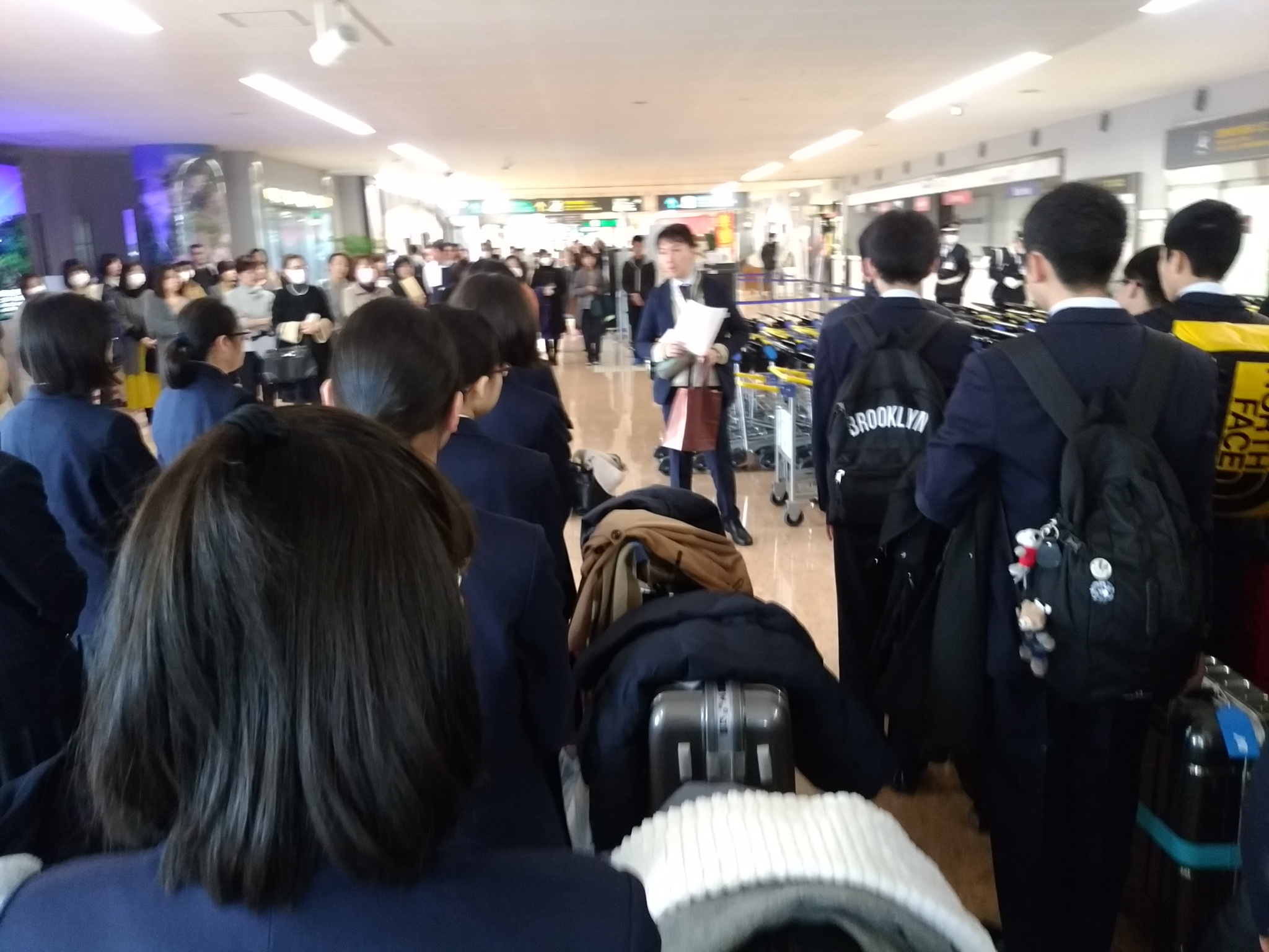 J3修学旅行〔カナダ・バンクーバー〕 2019年2月14日(木)~2月20日(水)【5泊7日】 学校長 川﨑基宏先生団長 吉田成哉先生JTB藤山さん 副団長 福田浩之先生養護教諭 柴田真紀子先生出発挨拶J3B 有馬理子(加納小出身)