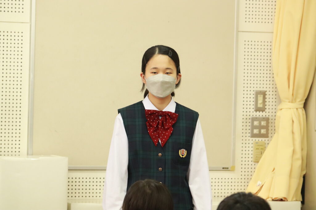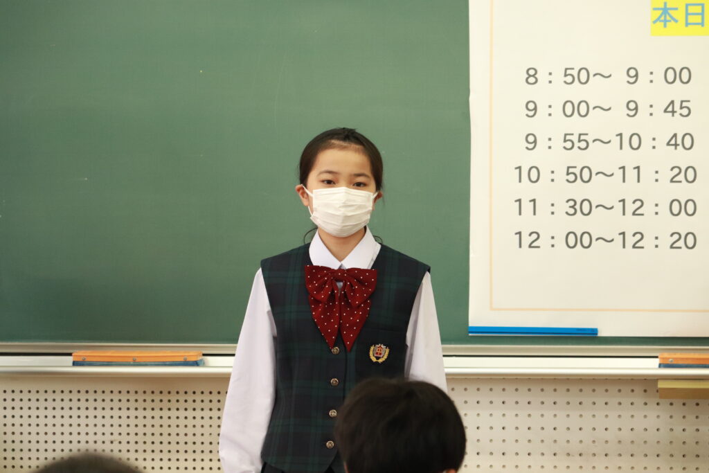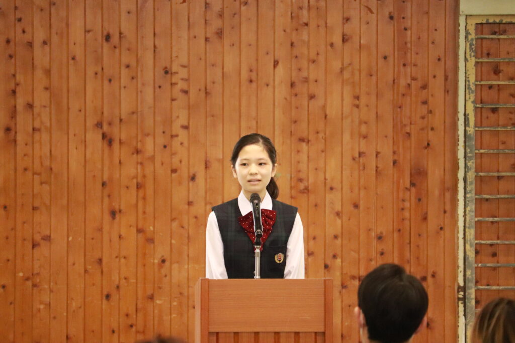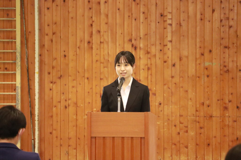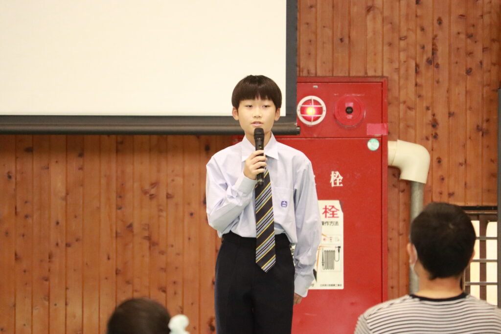 本日の司会進行をJ1A河野愛海さん(恒久小出身)、J2B谷口陽音さん(広瀬小出身)の2人が行ってくれました。