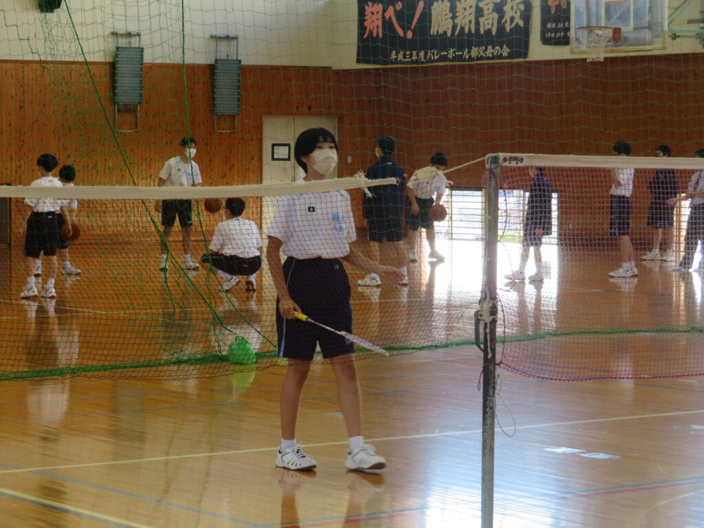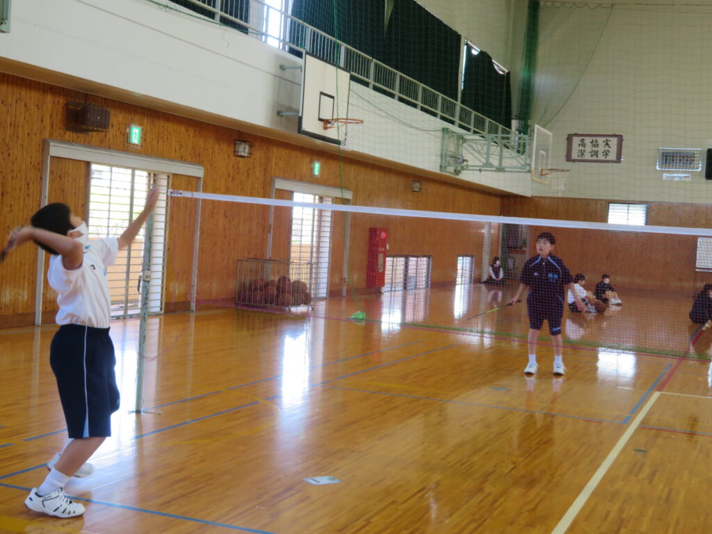 バドミントンはペアを作り、何回ラリーが続くか挑戦していました。ラリーに慣れてきたら、スマッシュを打ち、とても楽しそうに身体を動かしていました。