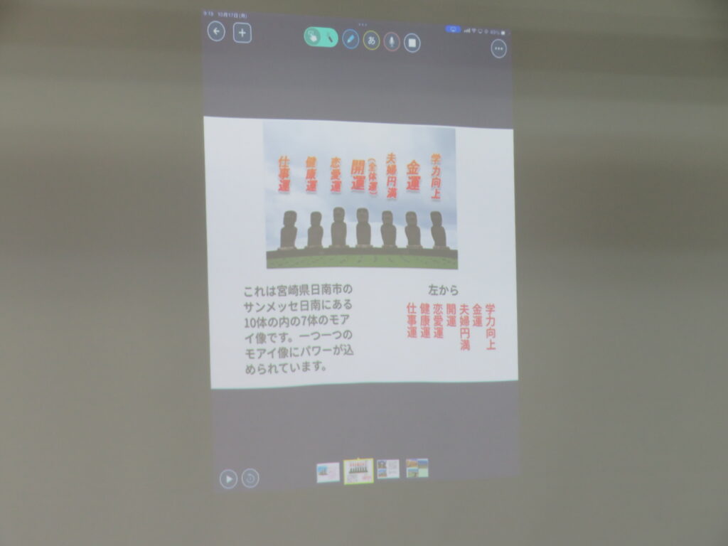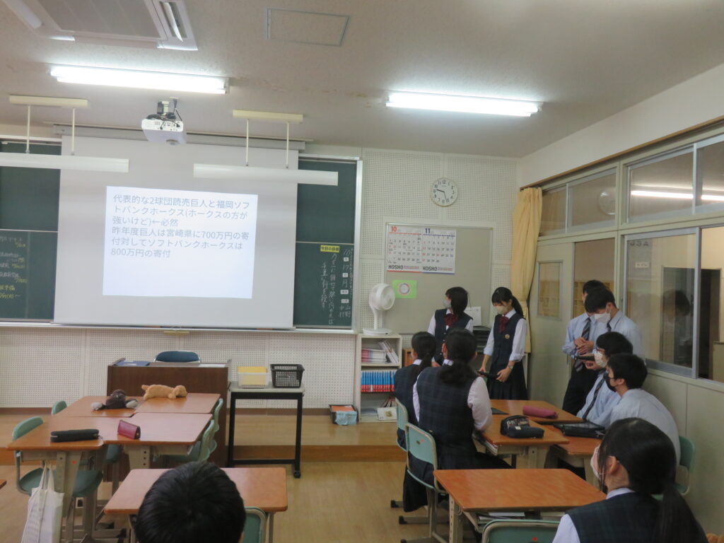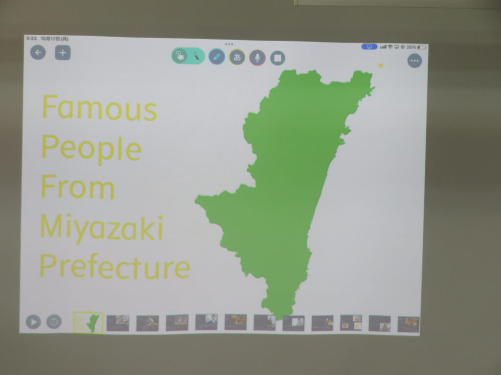LHRの時間に、J3Aでは宮崎PRスライドの発表を行いました。