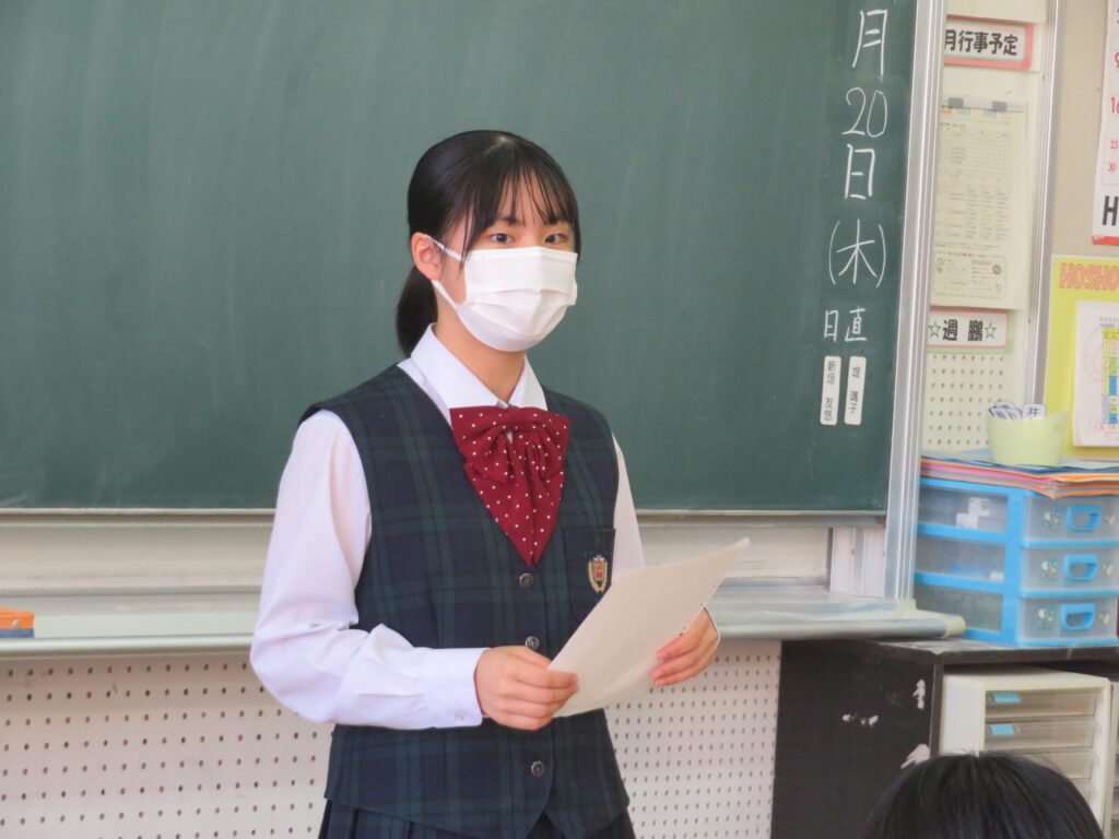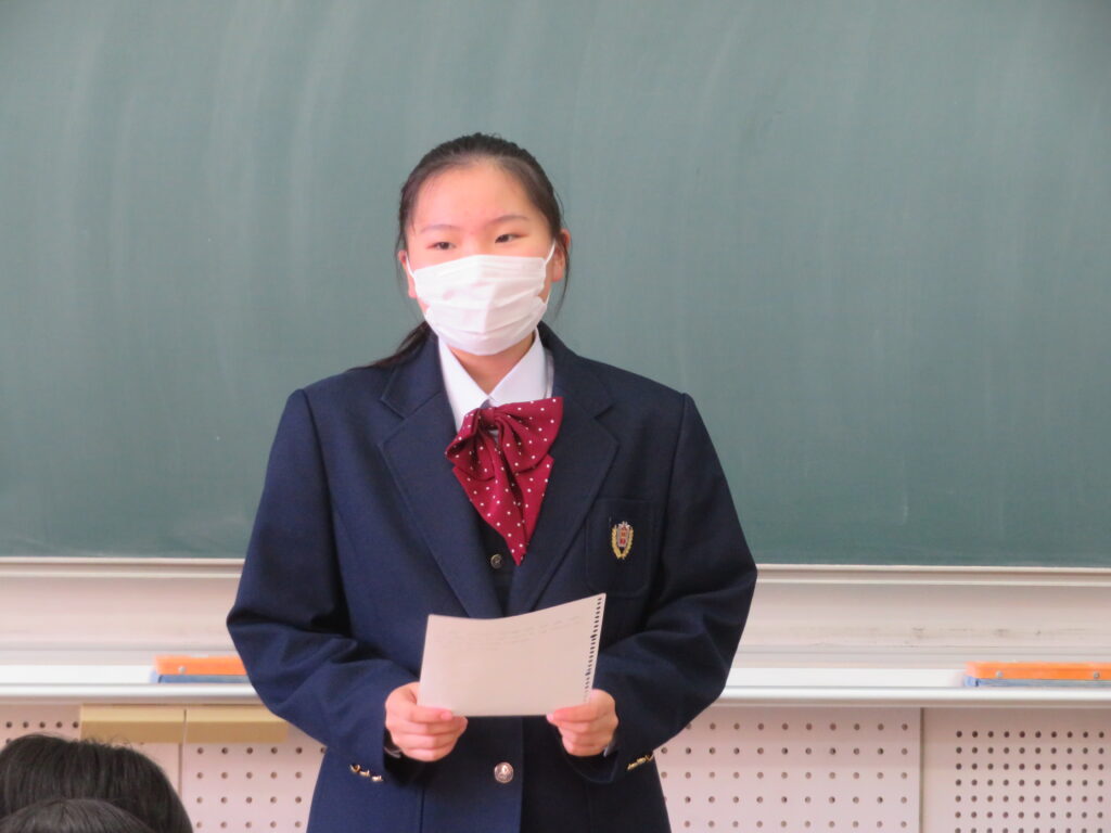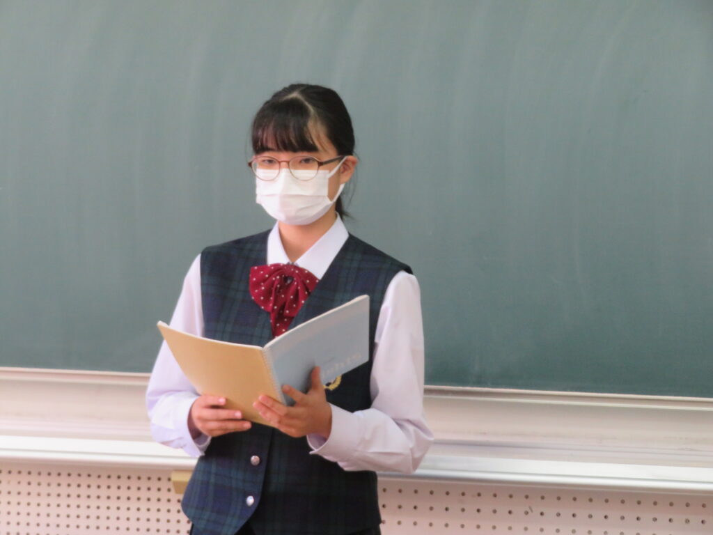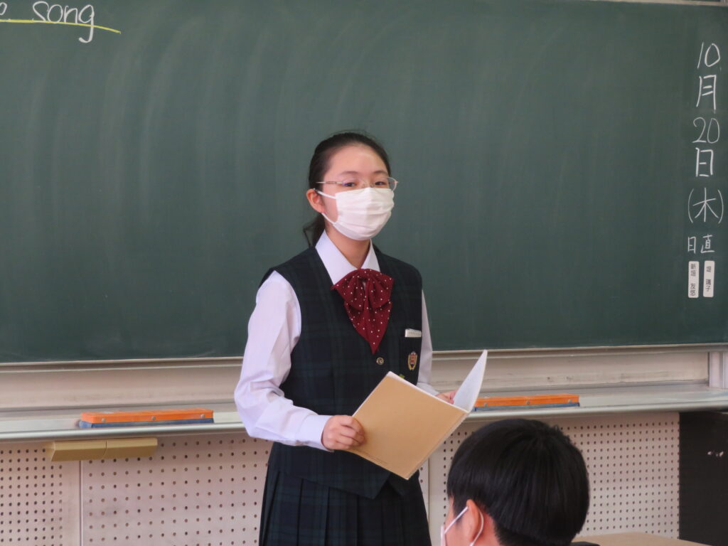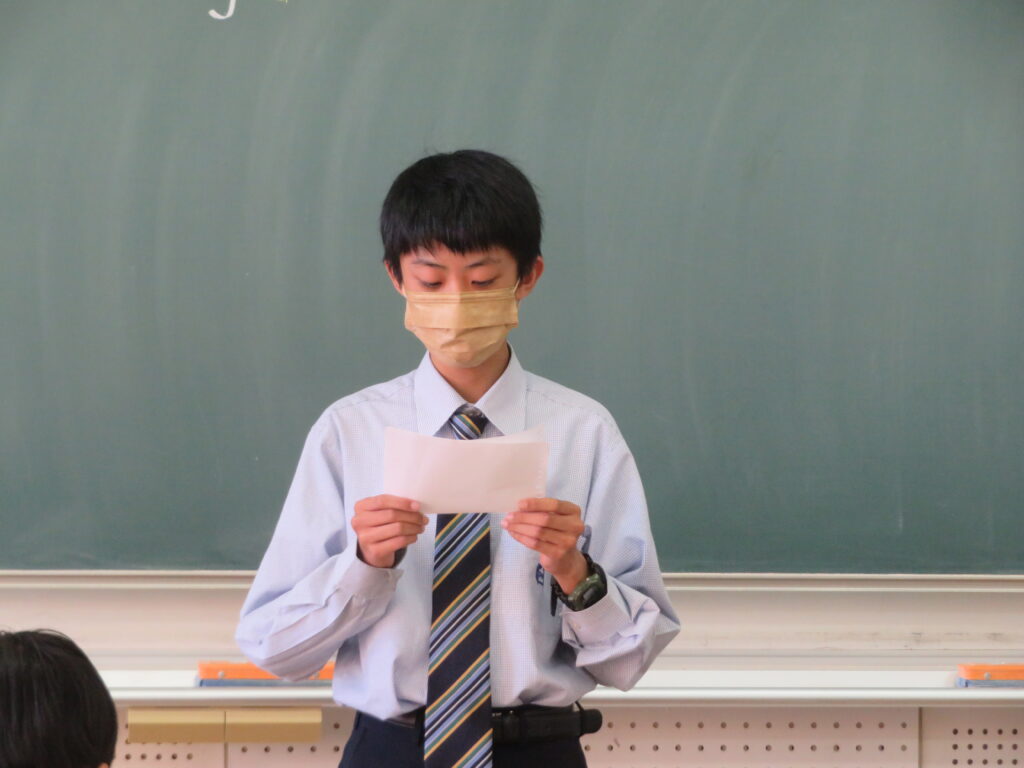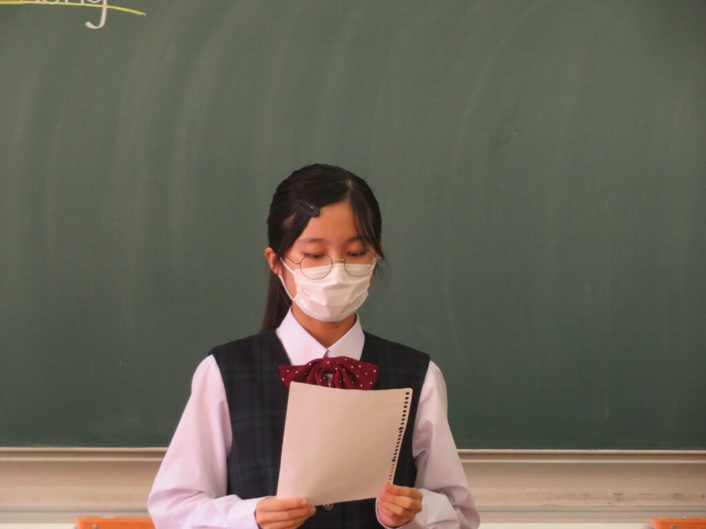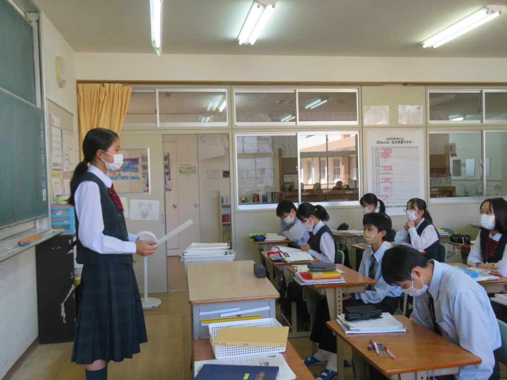 聞き手に自分の思いを上手に伝えるために、使う単語や話すスピードなど、ひとりひとりが工夫しスピーチをしていました。11月1日(火)から参加する英語研修でも、是非積極的に話をしてほしいと思います。