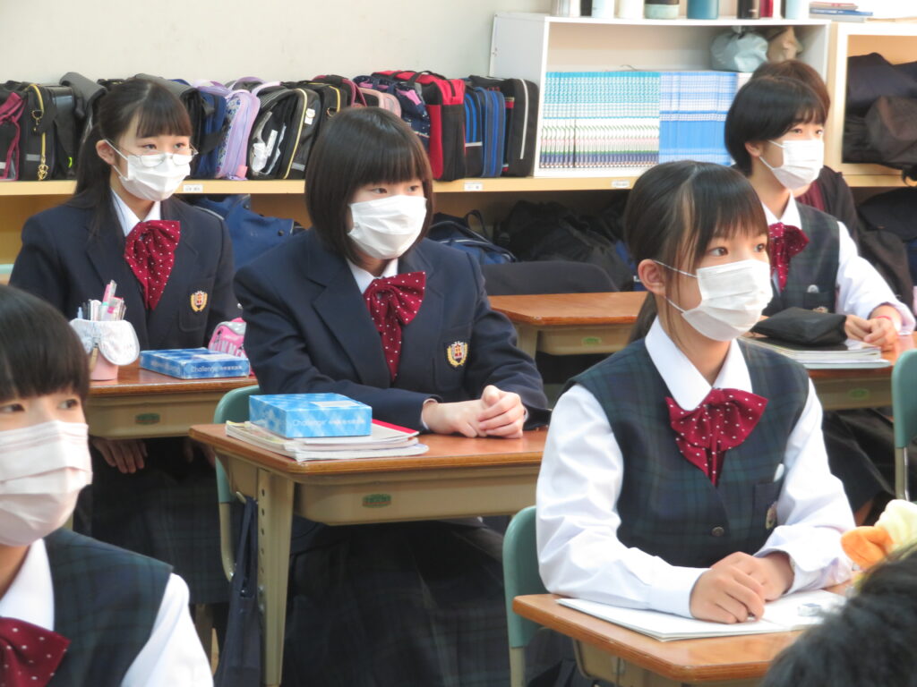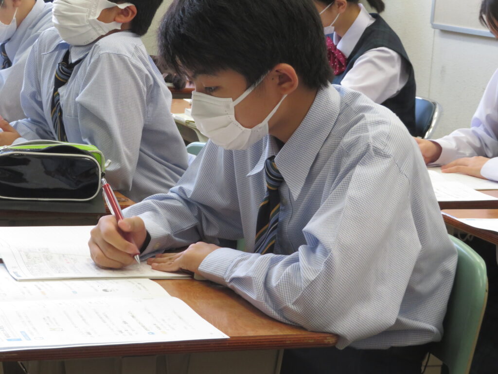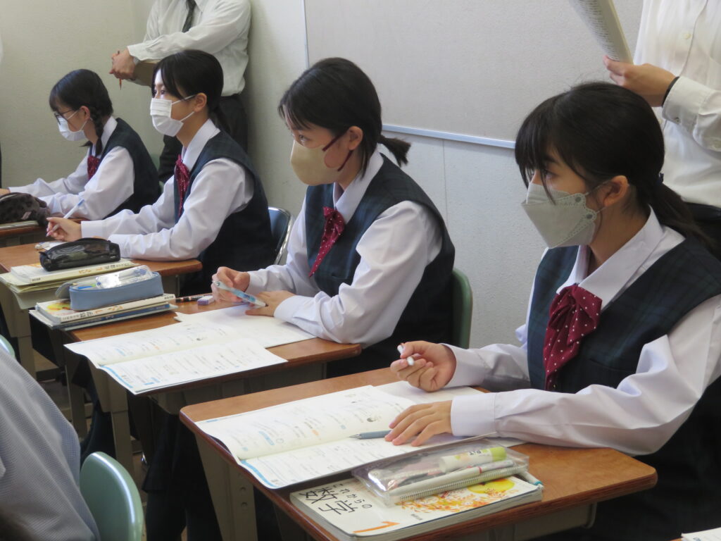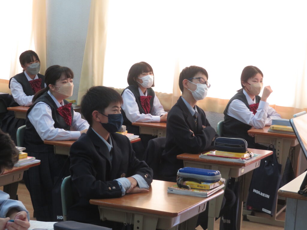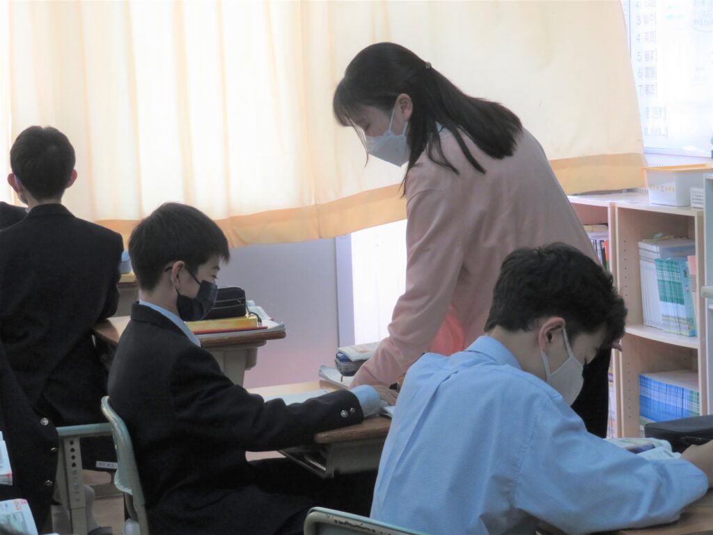 また、現在学校では研究授業が行われています。いろんな先生が参観に来られ、生徒たちはいつもより少し緊張している様子でしたが、積極的に発言し、挙手をしている姿を見ることができました。
