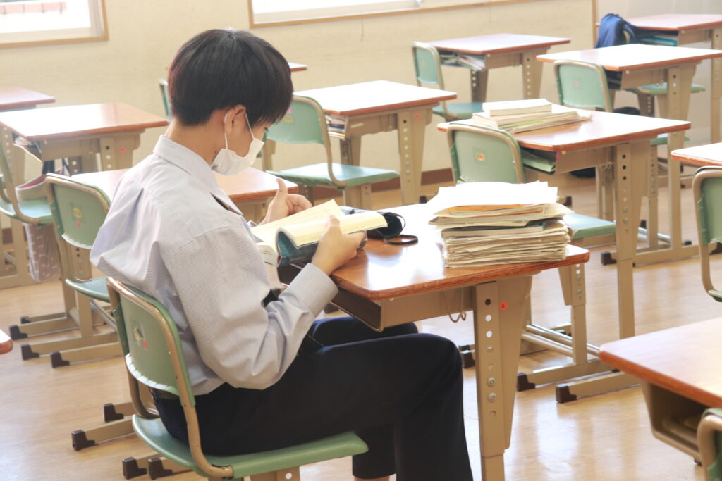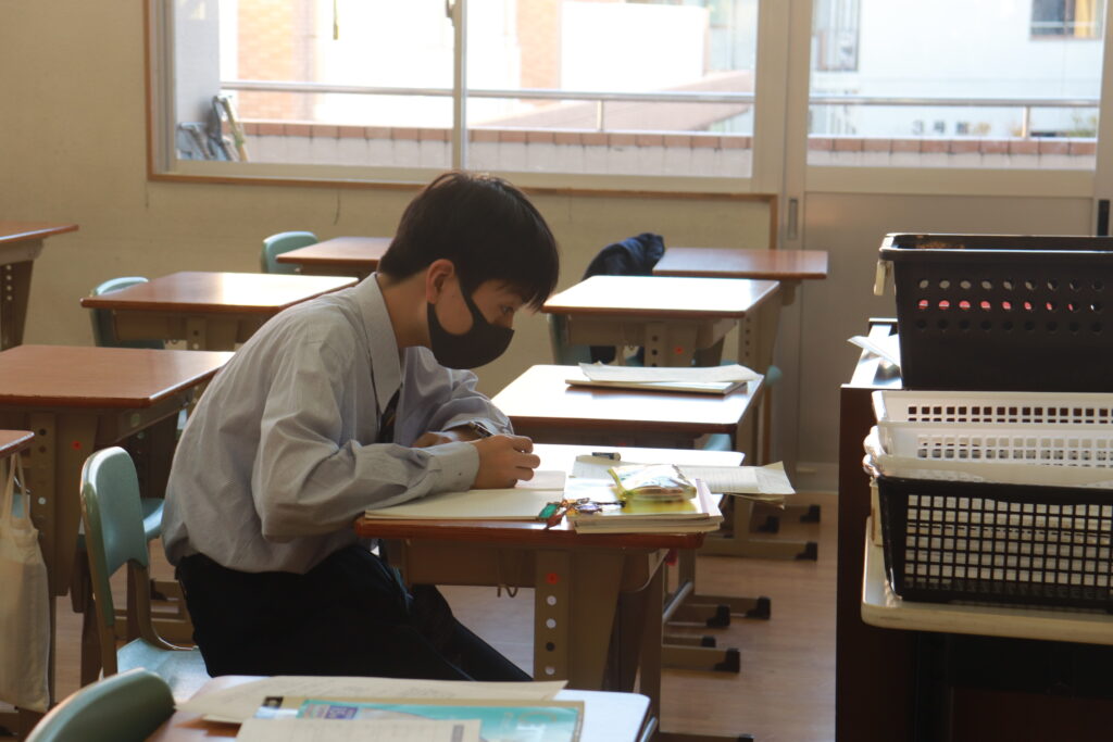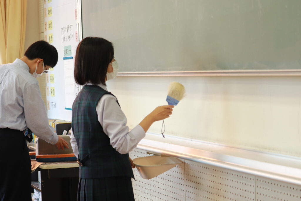 HRが終わってよく見かけるのは、各クラスの日直が黒板等の教室整備を行っているところです。次の日の朝課外から気持ちよく授業に入れるのは彼らのおかげですね。また、次の日の時間割や課題を生活の記録にしっかりとメモをしている生徒や、クラスメイトと談笑してその日の疲れを癒している生徒たちもよく見かけます。