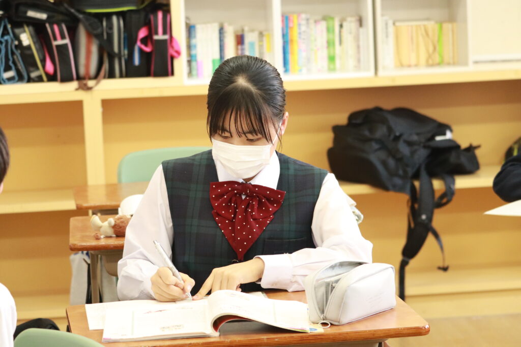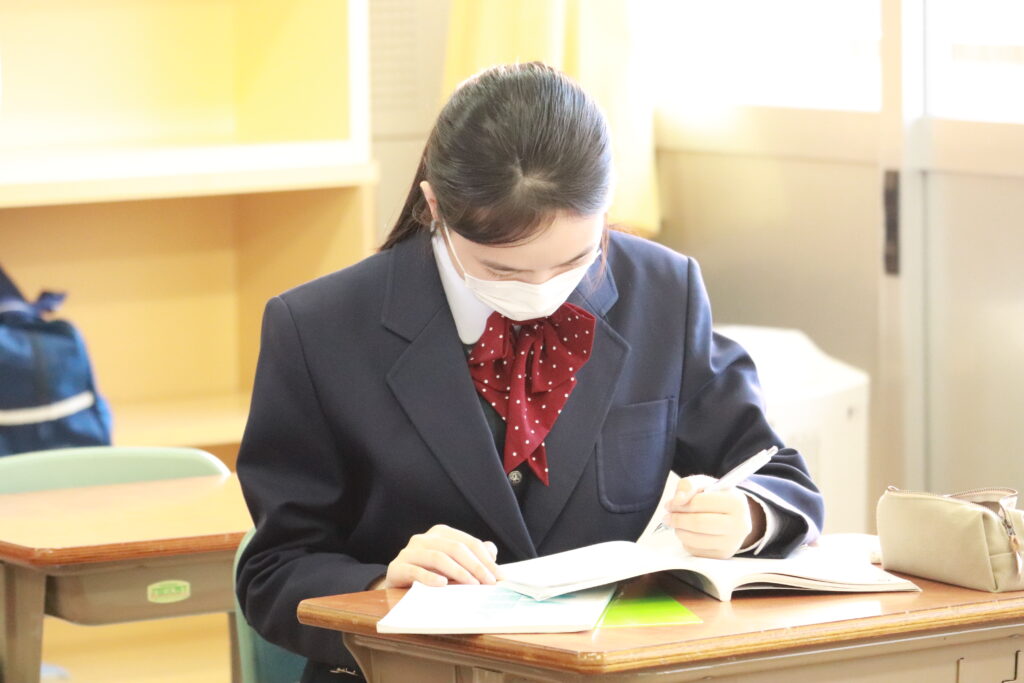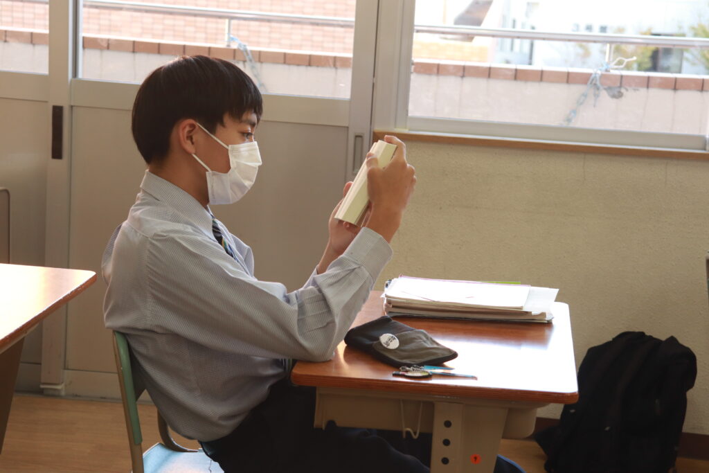 少し時間が経つと、迎えや電車・バスの時間を待っている間に課題に取り組んでいる生徒や、読書に没頭している生徒など、様々な様子が見られます。時間の使い方が上手になったなと感心しています。また、英語検定の2次試験を控えている生徒は英語の先生と対策を行っていました。