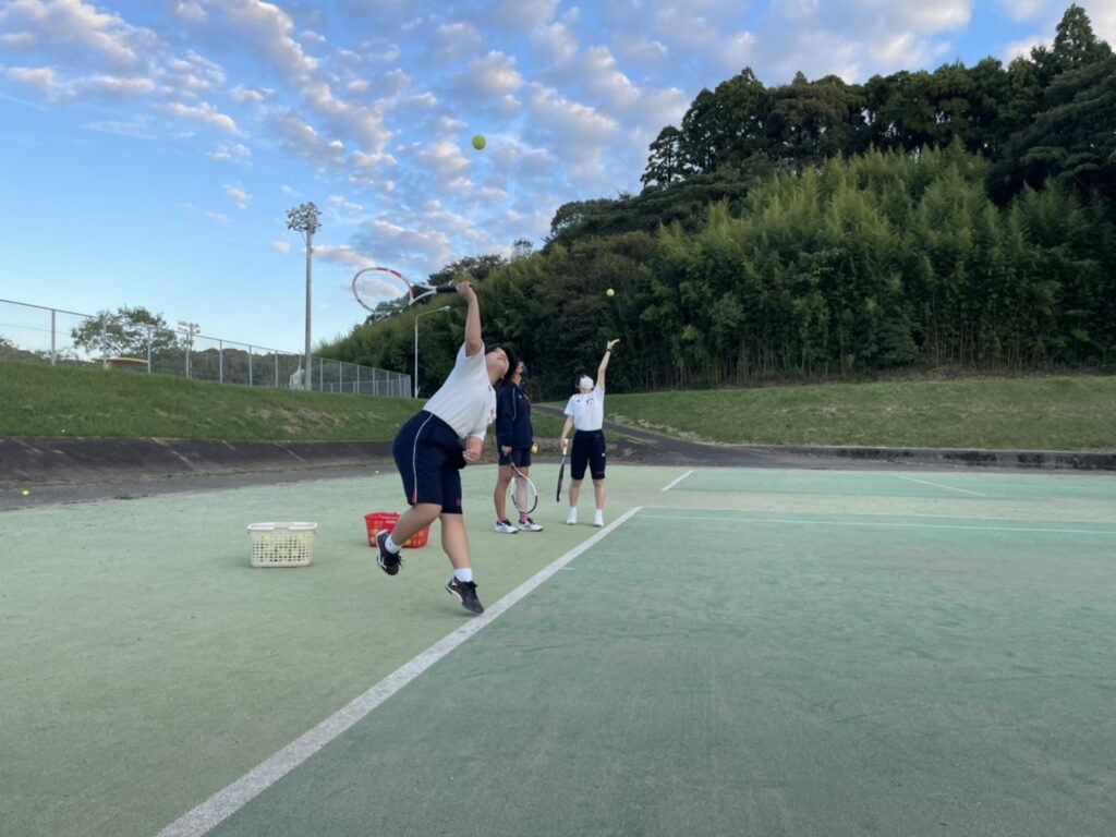 部活動日ではありませんが、男子バスケットボール部は、廊下でトレーニングを行っていました。きついトレーニングも仲間と一緒に頑張っていました。今週末に中体連を控えている硬式テニス部は宮崎産業経営大学のテニスコートに移動し汗を流していました。新チーム初めての試合になるので1勝でも多く勝ってもらいたいですね。がんばれ!!