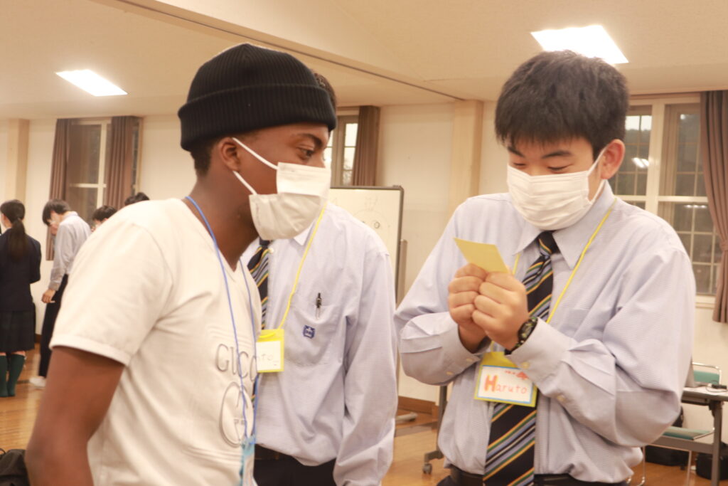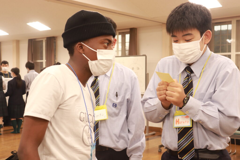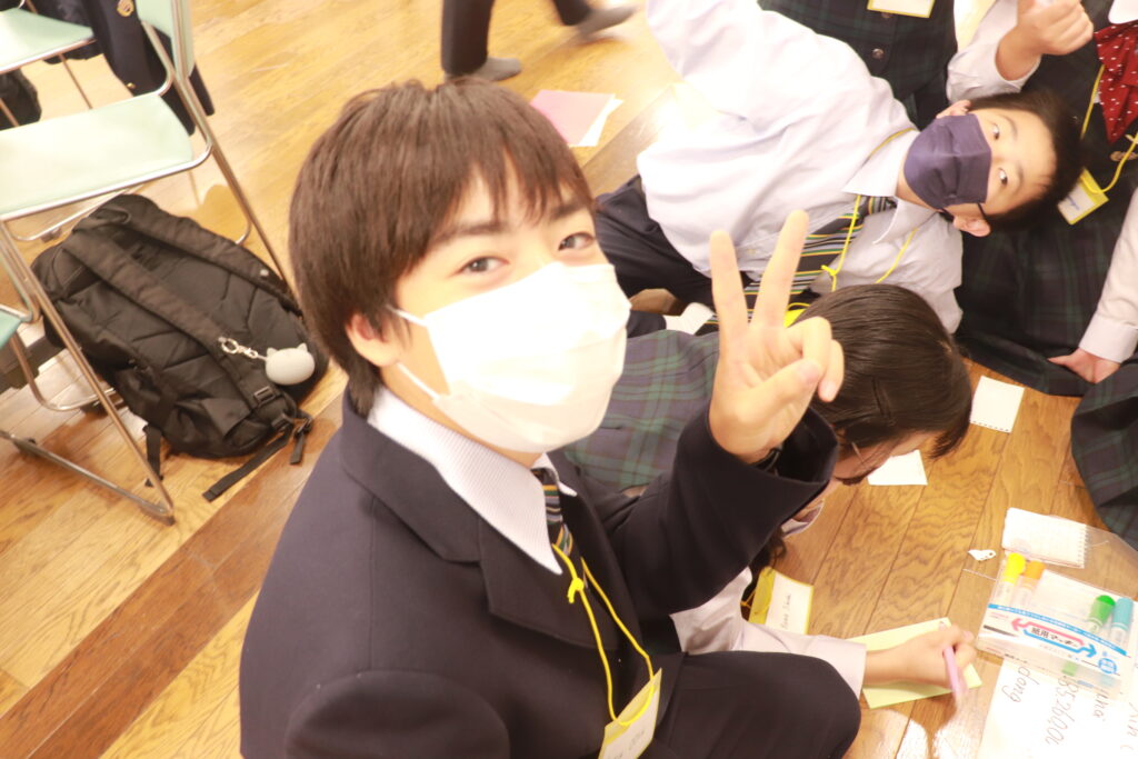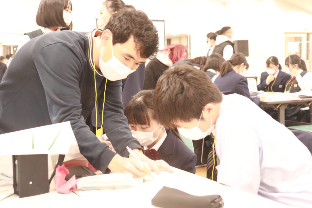 お昼からずっと英語に触れている生徒達には少し疲れも見えてきましたが、まだまだ学びたいという意欲が溢れ、グローバルリーダーに自ら話しかけに行く姿が多いです。今日の活動もあと少しです。頑張れJ2生!!!