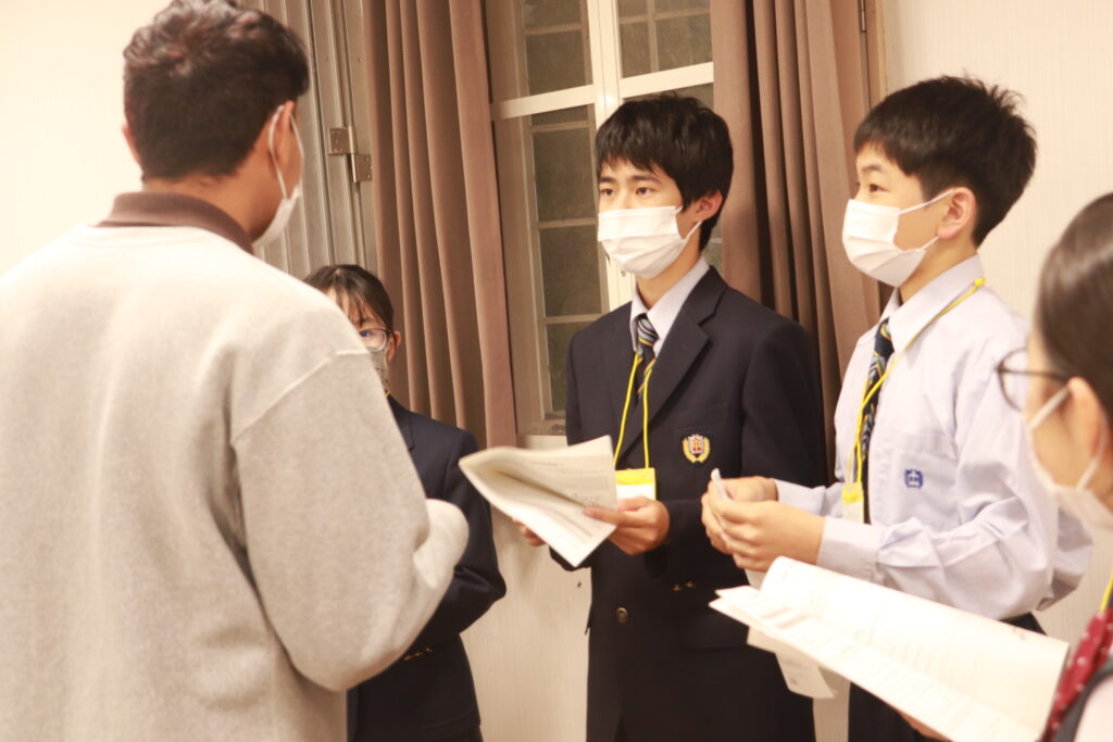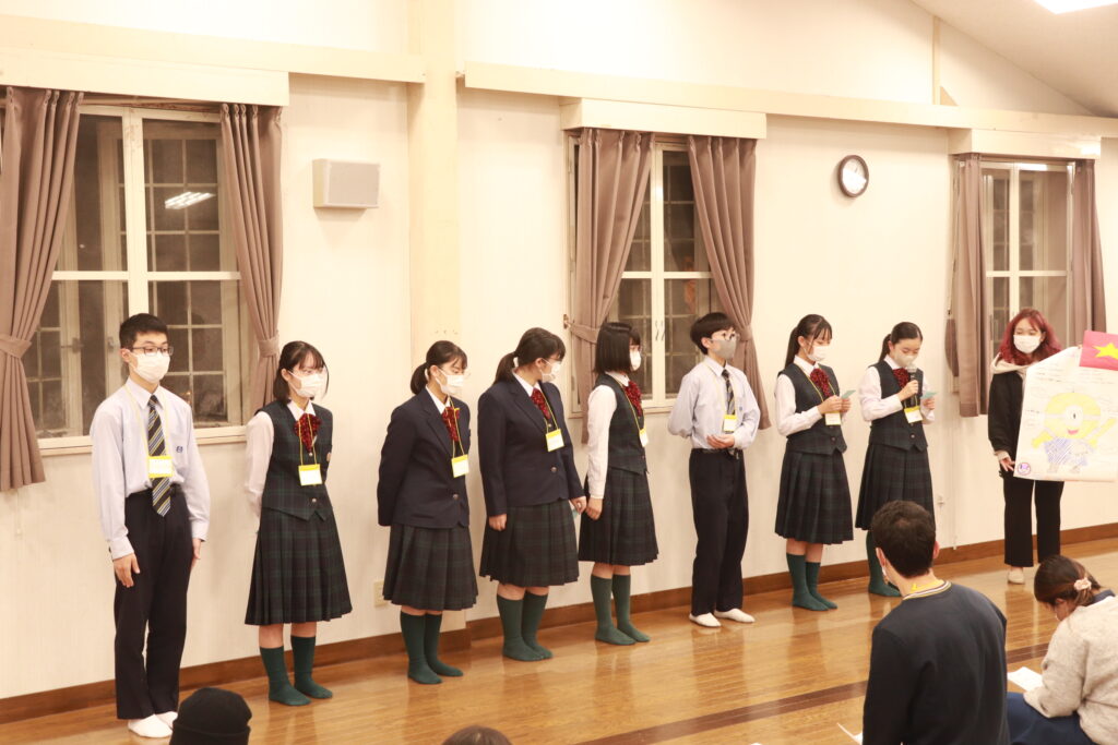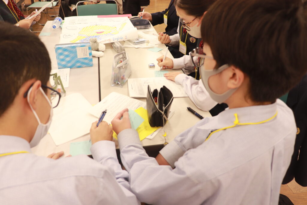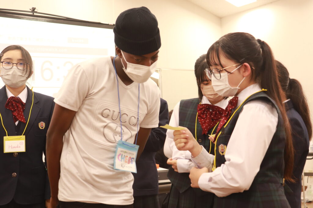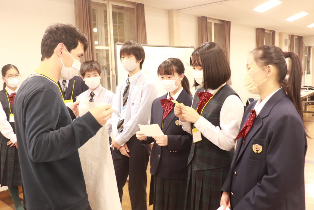 お昼からずっと英語に触れている生徒達には少し疲れも見えてきましたが、まだまだ学びたいという意欲が溢れ、グローバルリーダーに自ら話しかけに行く姿が多いです。今日の活動もあと少しです。頑張れJ2生!!!