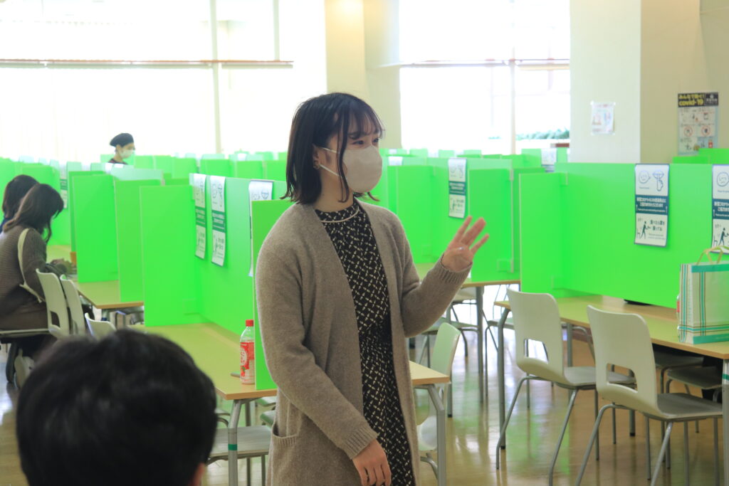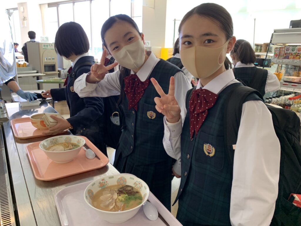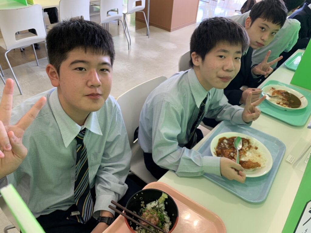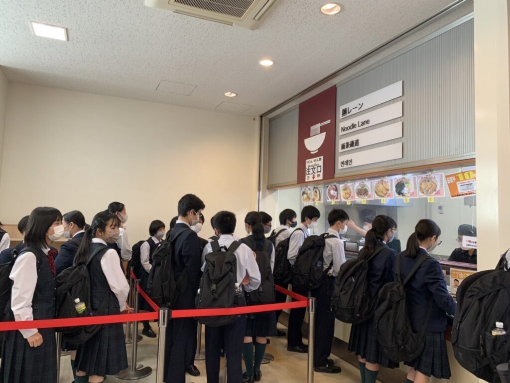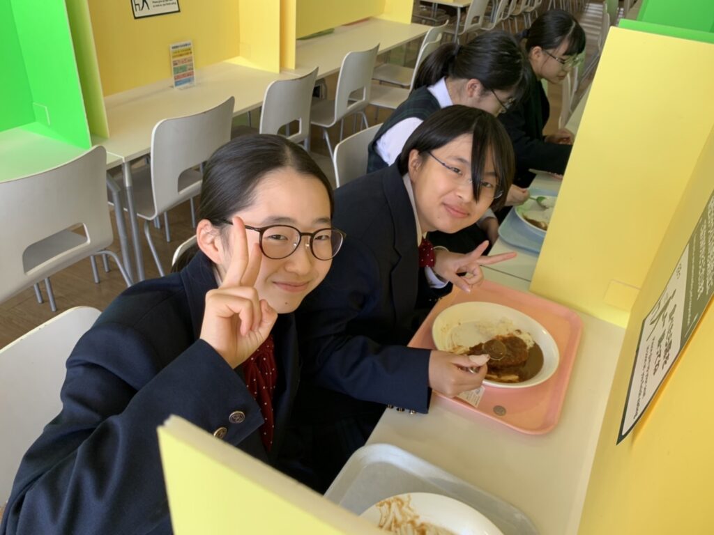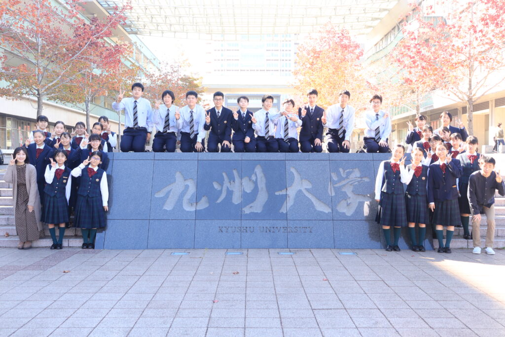 最後の目的地の九州大学に到着しました。朝から動きつづけていた生徒たちは、大学の学食で大学生に交じりながら、自分たちでメニューを選びお昼ご飯を食べました。普段は、学校の教室で昼食をとる生徒たちにとっては、大学生に交じっての昼食は、ちょっと背伸びをした良い経験になったのではないでしょうか。