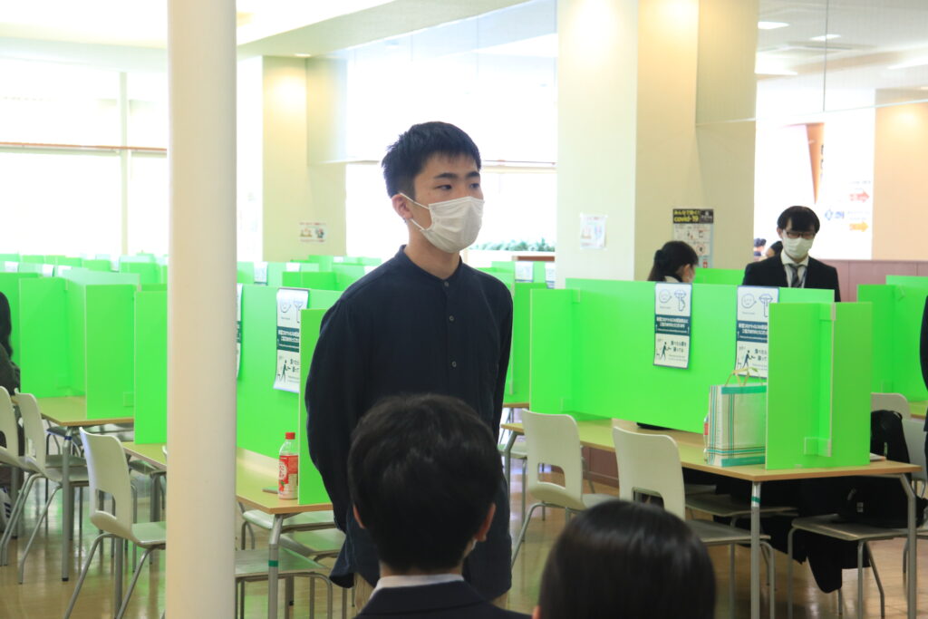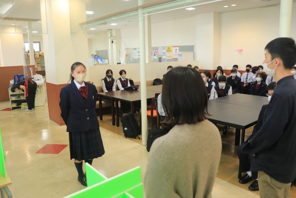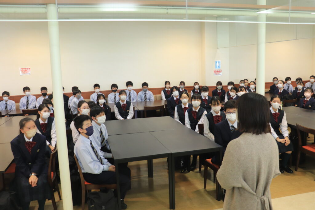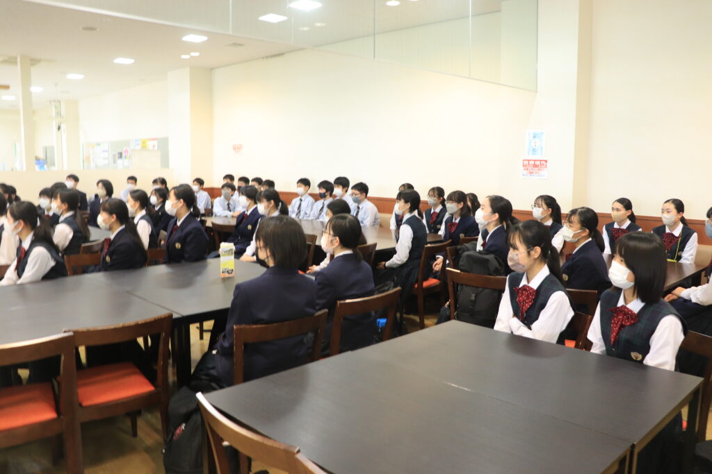 昼食を終えた生徒たちは、会場を移動して中高一貫の先輩による講話を聴きました。中学時代の話や、大学受験に向けての心構え、大学で頑張っていることなど生徒たちにとっては、お手本となる話が盛りだくさんでとても為になるものでした。生徒たちの勉強に対するモチベーションも上がったと思います。