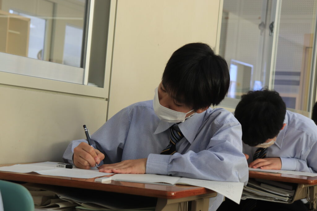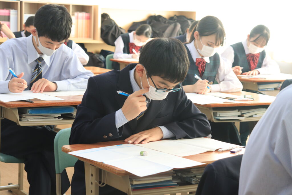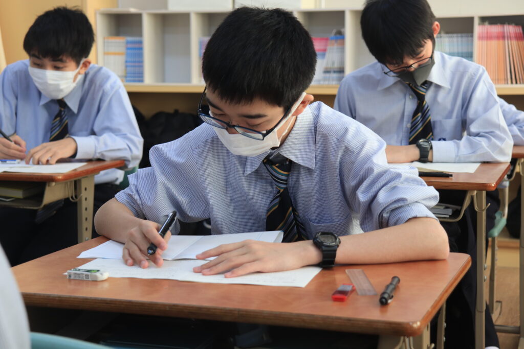本日、J3生がベネッセ総合学力テストを受験しました。普段の定期考査とは異なり、1つの教科のテストが60分を超えるものでしたが、鵬翔中学校最上級生として、最後まで一生懸命、問題と向き合っていました。