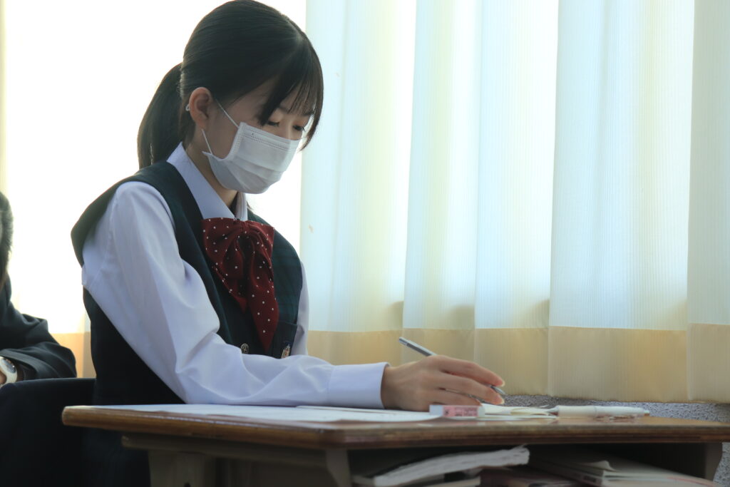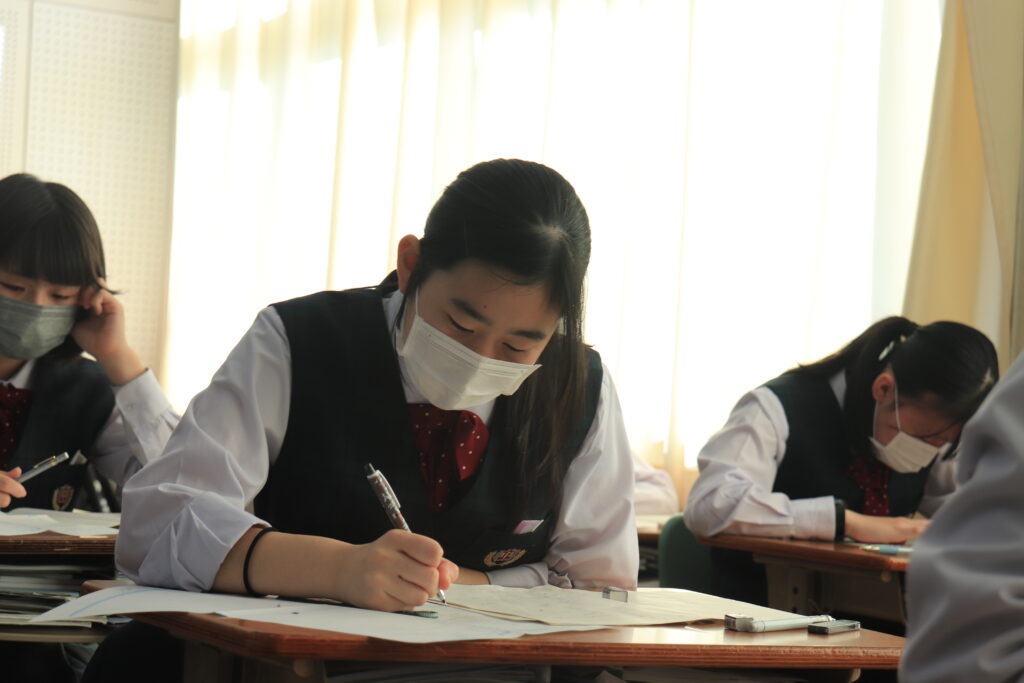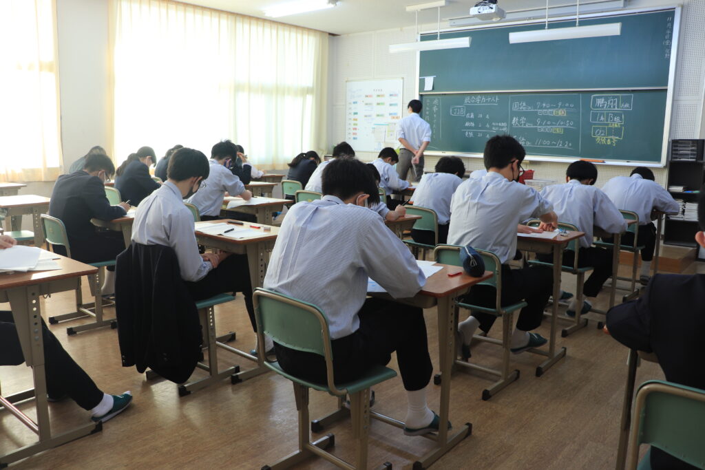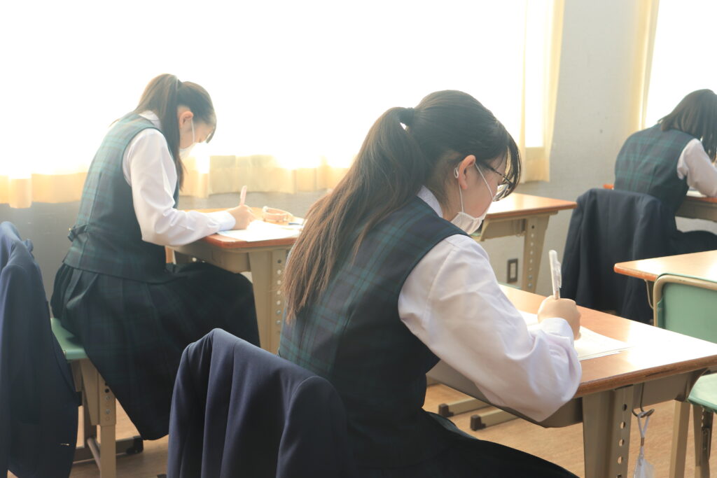 模擬試験が終わったJ3生は、緊張が解けたのか友達と「ここの問題が難しかった」など談笑を楽しんでいました。