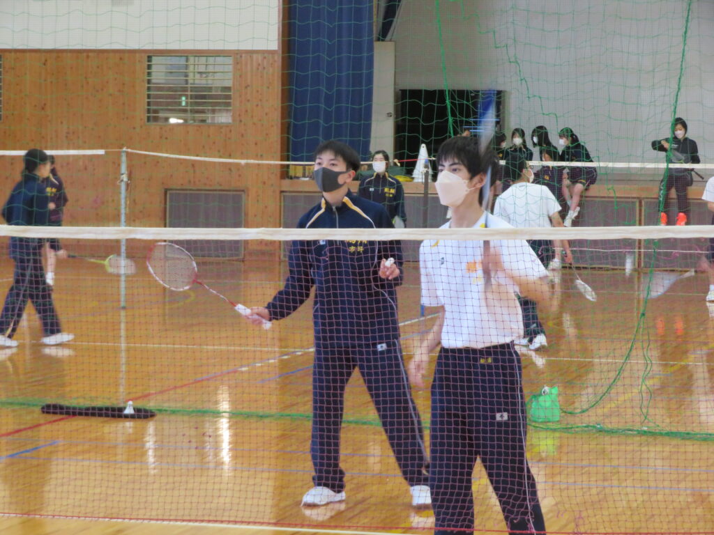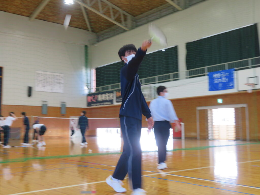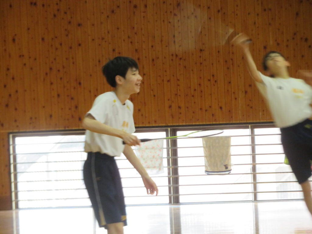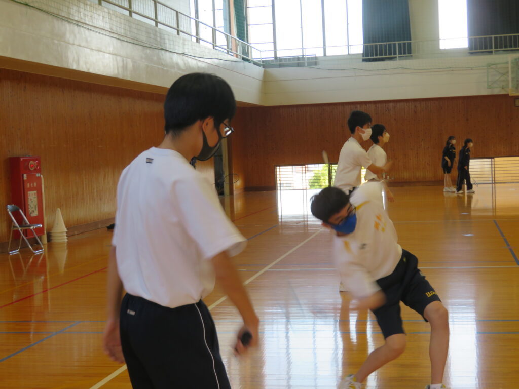 タイマーの合図で対戦相手を変え、色々な生徒と試合をしていました。男女のダブルスがあったり、シングルスで真剣勝負をしたりしているところもありました。