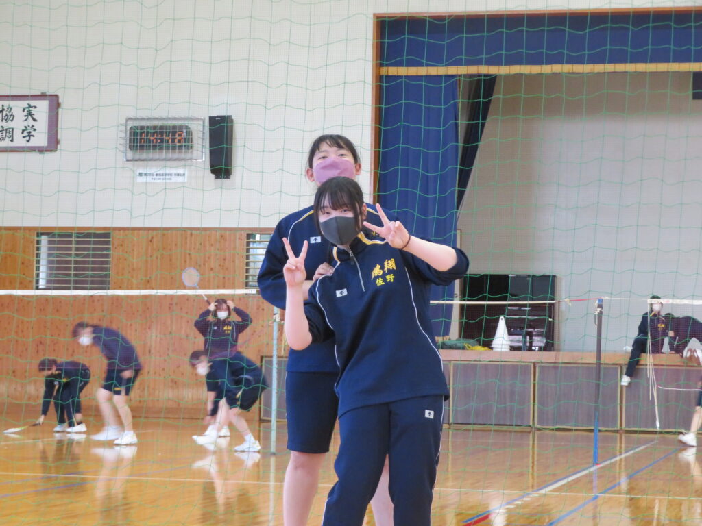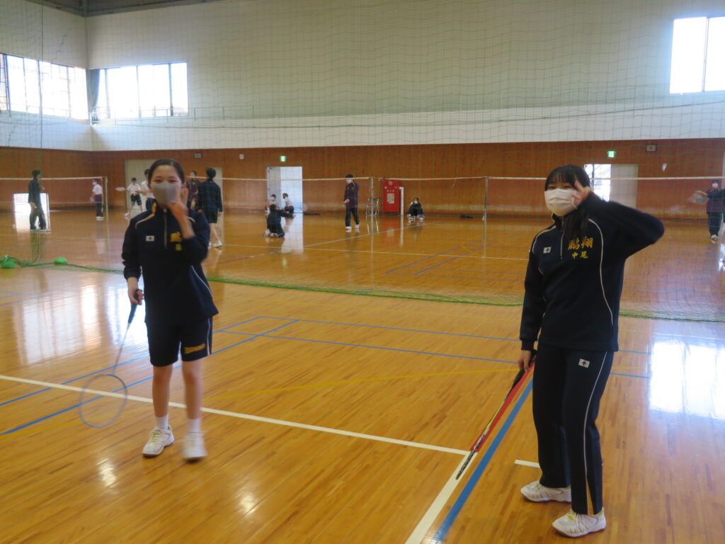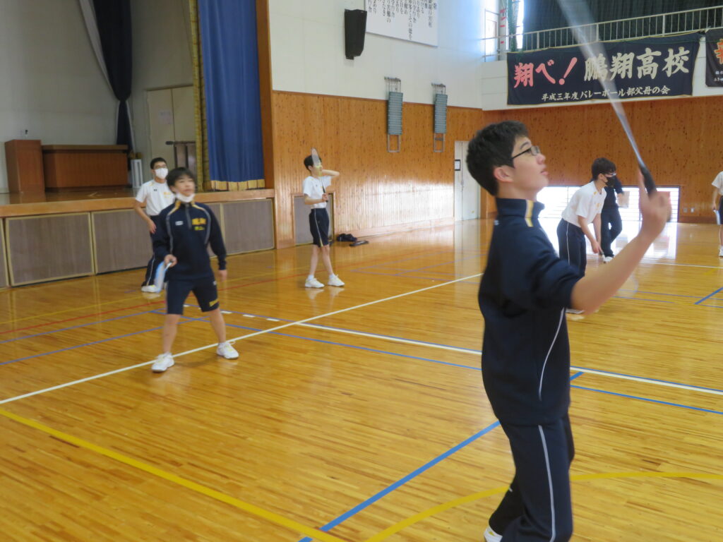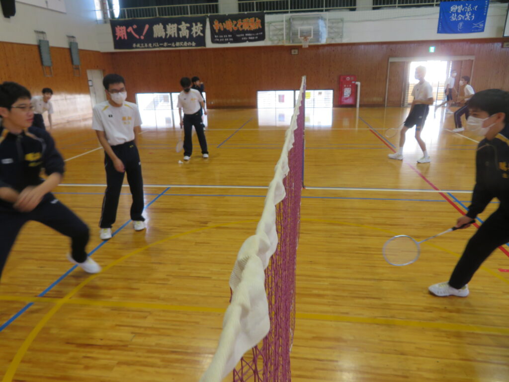 タイマーの合図で対戦相手を変え、色々な生徒と試合をしていました。男女のダブルスがあったり、シングルスで真剣勝負をしたりしているところもありました。