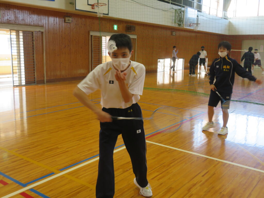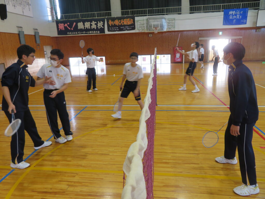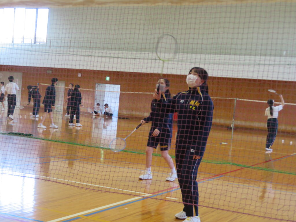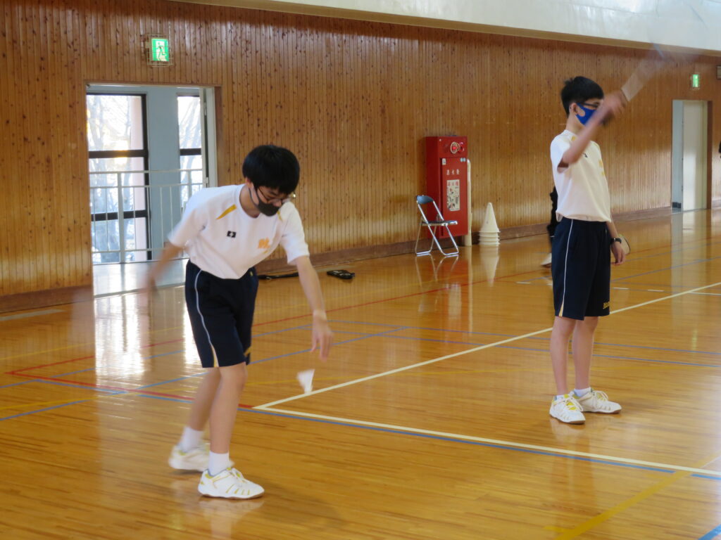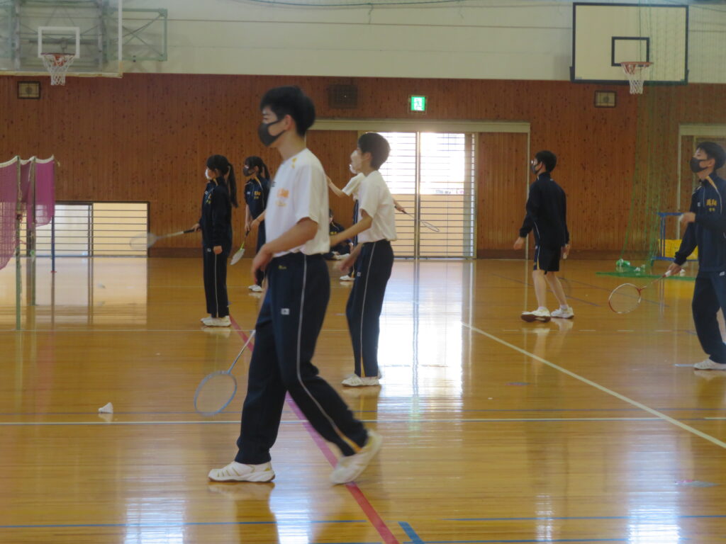 本日6限目、J3生は体育の授業でバドミントンをしていました。準備運動後、試合スタートです!