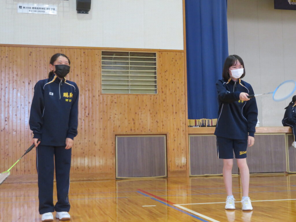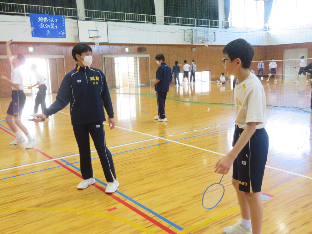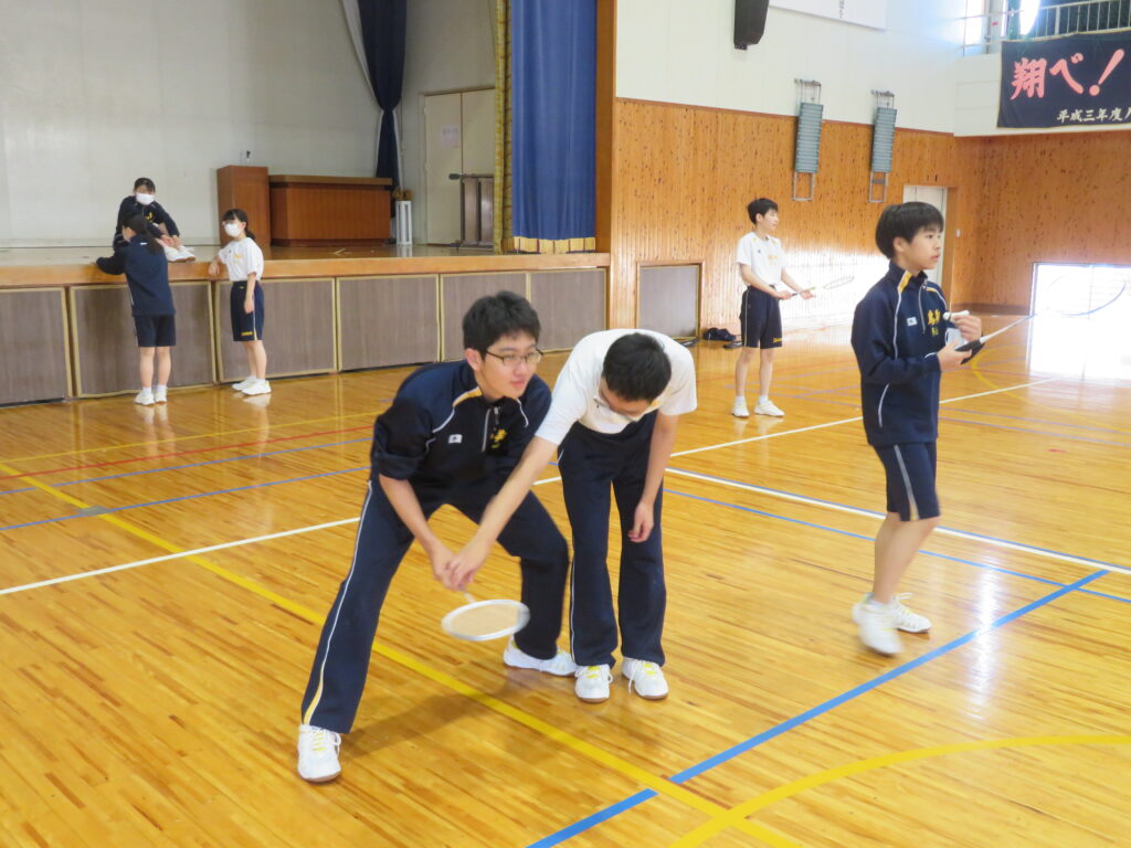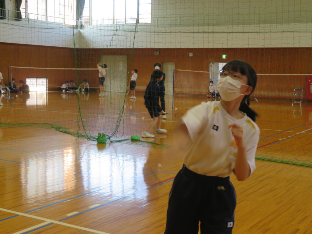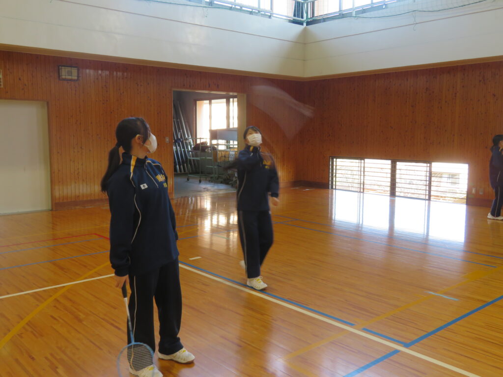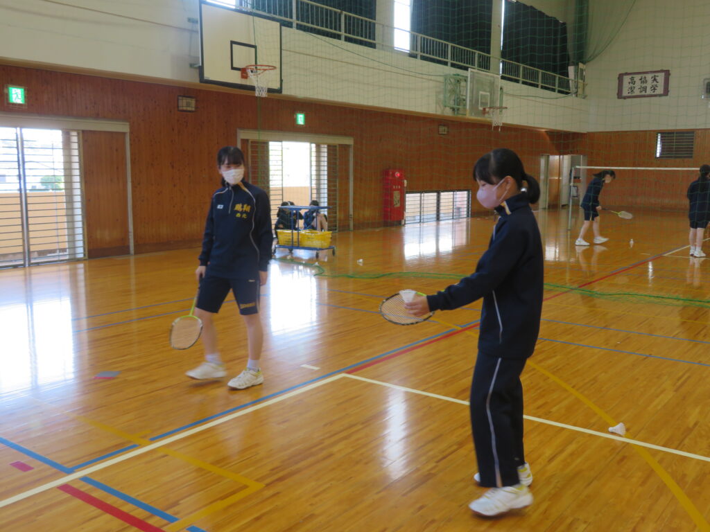 本日6限目、J3生は体育の授業でバドミントンをしていました。準備運動後、試合スタートです!