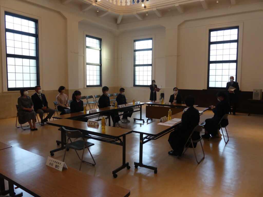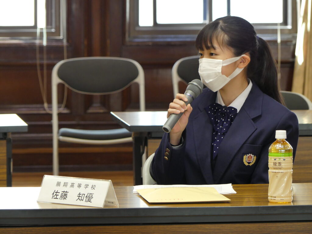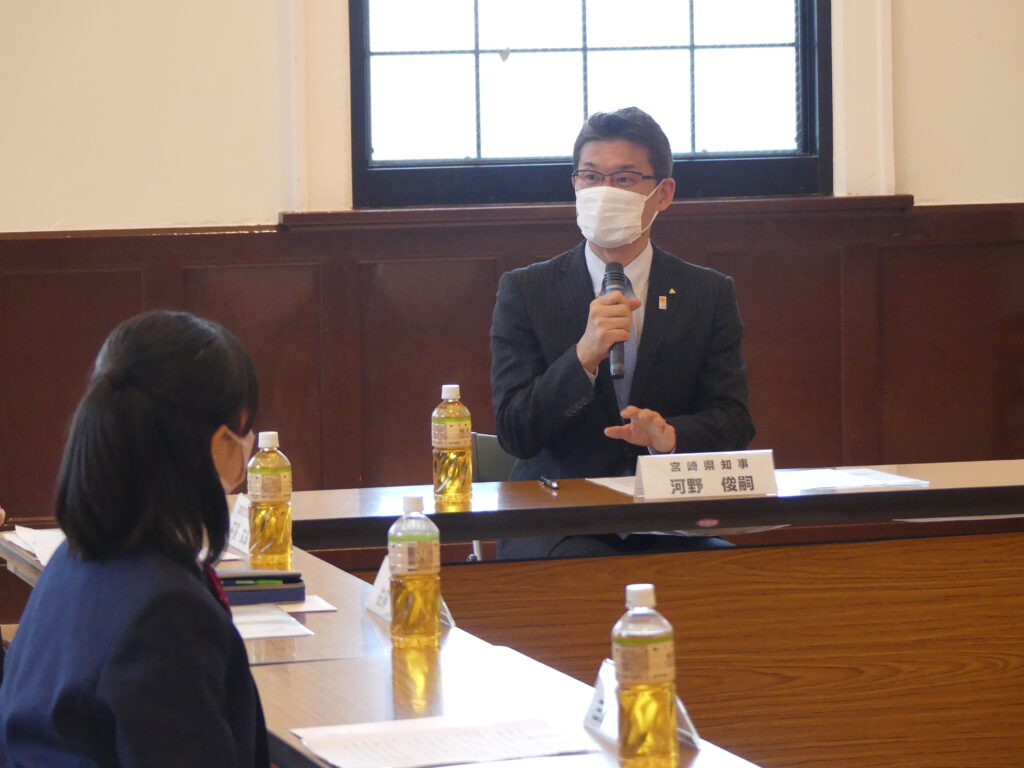 とても緊張した様子でしたが、自分の思いをしっかりと河野知事に伝えていました。昨年度も、現在高校3年生の佐藤知優さんが対談をしています。
