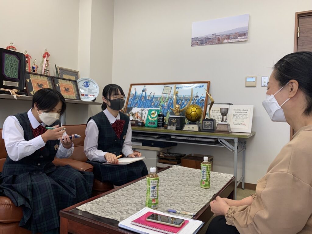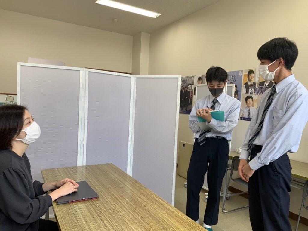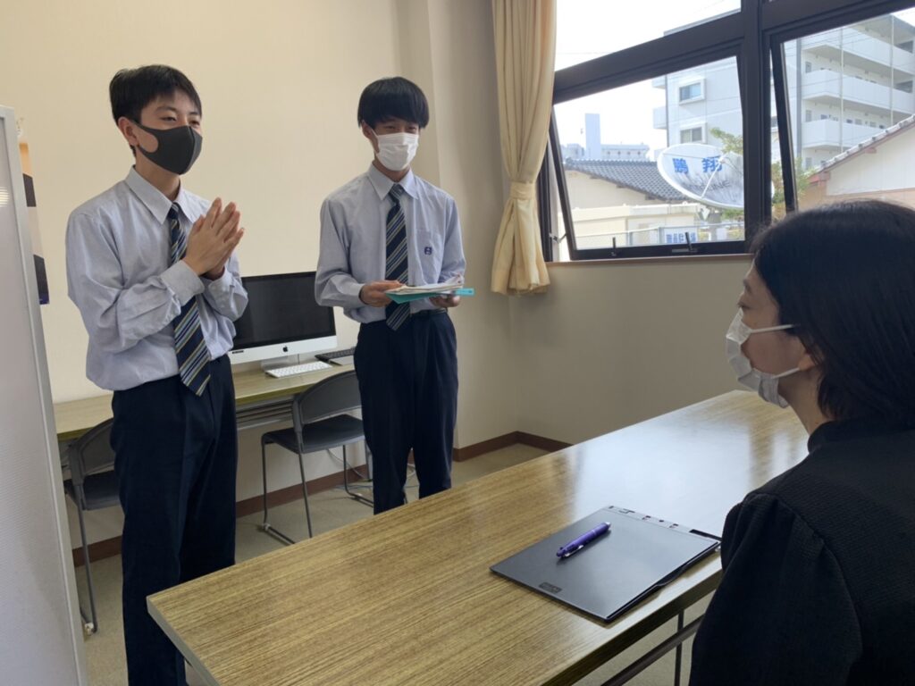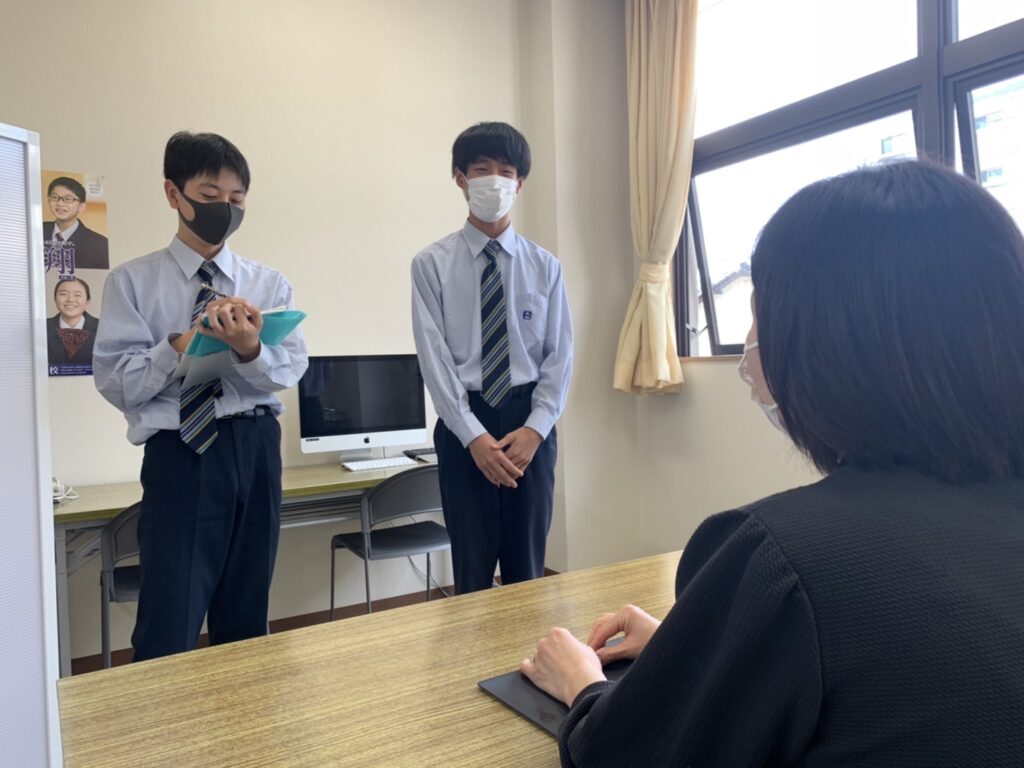 各学年の代表生徒が講師の先生にインタビューを行いました。