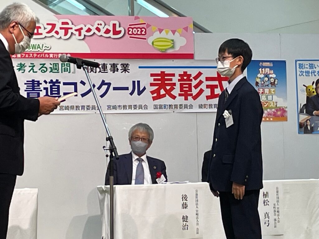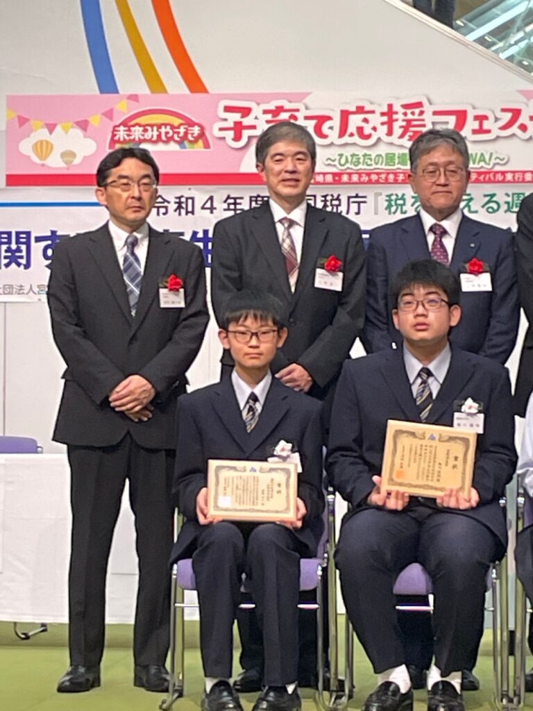 昨日、宮交シティアポロの泉にて、国税庁「税を考える週間」関連事業「税に関する中高生の親子短歌・書道コンクール」の表彰式が行われました。