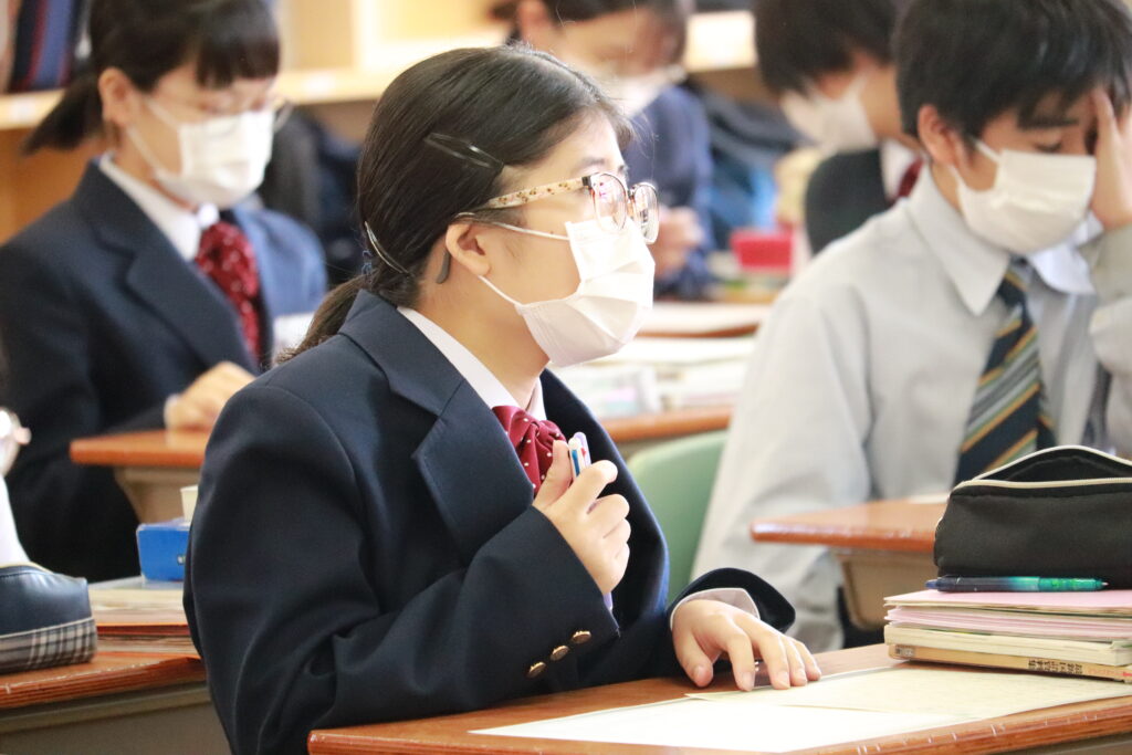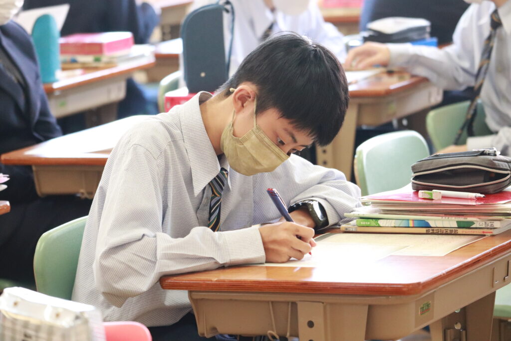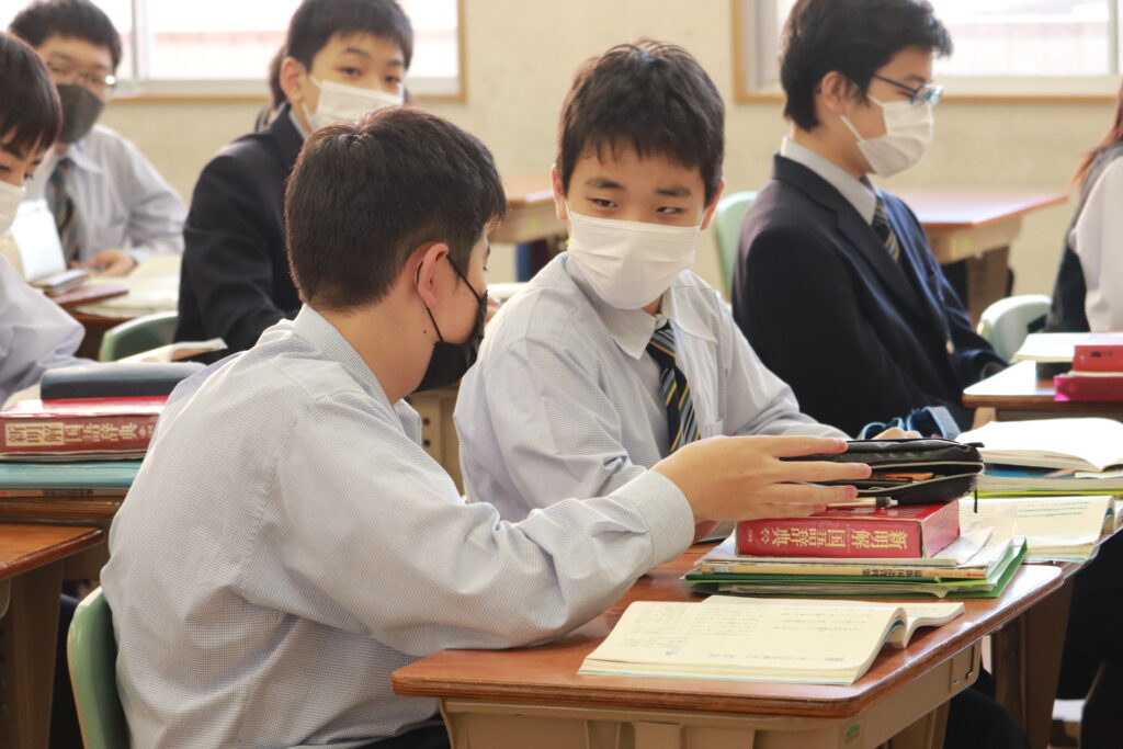 本日は、国語の授業の様子をお届けします。J1からJ3まで全学年で習熟度に分かれた授業が行われていますが、第4回定期考査が2週間後に控えているため、どのクラスの授業もより一層、熱のこもった授業が行われていました。