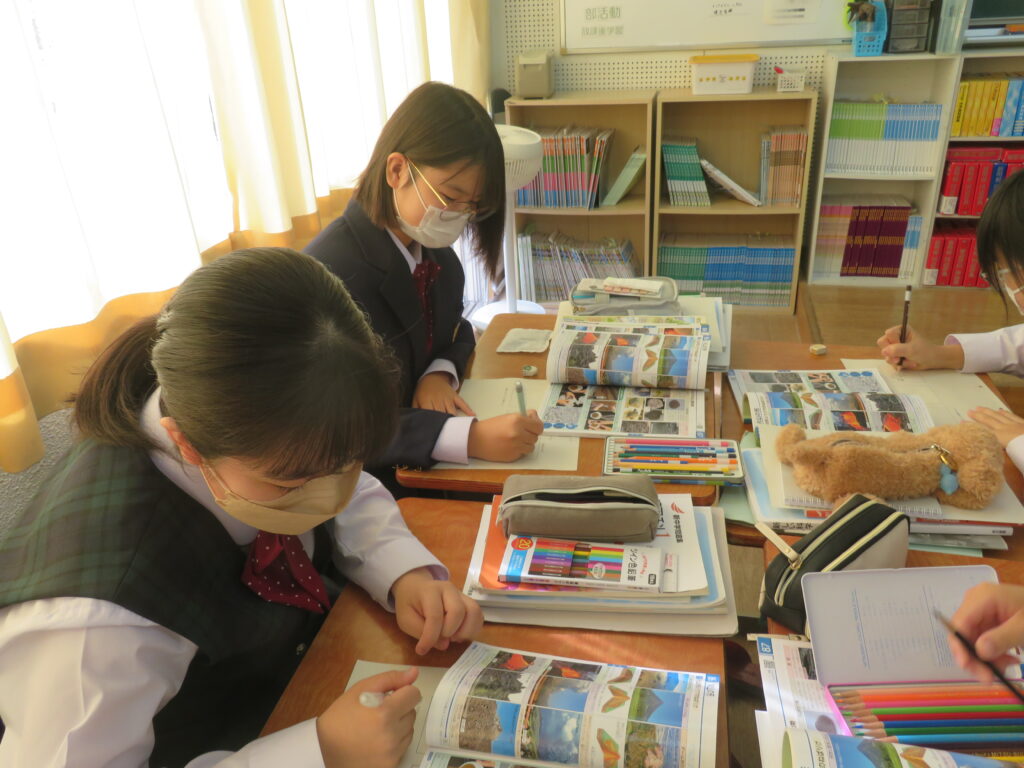 J1Bの理科の授業で、火山噴出物の一つである軽石をルーペで観察し、スケッチしました。