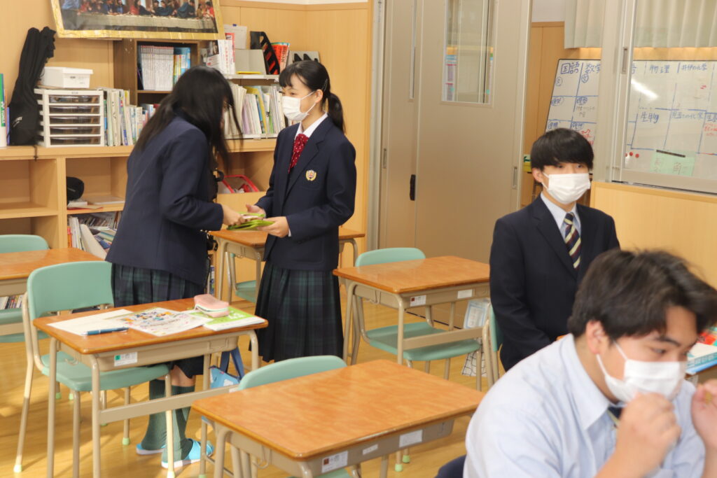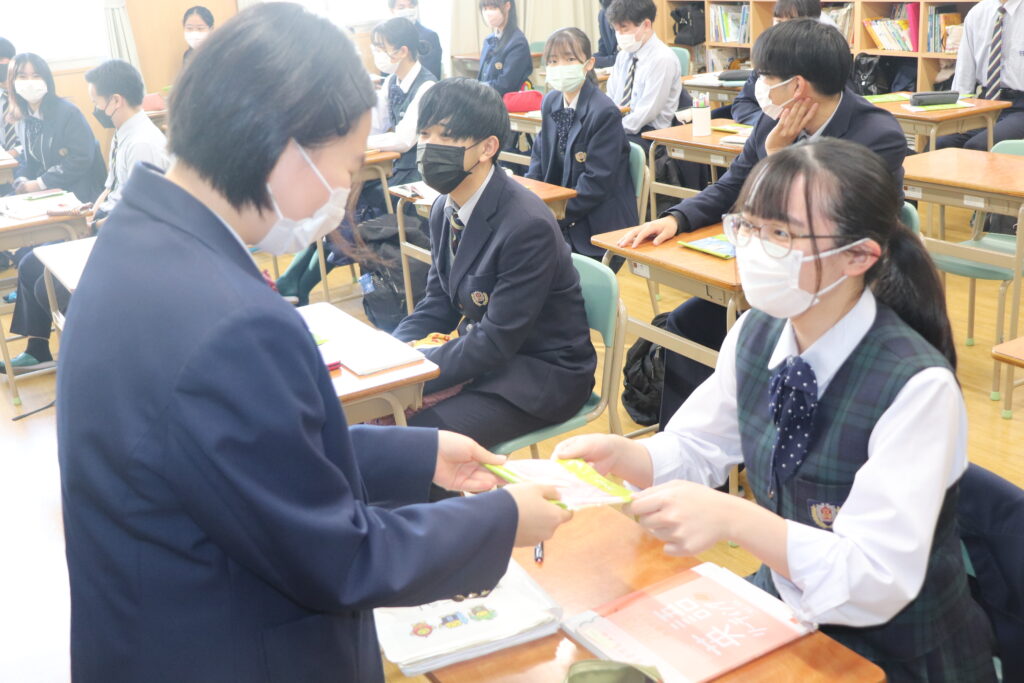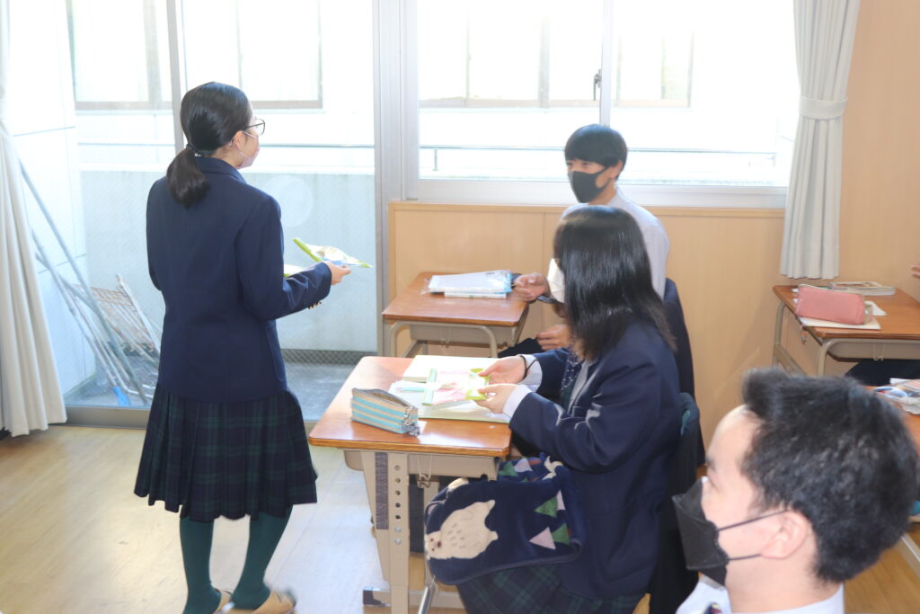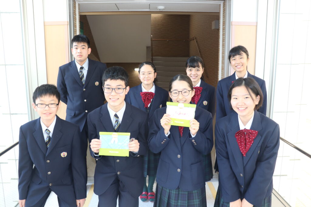 生徒会役員のメンバーから先輩に一人一人手渡しをしてもらいました。ぜひお守り代わりとして試験当日カバンにこのタオルを忍ばせて行ってくれると嬉しいです!