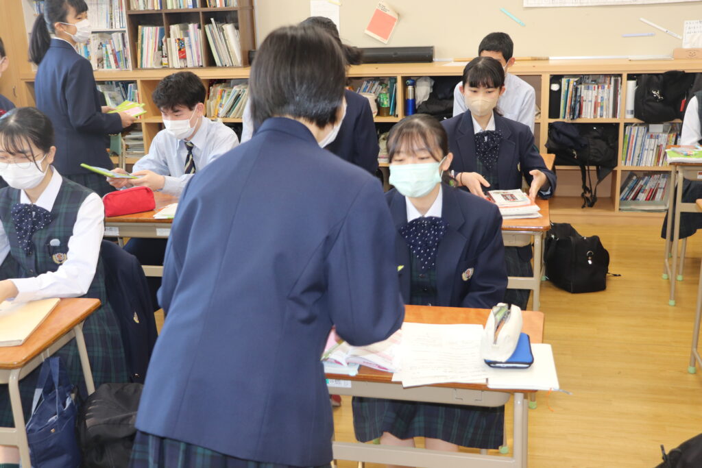 本日、特進英数科中高一貫3年生の先輩方のところへ 中学生を代表して生徒会役員の皆さんが 合格タオルを贈りにいってきました!この合格タオルは毎年、鵬翔中学校の生徒・保護者の皆さんから激励の意味を込めて贈られています。
