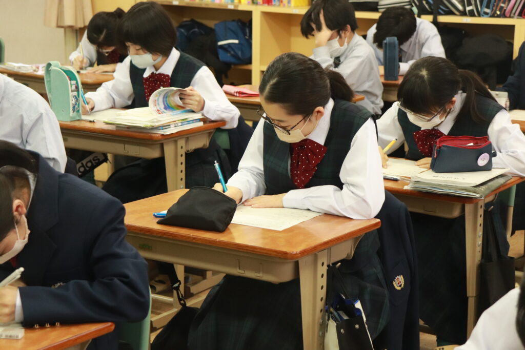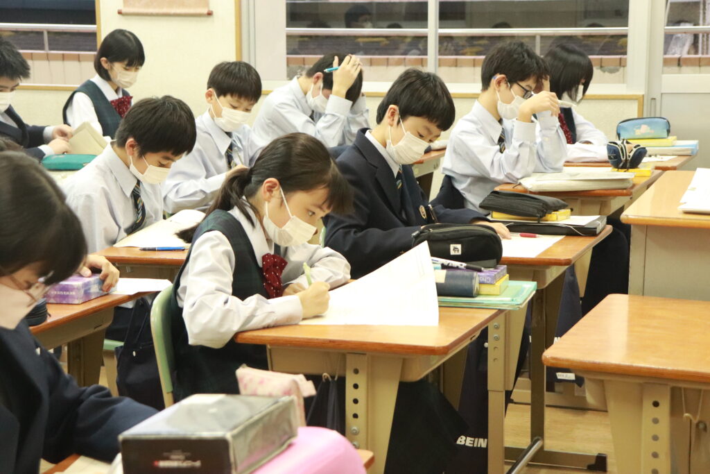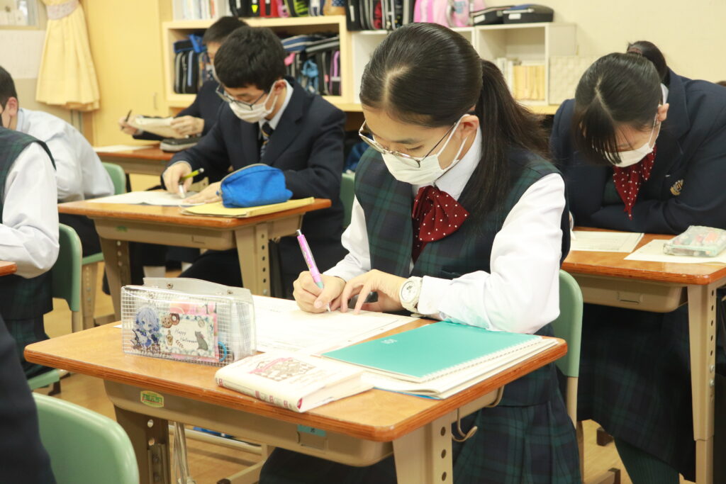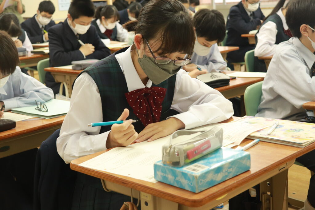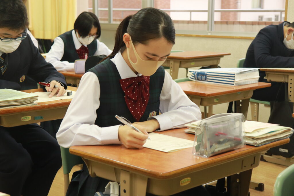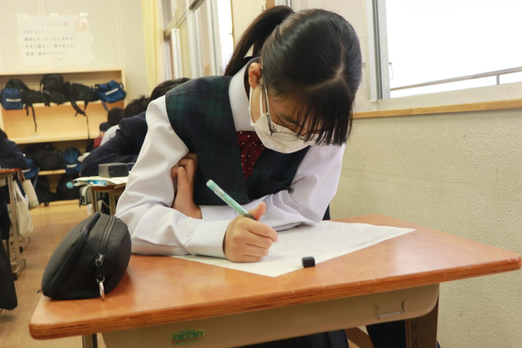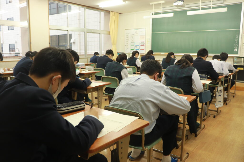 鵬翔中学校では、火曜日と金曜日の週に2回HOSHOサポートと言って振り返り学習を行なっています。ここでは、普段の習熟度ごとのクラスではなく、各クラスで数学・英語の授業を行います。数学では、問題演習に特化した課題に取り組み、英語では模擬試験対策やリスニング対策を行なっています。今回は、本日行われた英語のHOSHOサポートの様子をお届けします。