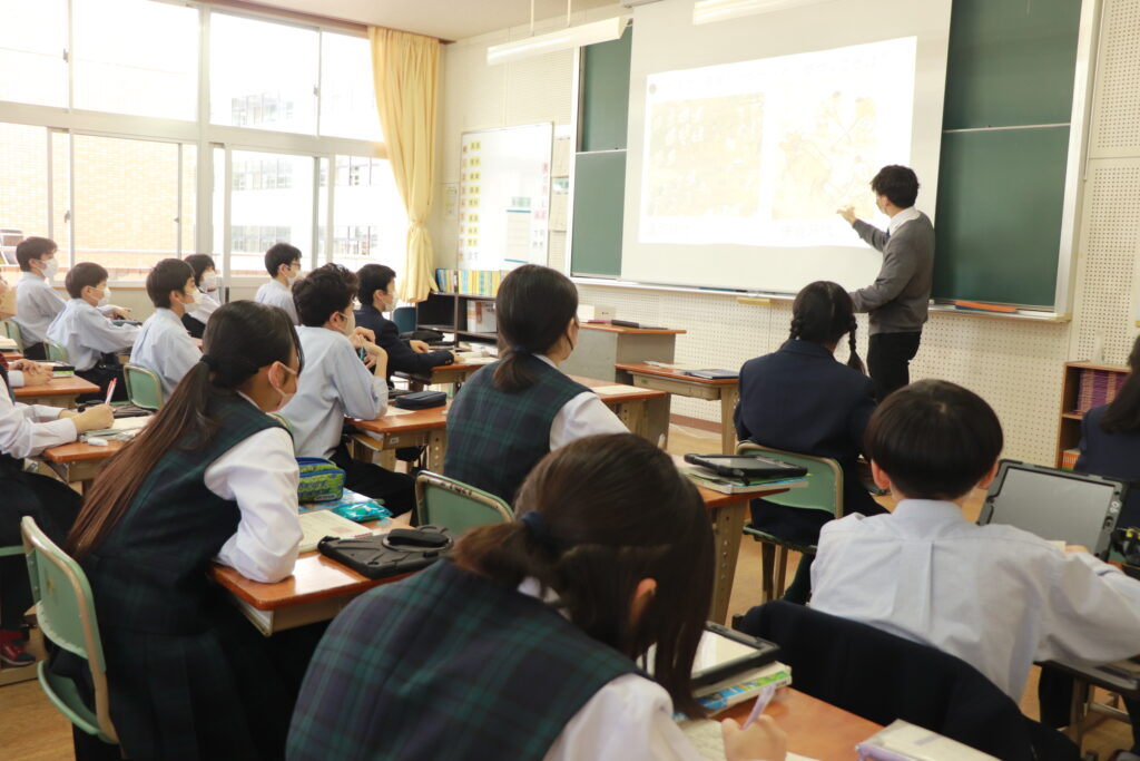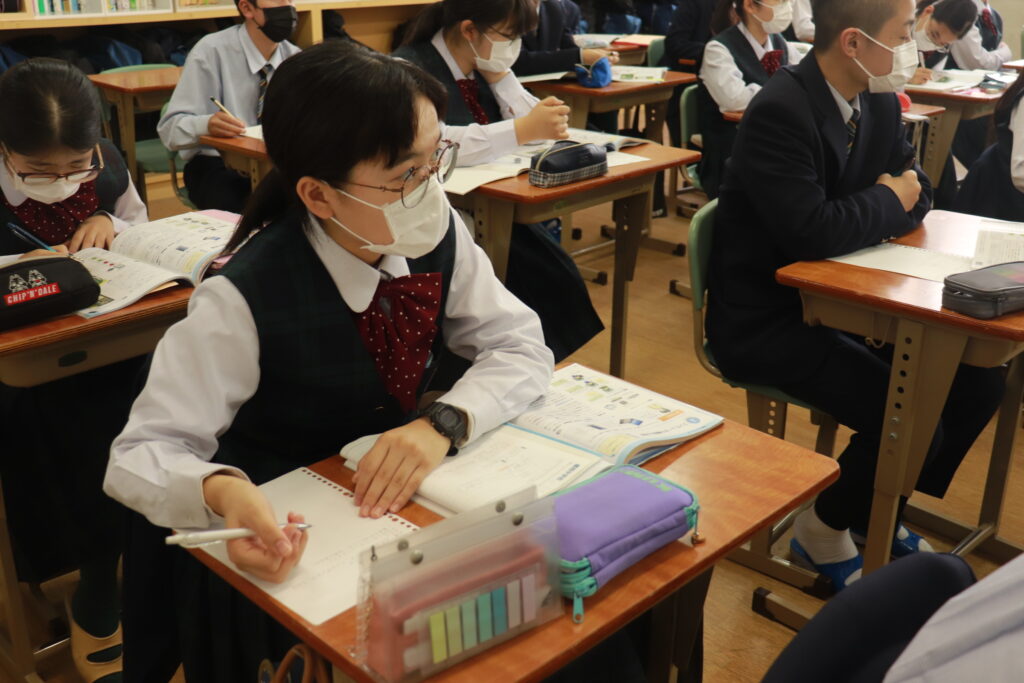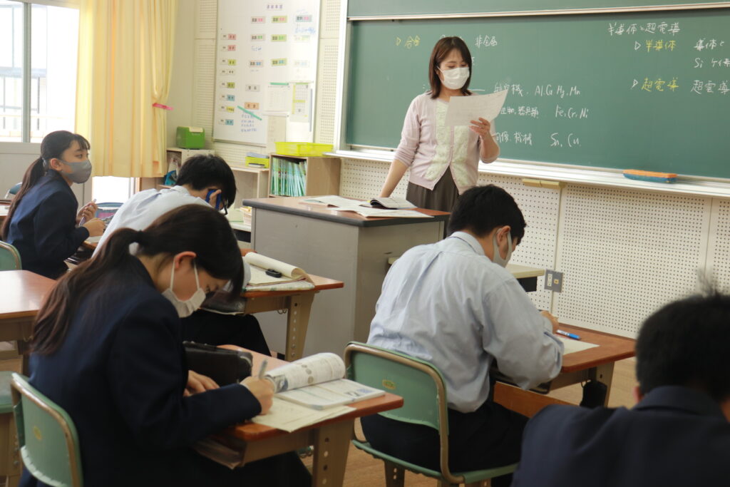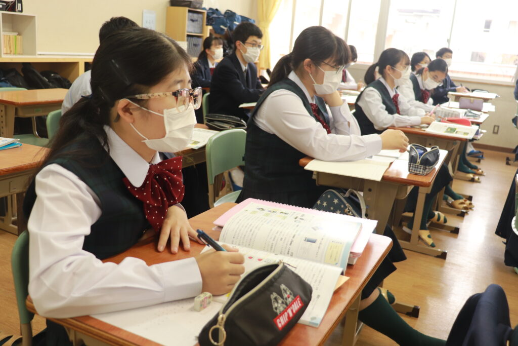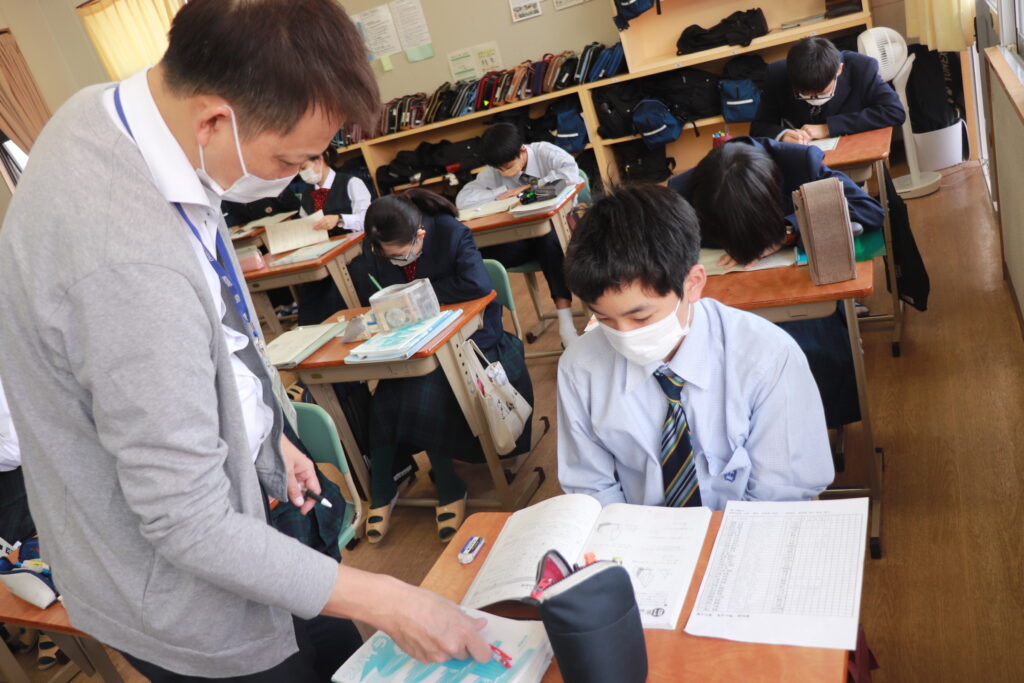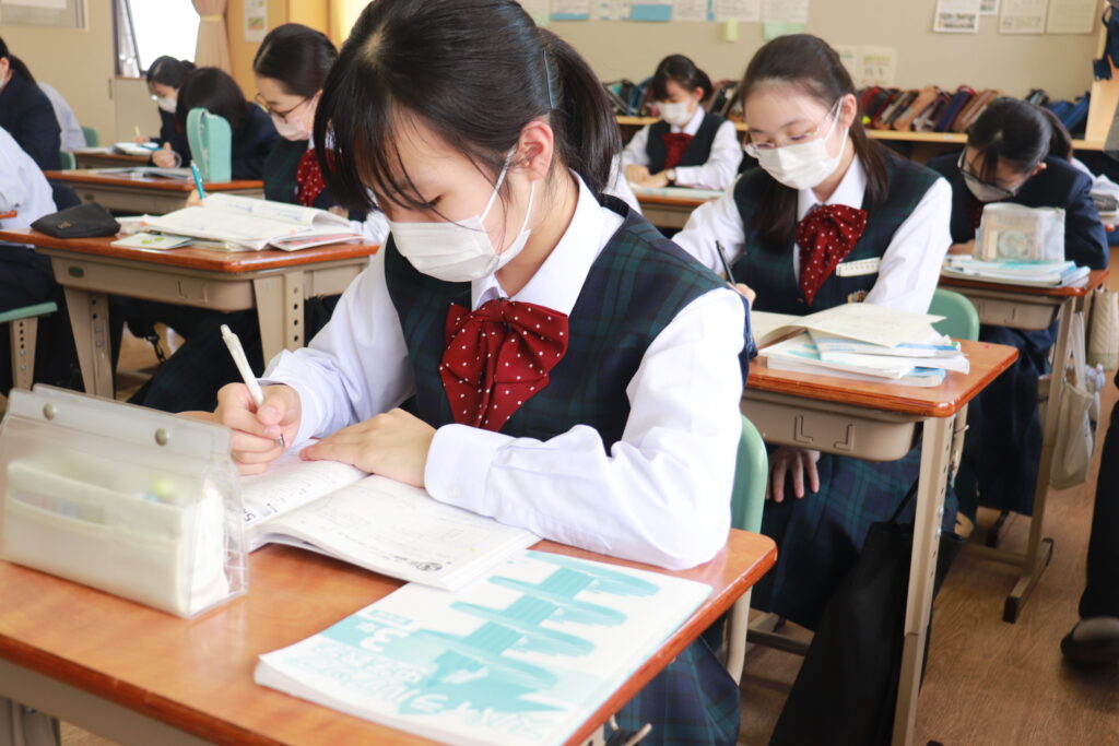第4回定期考査目前となり、授業中はピリピリとした空気が流れています。どのクラスを覗いても良い緊張感の中、黒板や教科書に向かい合う生徒の姿でいっぱいです。