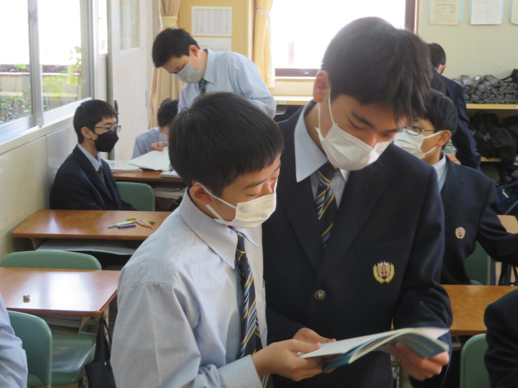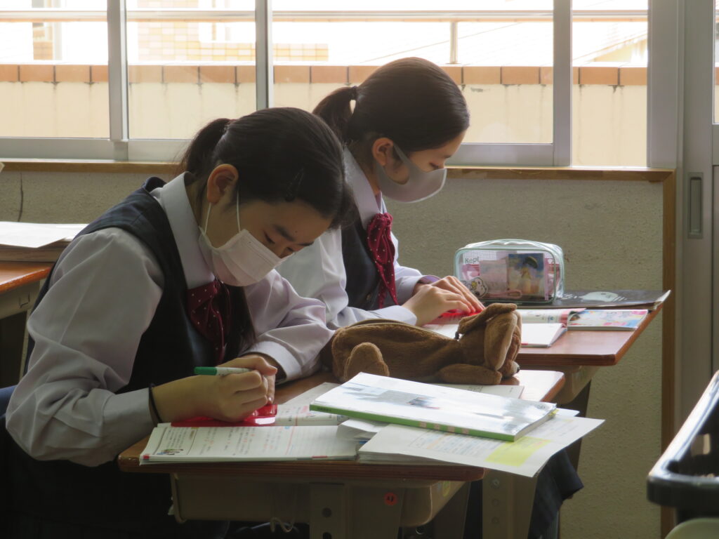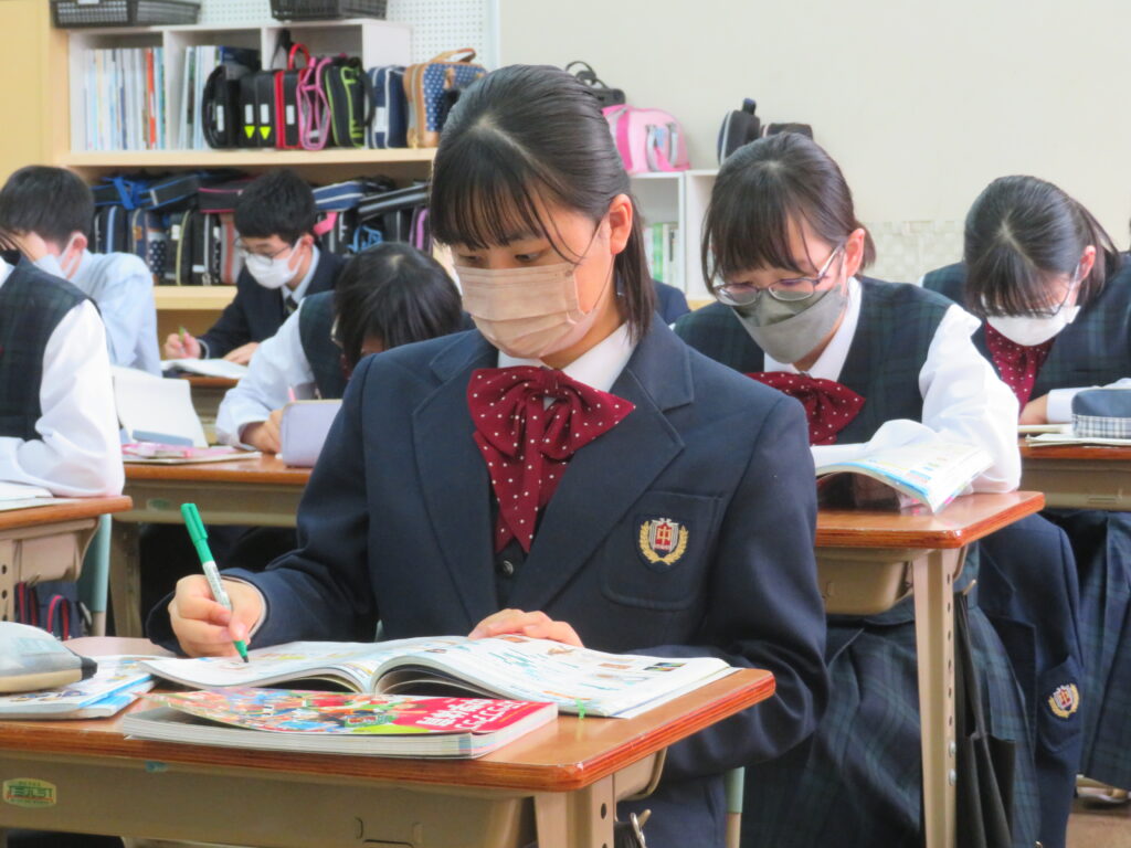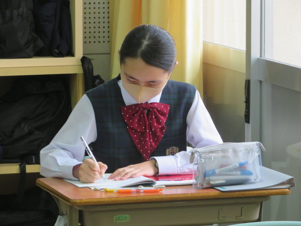 本校では、午後の5・6限目に自学自習の時間を設けています。翌日の試験勉強のため、机いっぱいに資料やノートを広げ黙々と学習する姿が見られます。生徒たちにとっては貴重な学習時間のようです。