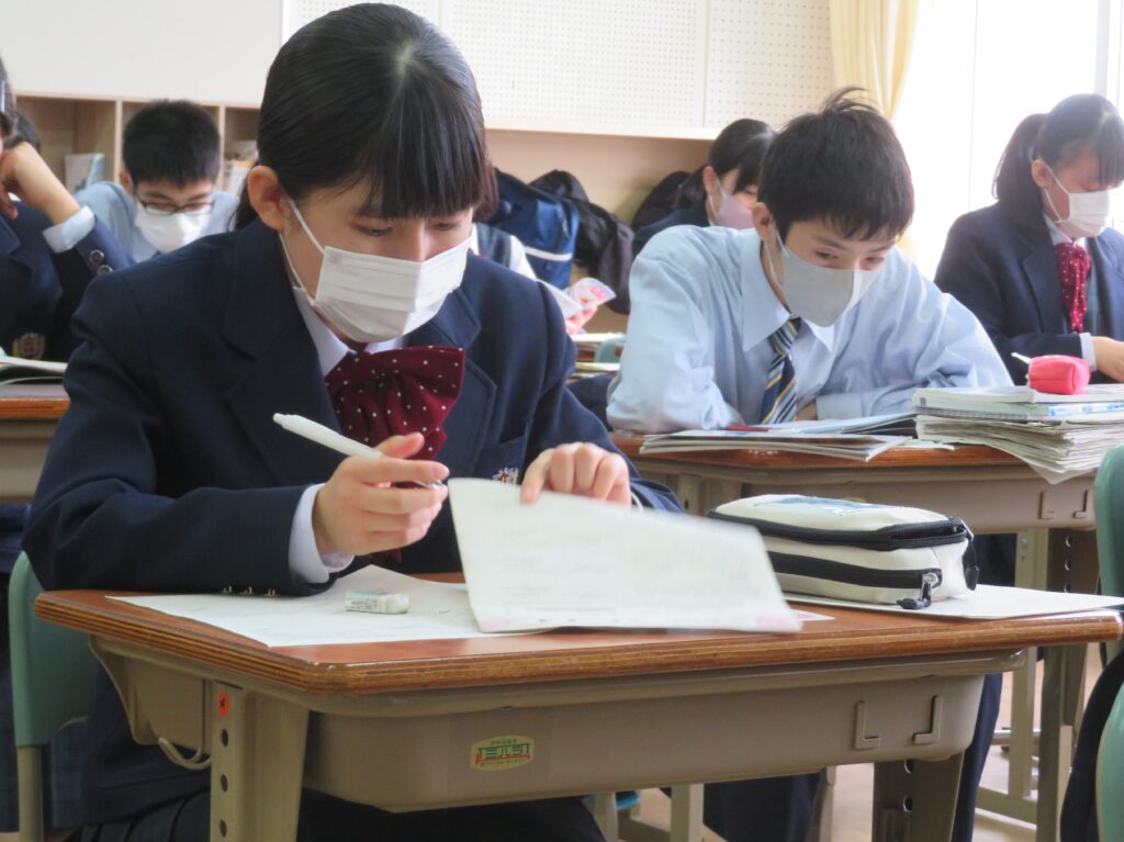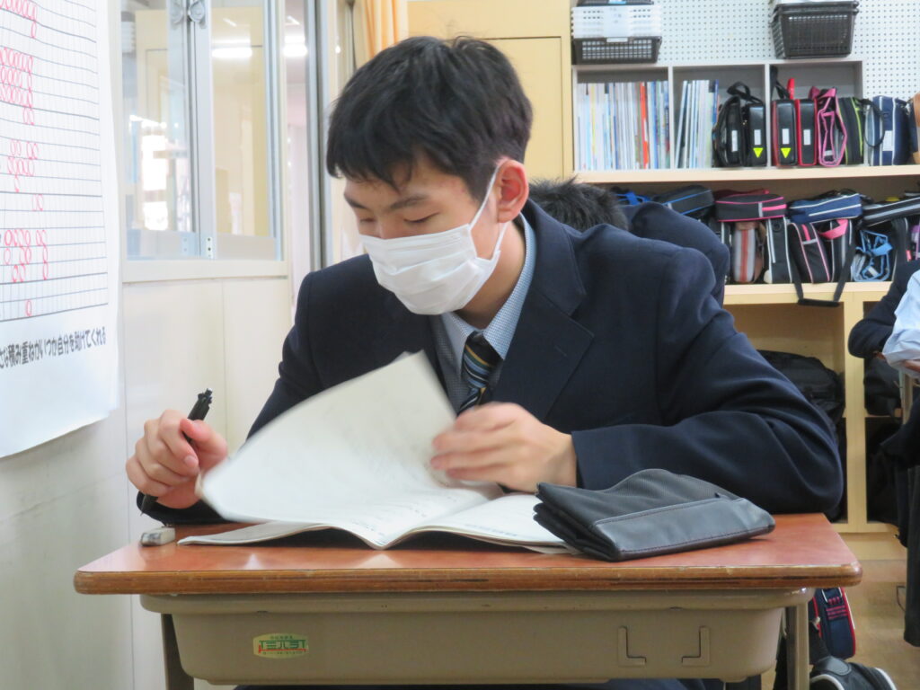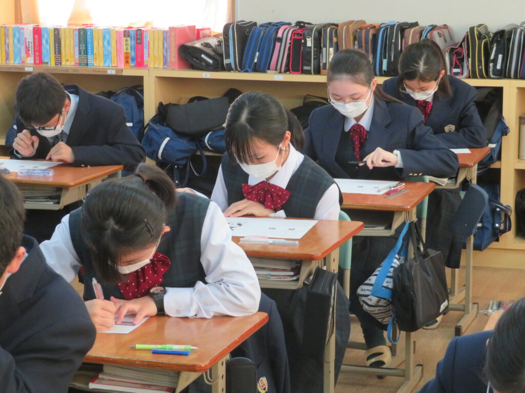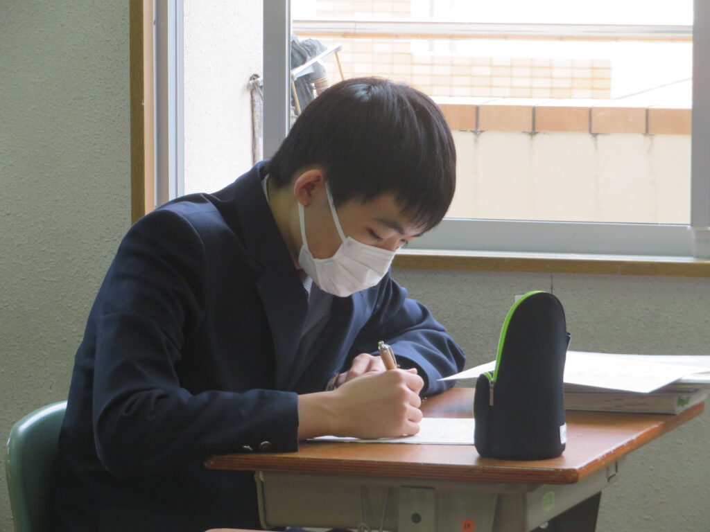 本日、第4回定期考査3日目です。今朝はぐっと気温が下がり寒い1日でしたね。定期考査3日目、日頃の学習の成果は発揮できていますか?手ごたえはどうでしょうか?