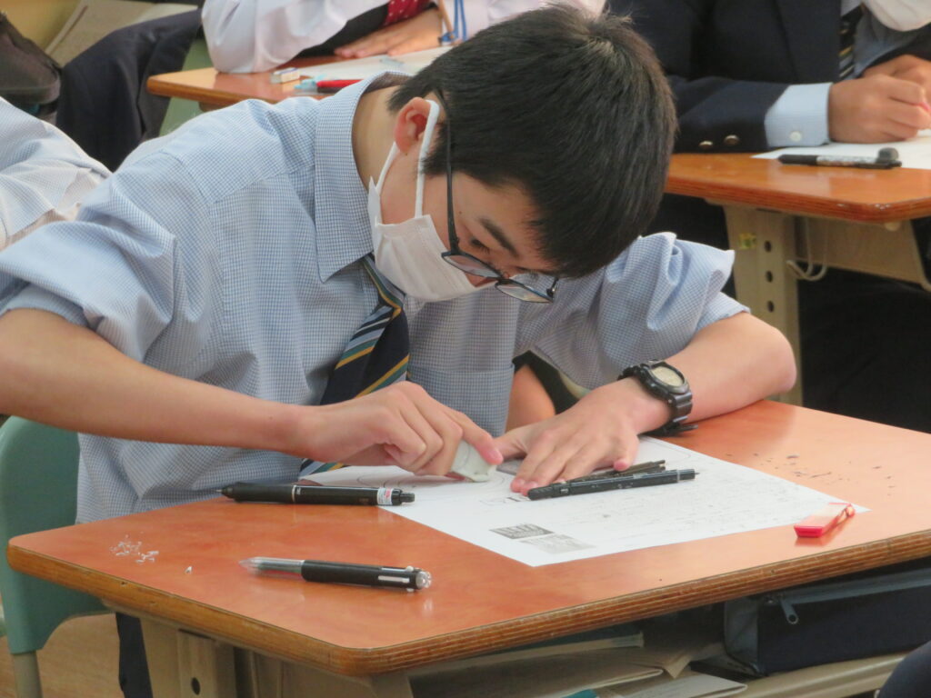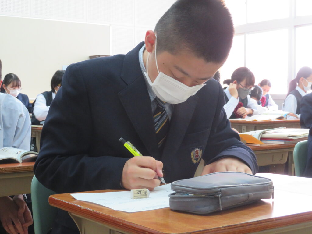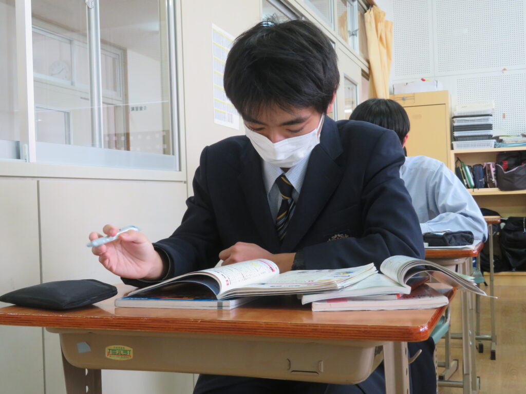定期考査もいよいよ明日までです。表情に少し疲れがみられる生徒もいますが、最後まで諦めず全力疾走で頑張りましょう!