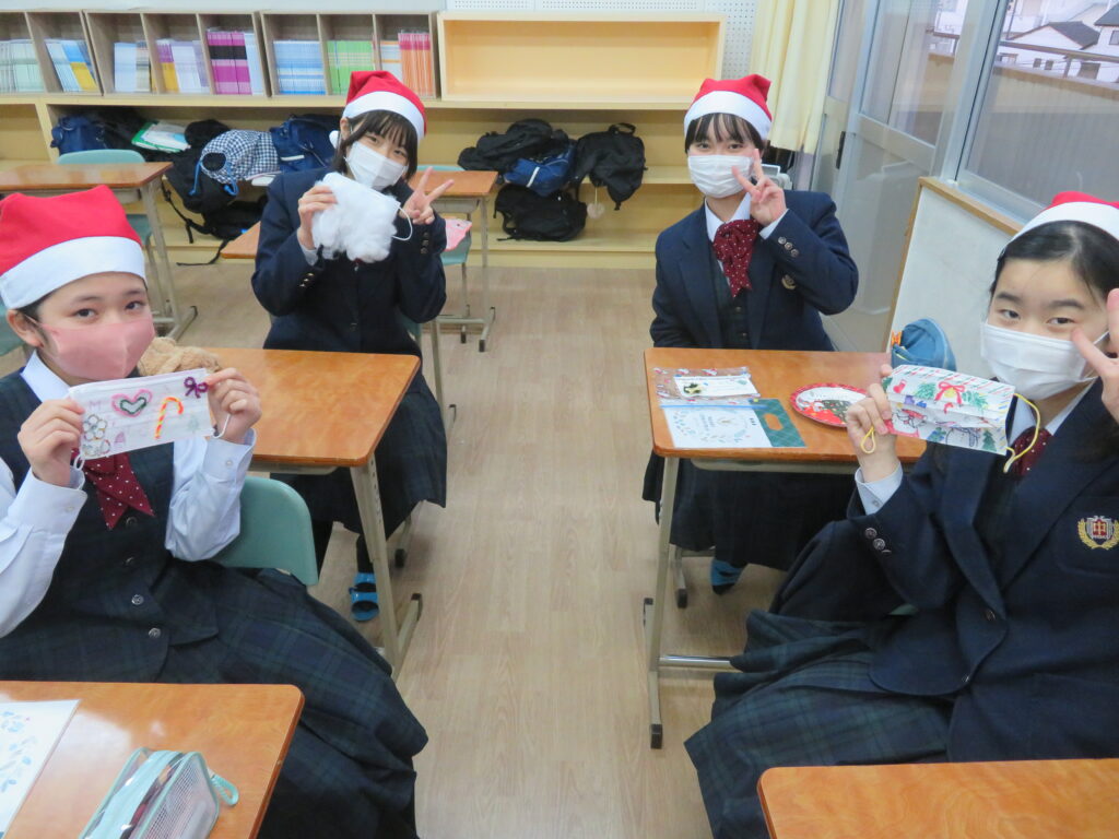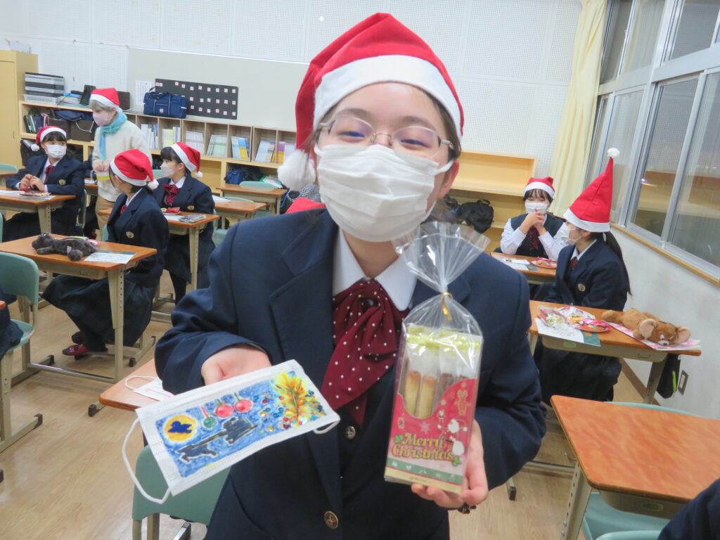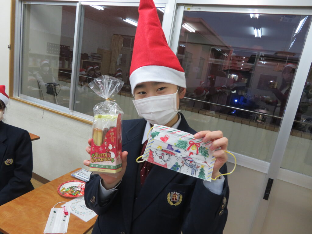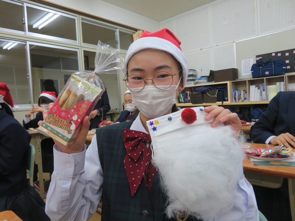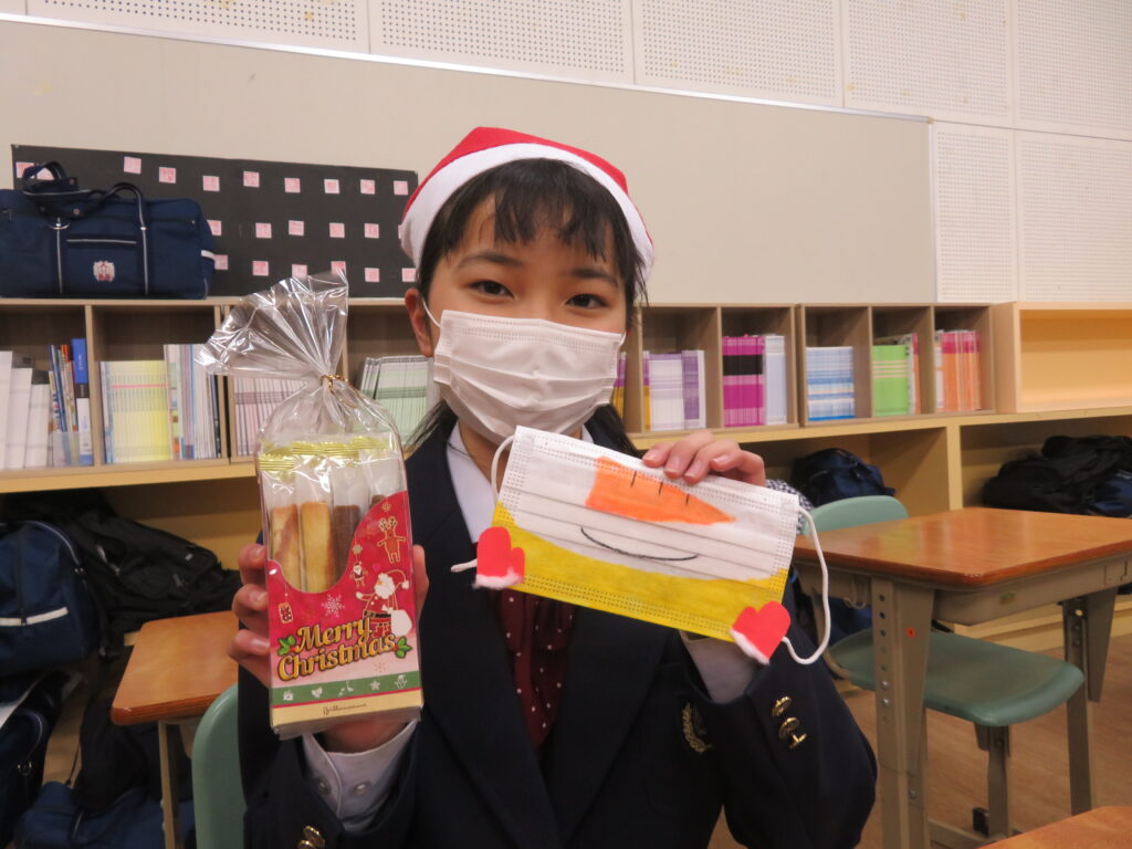 まず、「Ugly Christmas mask contest 」というものをしました。部員それぞれがマスクをクリスマス風にデコレーションして、どのデザインが最も良いかトンプソン先生に決めてもらいました。それぞれが工夫したデコレーションをしていて、とても素敵なものばかりでした。