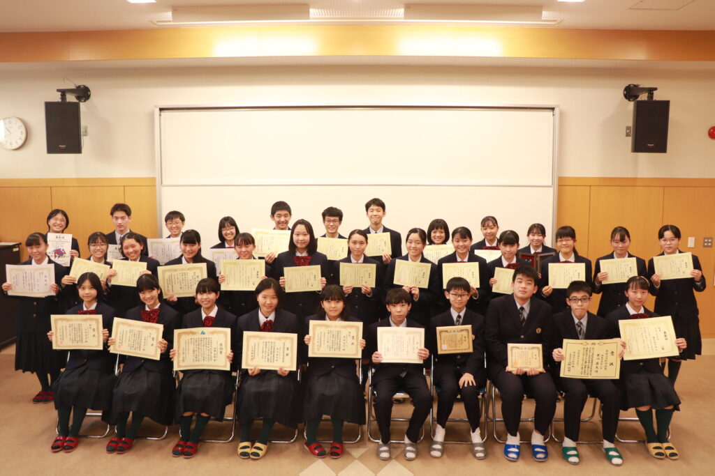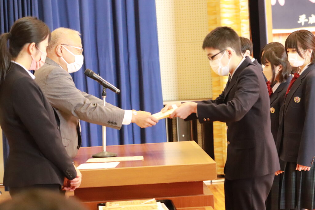 本日、令和4年度2学期終業式を行いました。まずは、体育館で全校集会の形で式に臨みます。まず初めに表彰式が行われ、たくさんの生徒が表彰を受けました。鵬翔中生大活躍です!受賞者のみなさん、おめでとうございます。